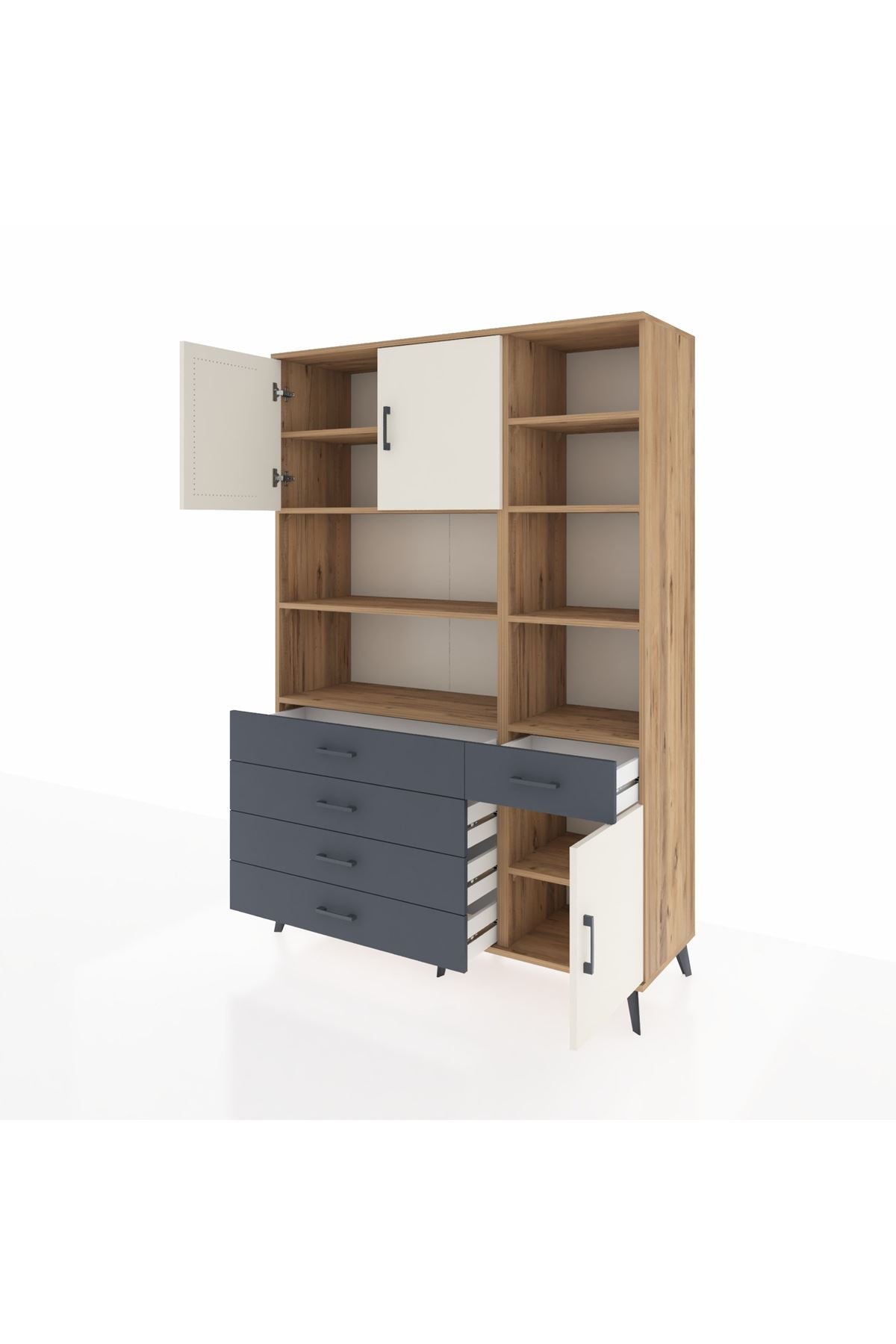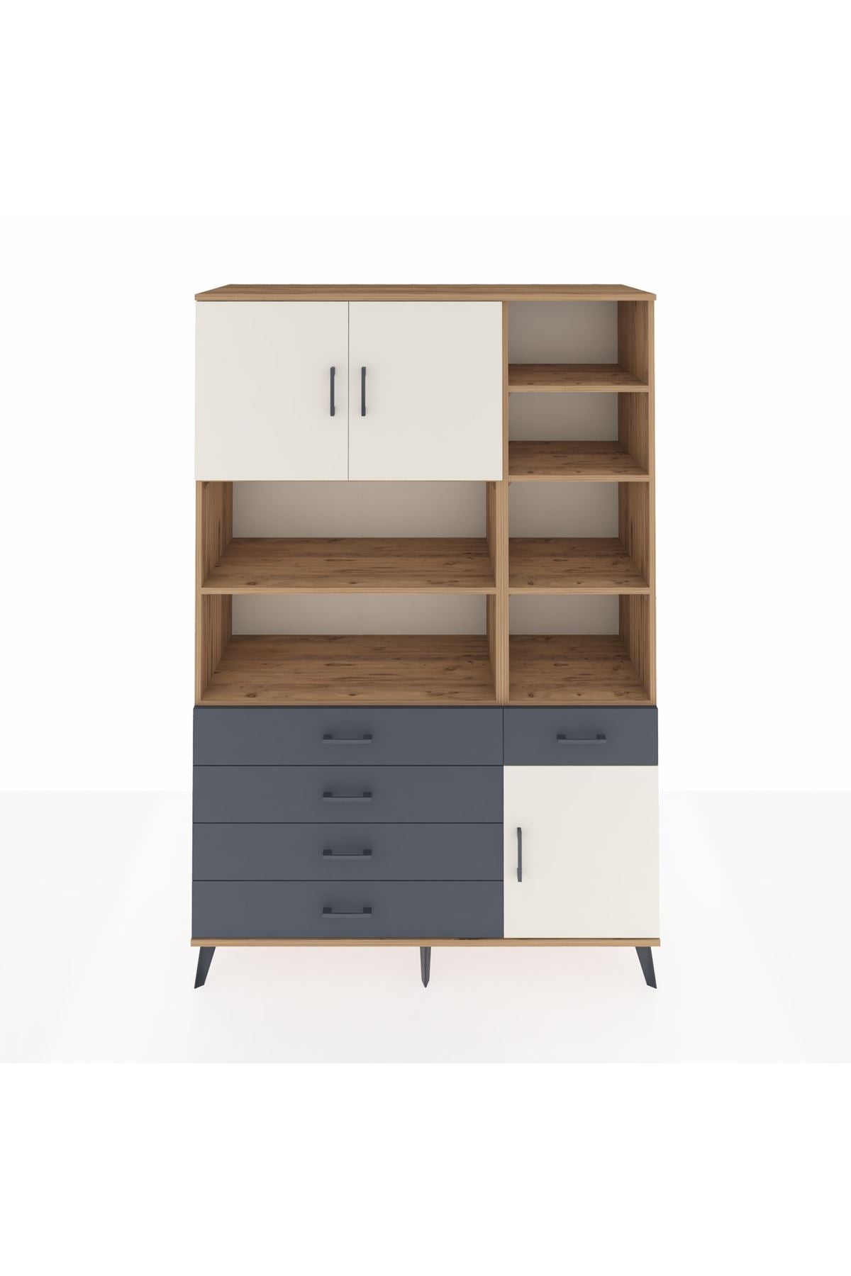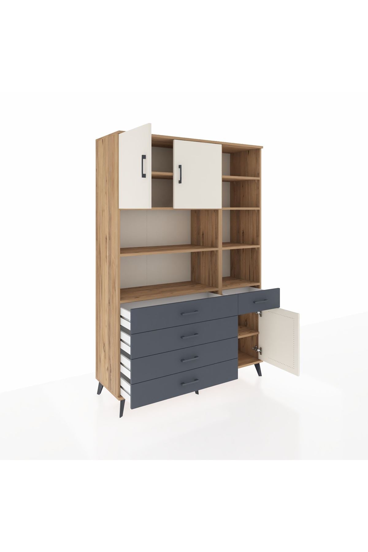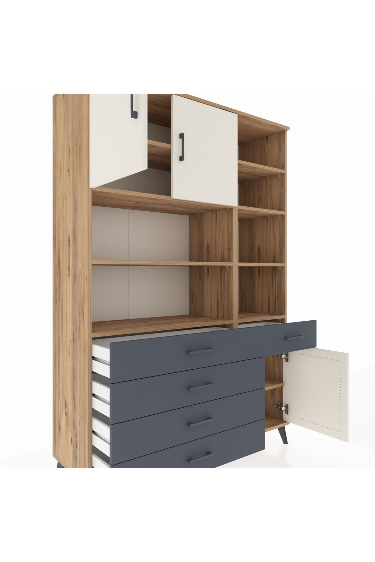 Hyperion Dolap 9 Raflı 5 Çekmeceli 3 Kapaklı 132x44x195 Çam-Aytaşı/Antrasit