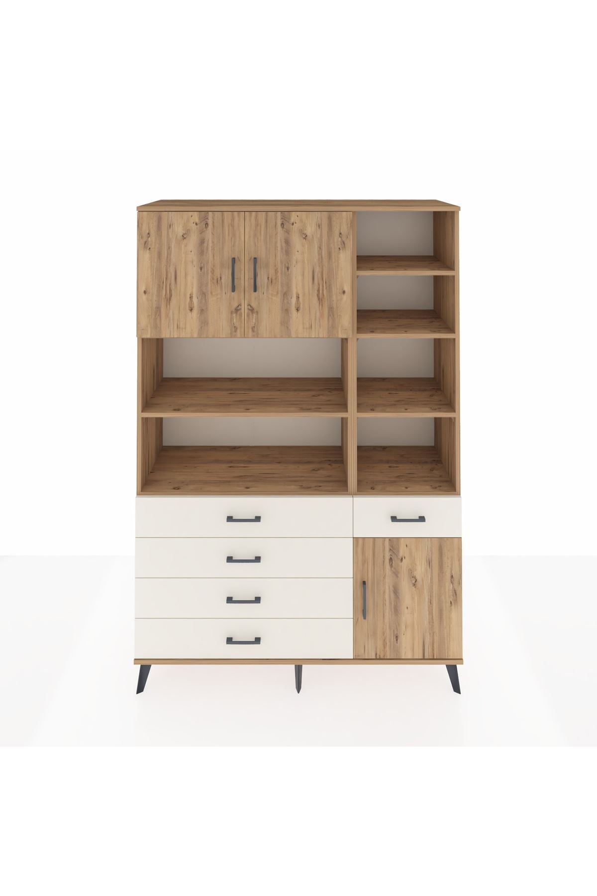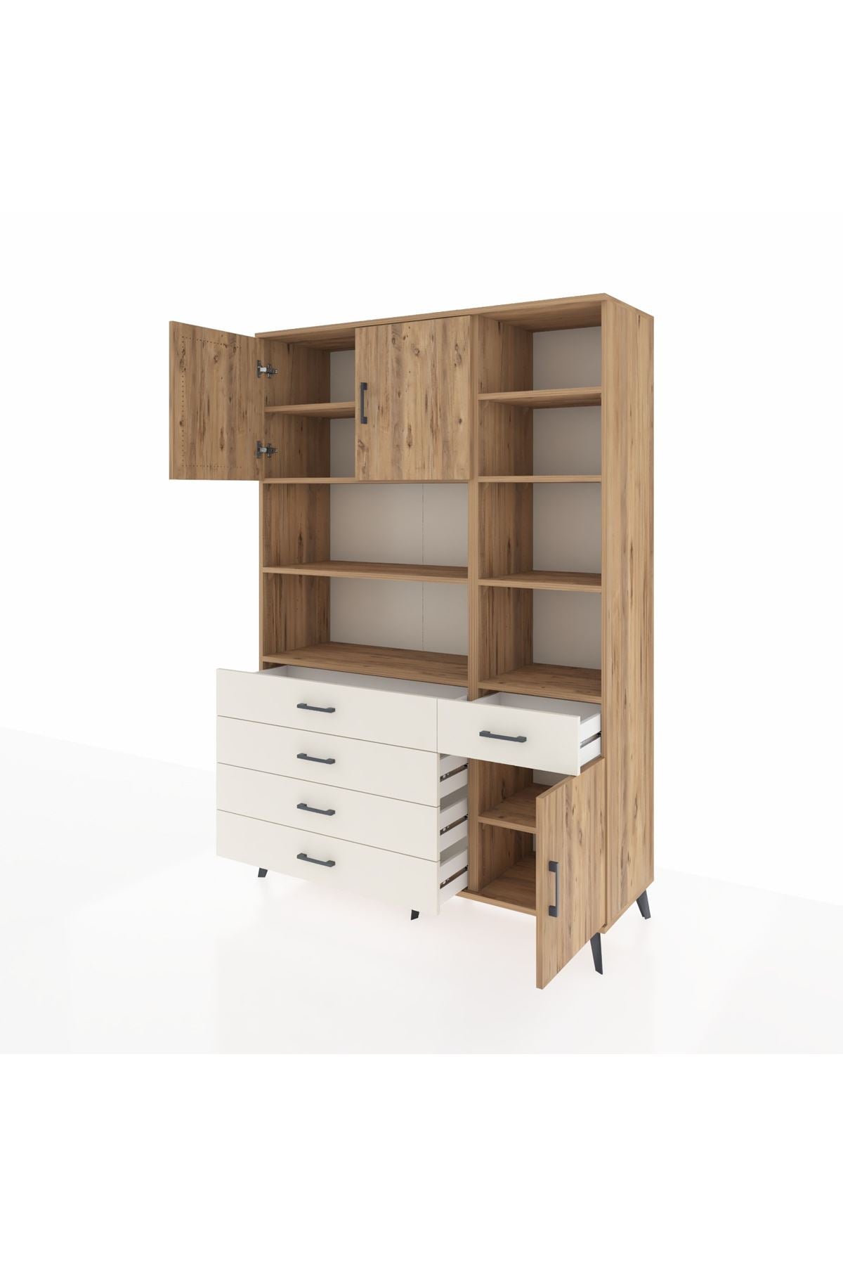 Hyperion Dolap 9 Raflı 5 Çekmeceli 3 Kapaklı 132x44x195 Çam-Çam/Aytaşı