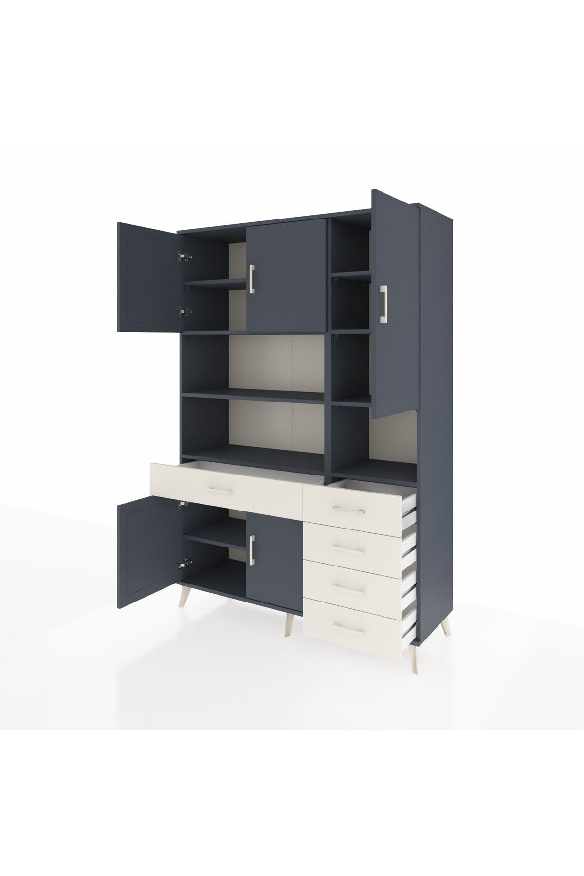 Hyperion Dolap 9 Raflı 5 Çekmeceli 5 Kapaklı 132x44x195 Antrasit-Antrasit/Aytaşı