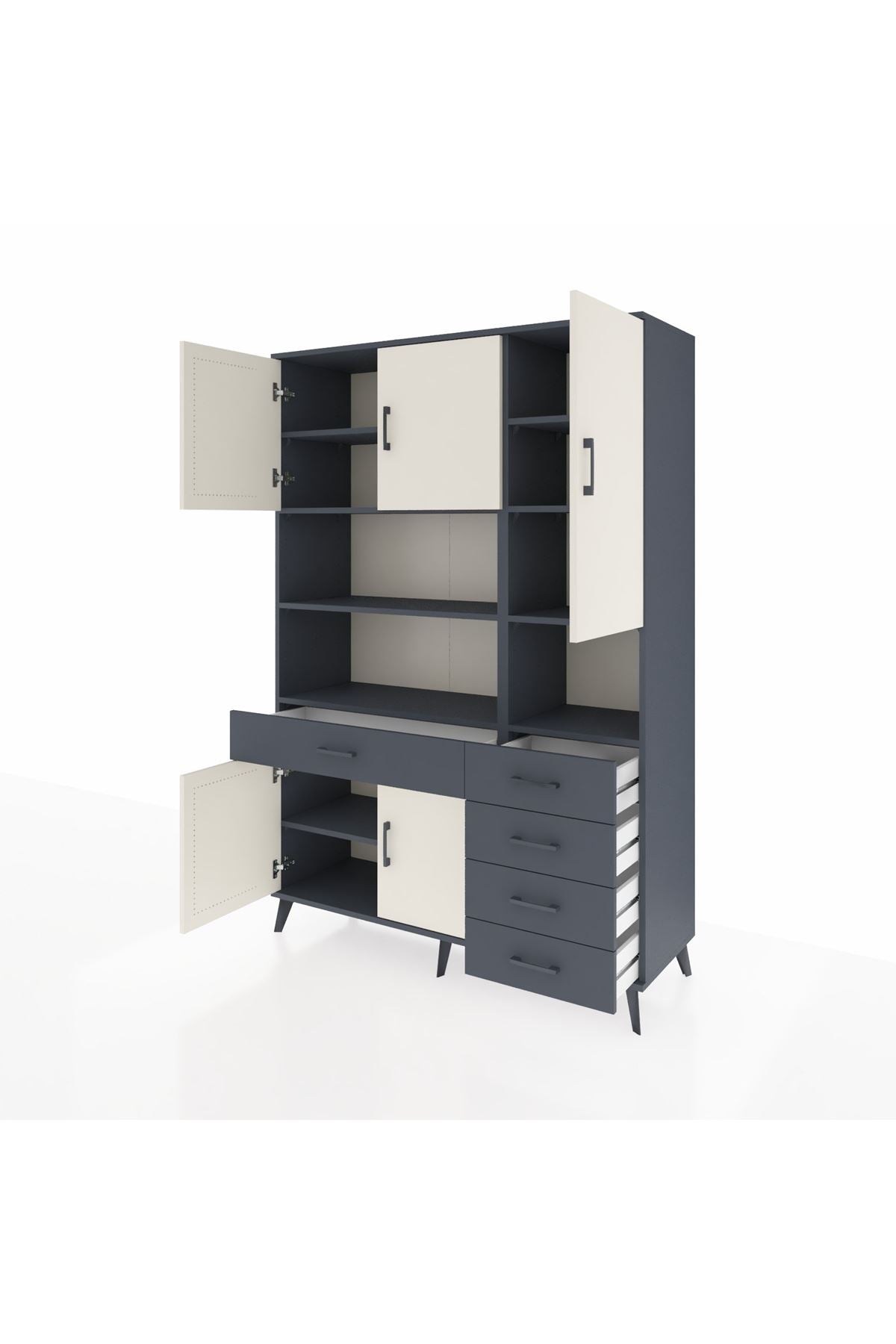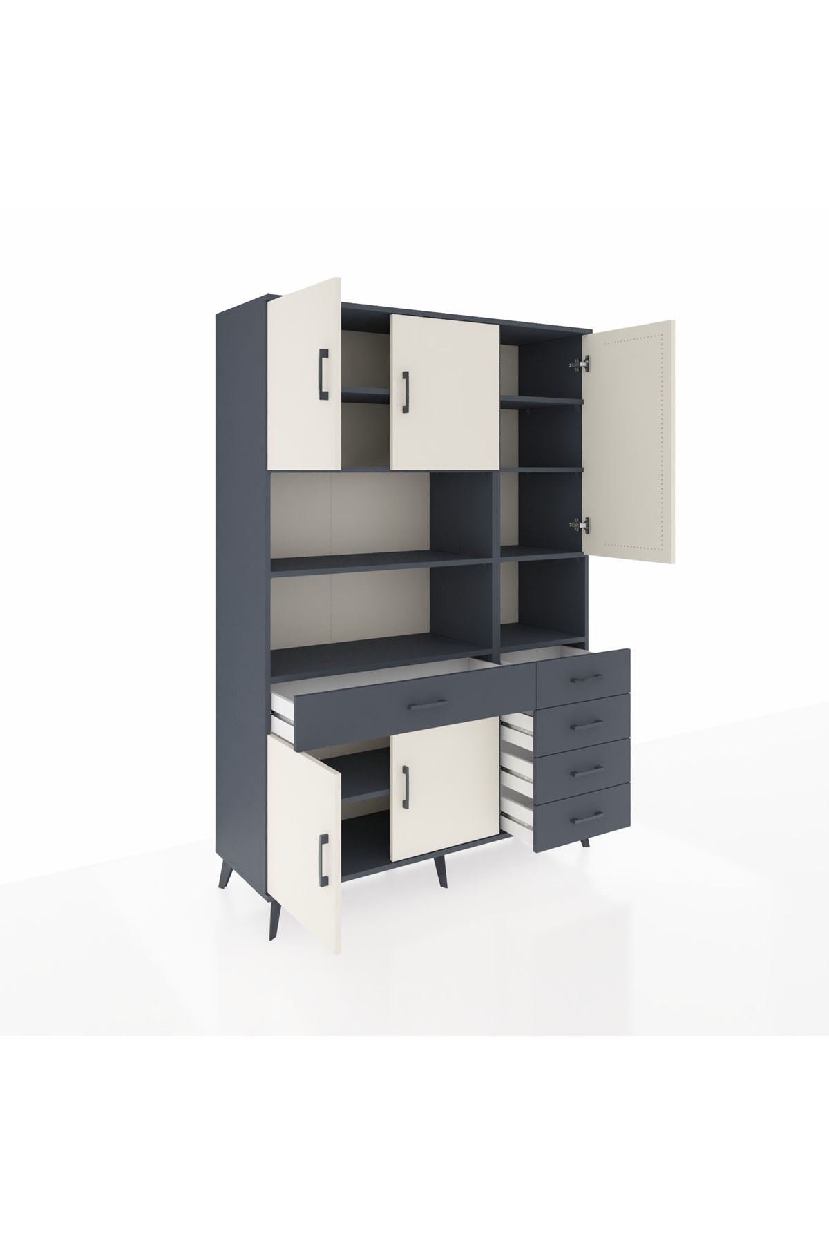 Hyperion Dolap 9 Raflı 5 Çekmeceli 5 Kapaklı 132x44x195 Antrasit-Aytaşı/Antrasit