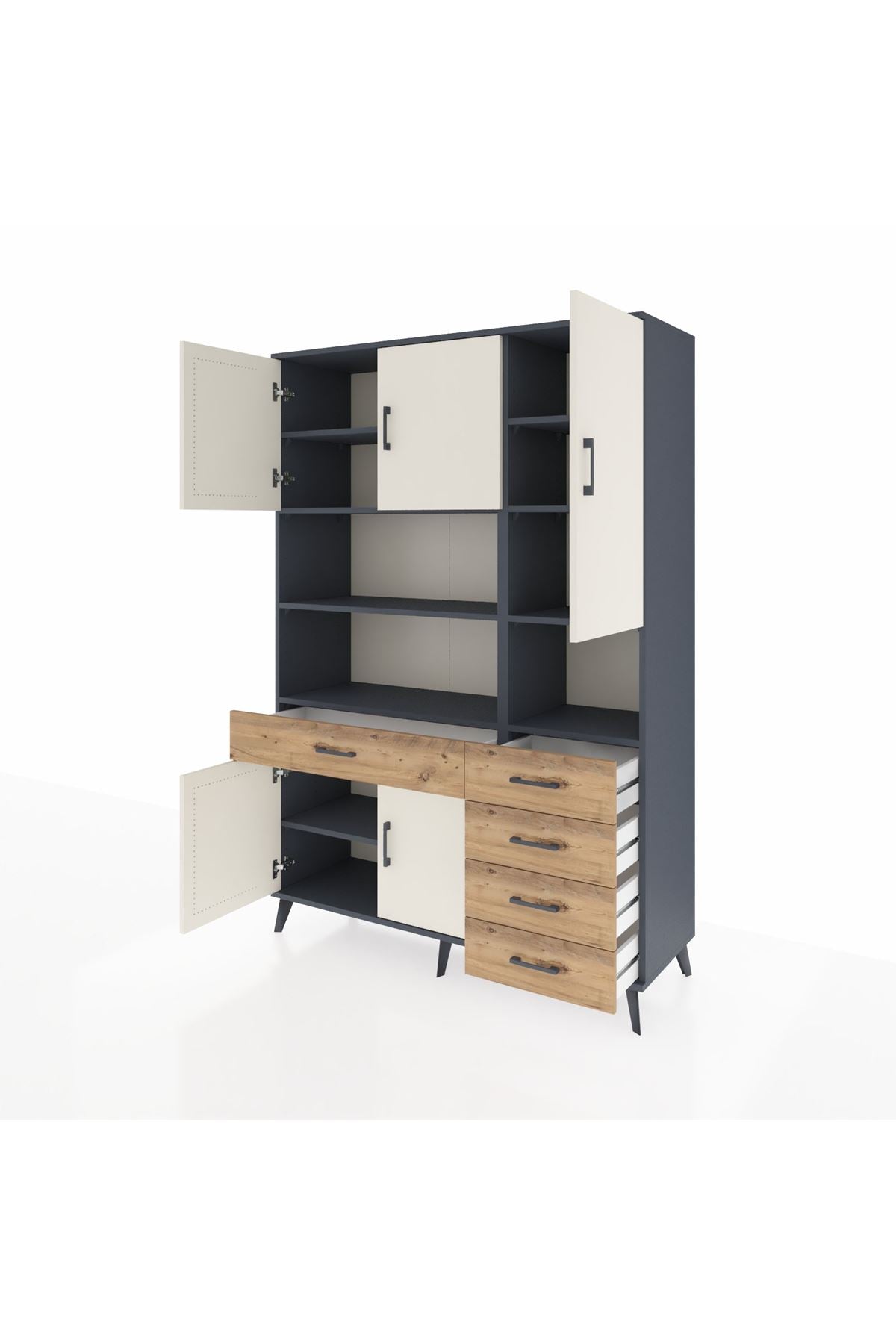 Hyperion Dolap 9 Raflı 5 Çekmeceli 5 Kapaklı 132x44x195 Antrasit-Aytaşı/Çam