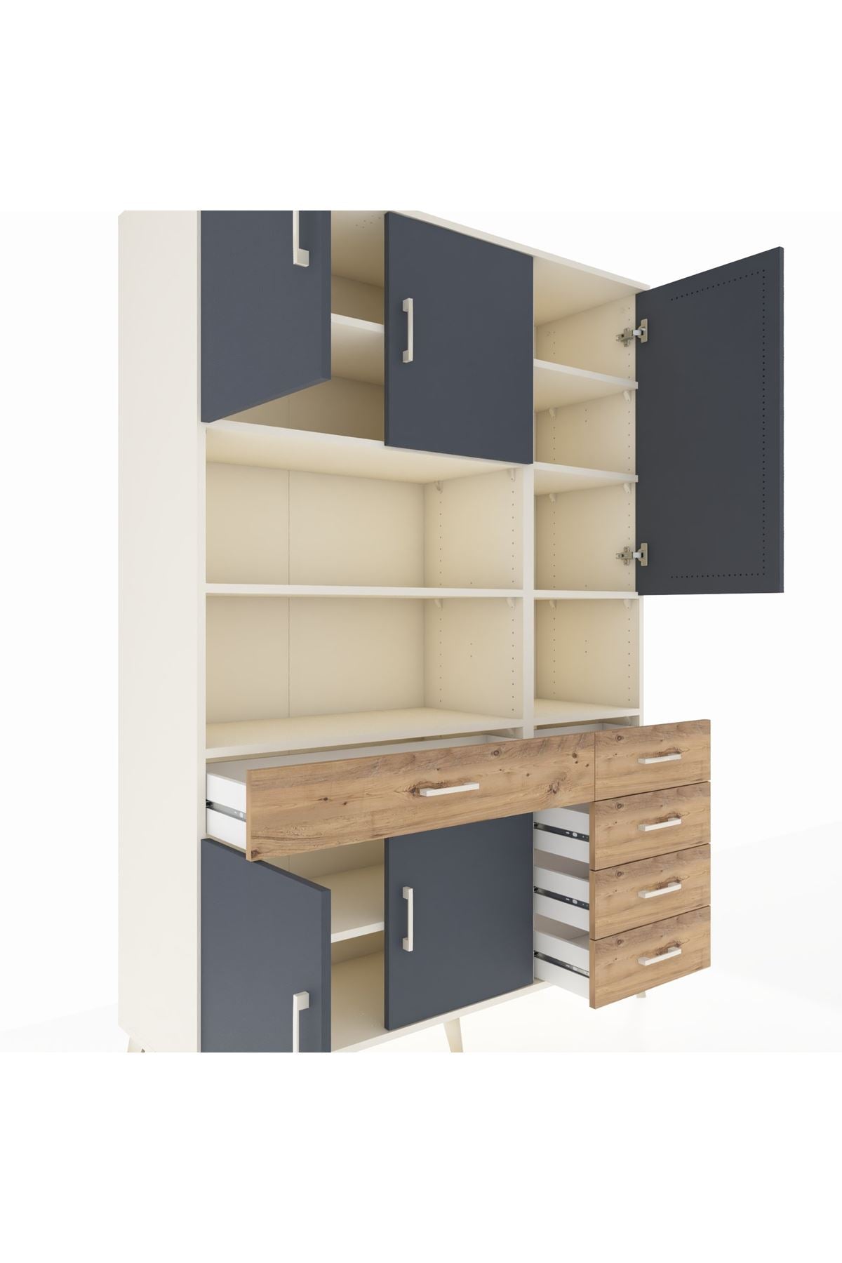 Hyperion Dolap 9 Raflı 5 Çekmeceli 5 Kapaklı 132x44x195 Aytaşı-Antrasit/Çam