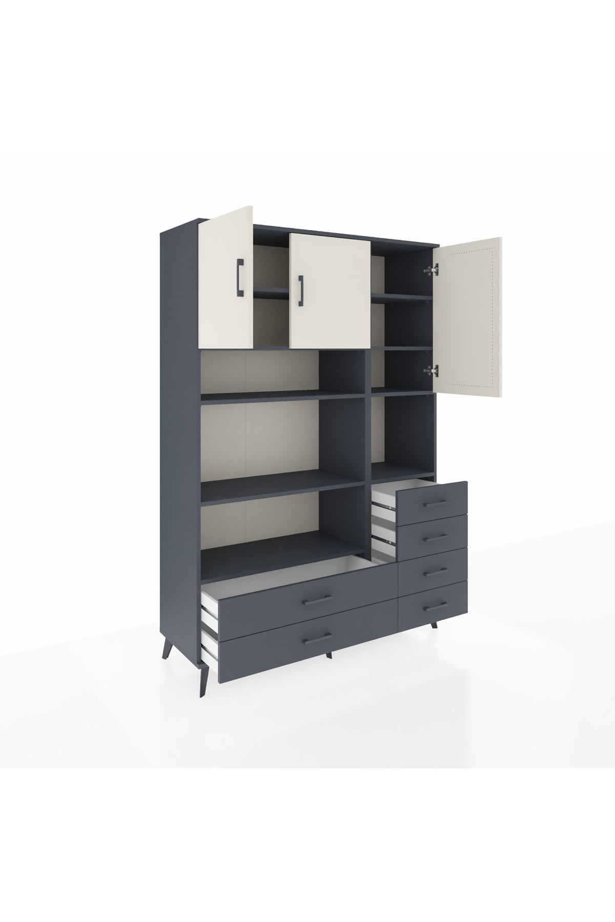 Hyperion Dolap 9 Raflı 6 Çekmeceli 3 Kapaklı 132x44x195 Antrasit-Aytaşı/Antrasit