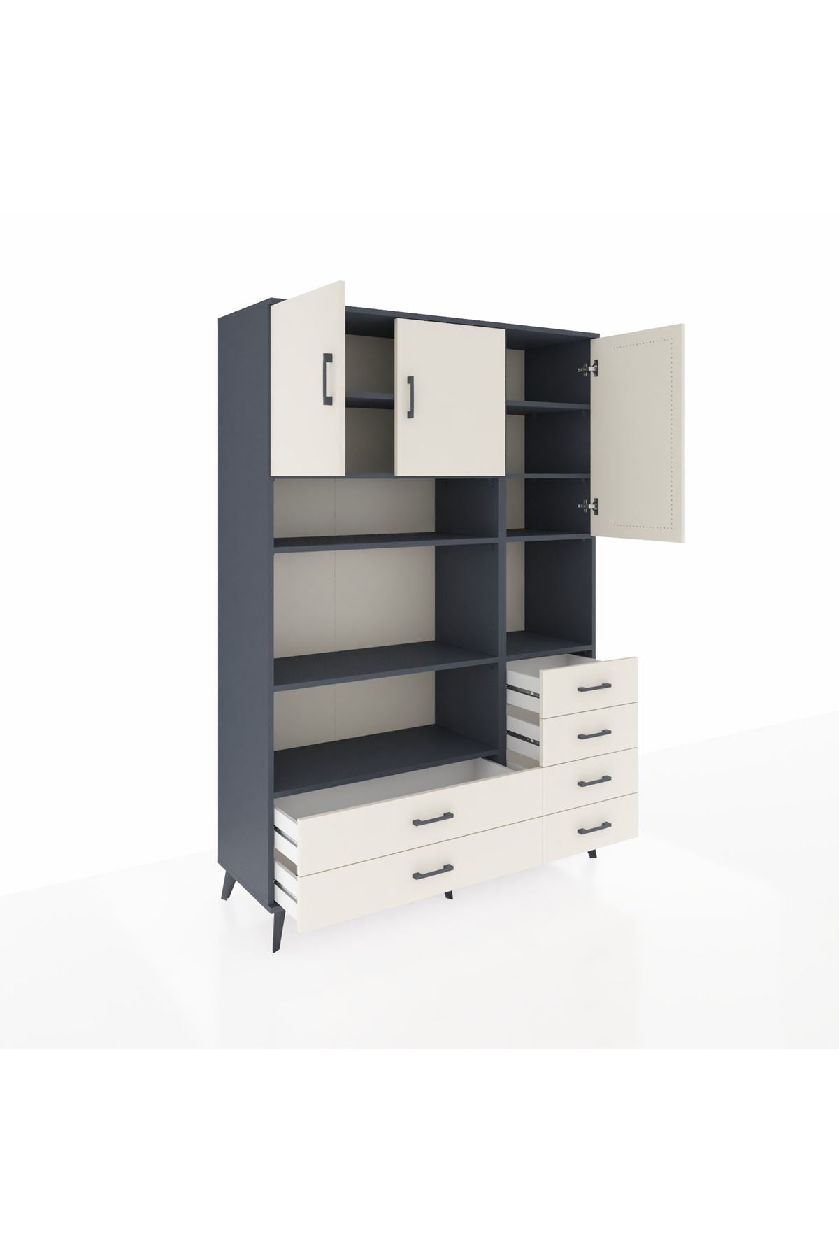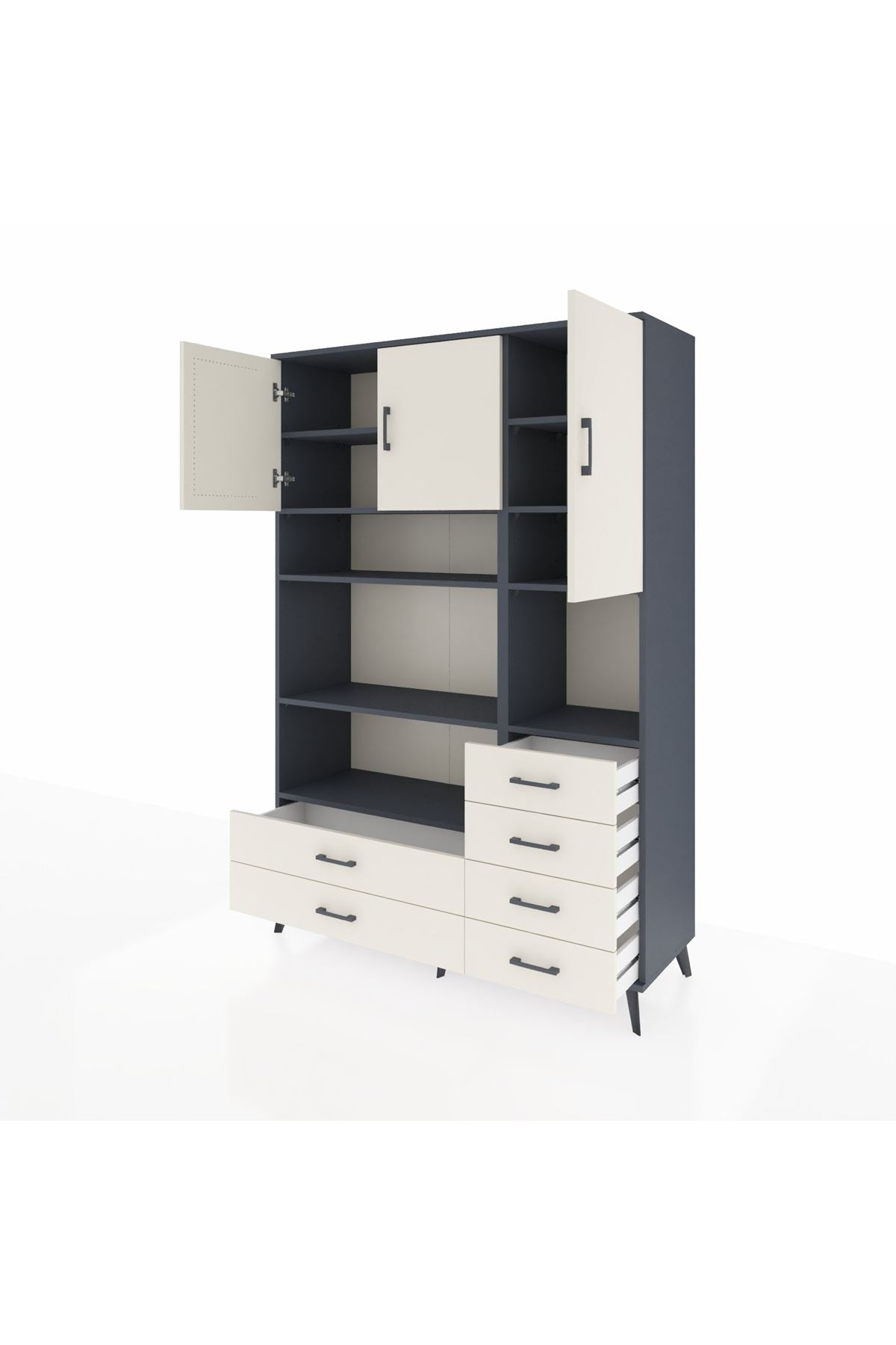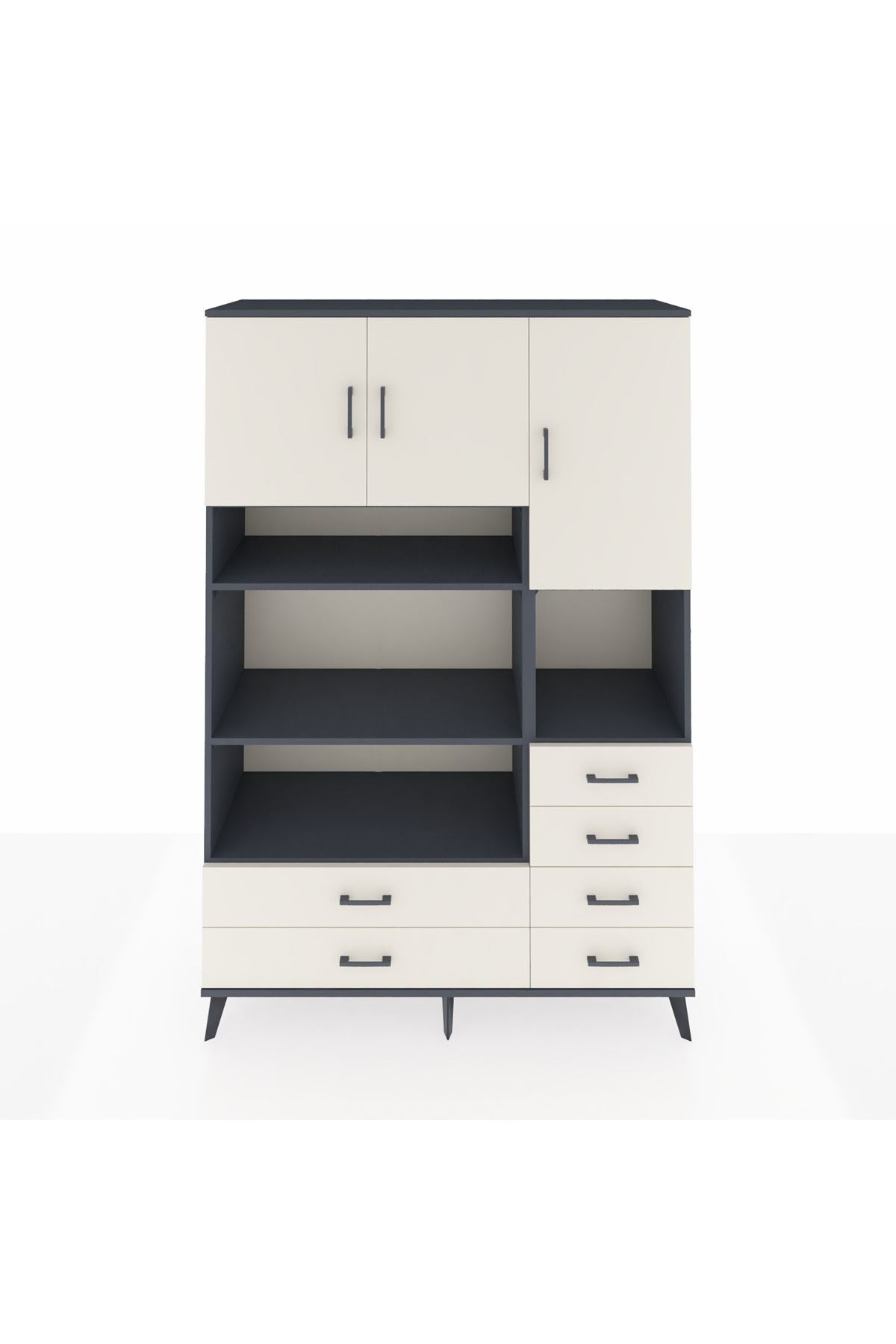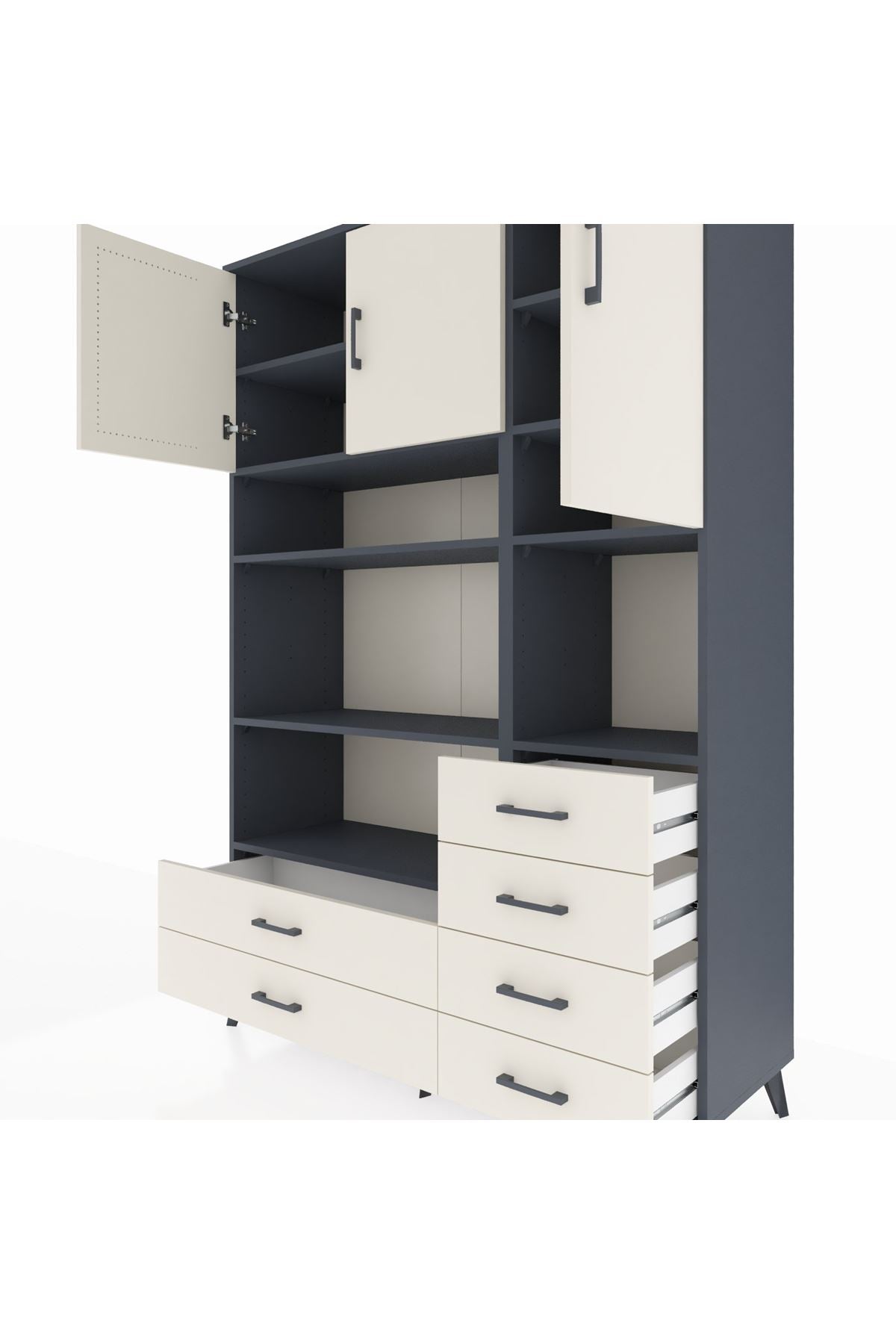 Hyperion Dolap 9 Raflı 6 Çekmeceli 3 Kapaklı 132x44x195 Antrasit-Aytaşı/Aytaşı
