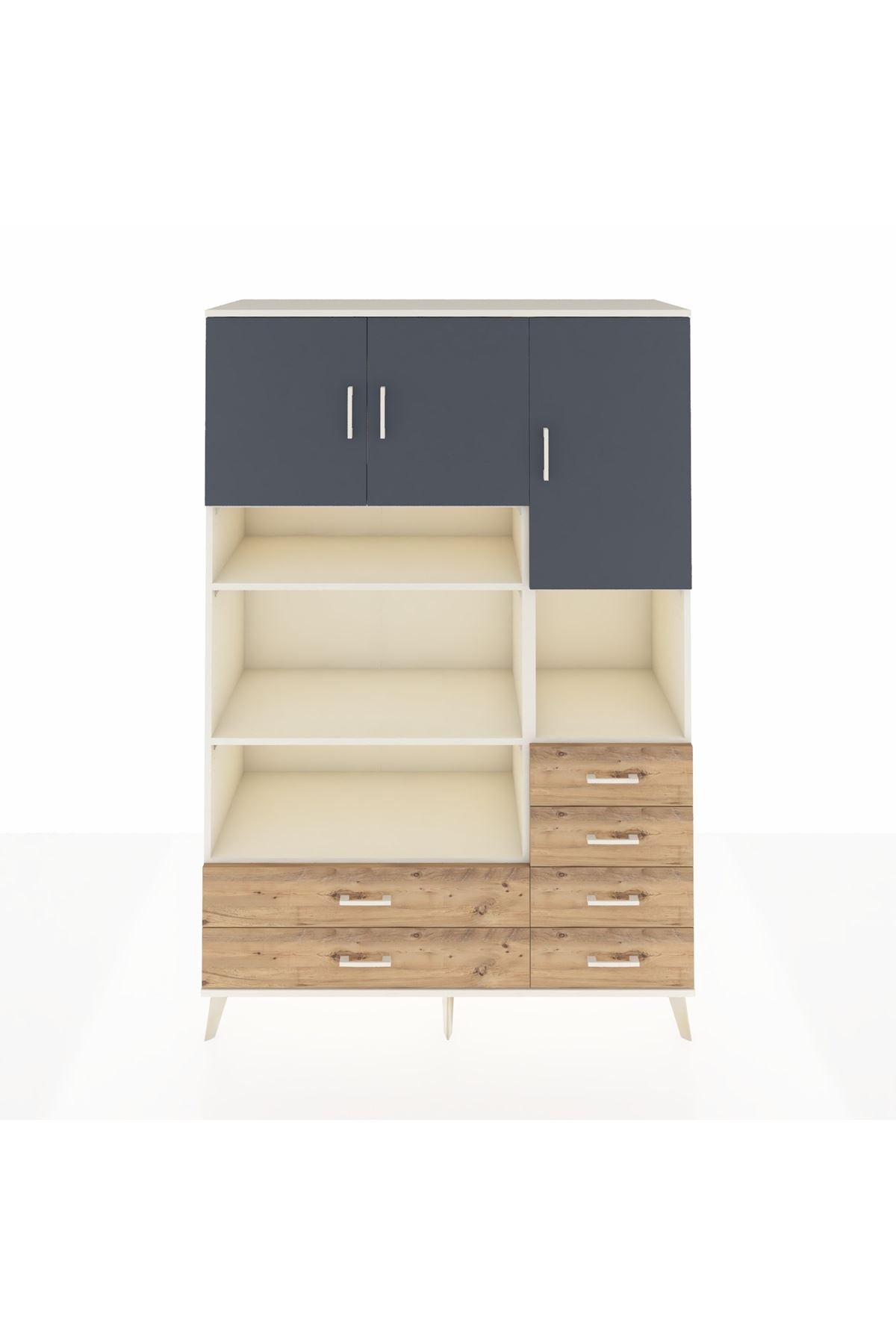 Hyperion Dolap 9 Raflı 6 Çekmeceli 3 Kapaklı 132x44x195 Aytaşı-Antrasit/Çam