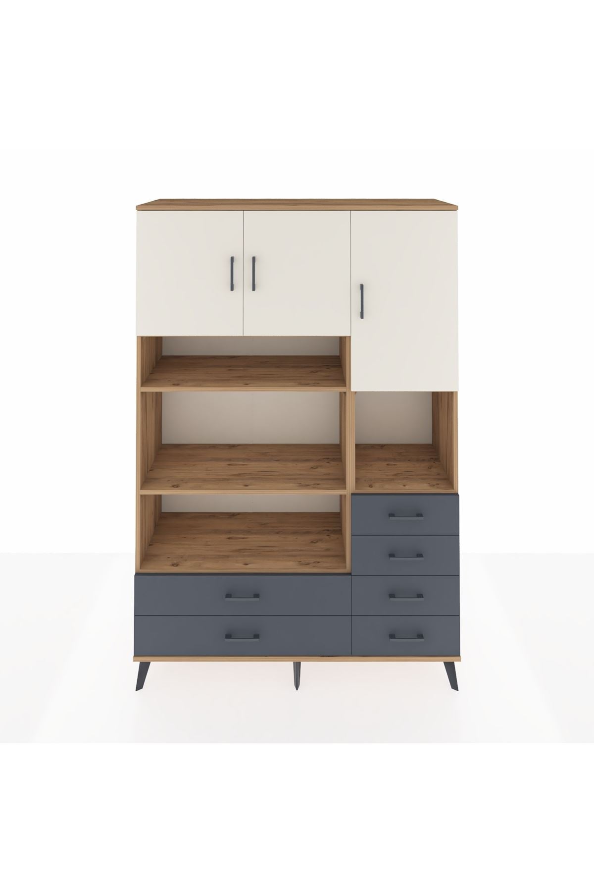Hyperion Dolap 9 Raflı 6 Çekmeceli 3 Kapaklı 132x44x195 Çam-Aytaşı/Antrasit