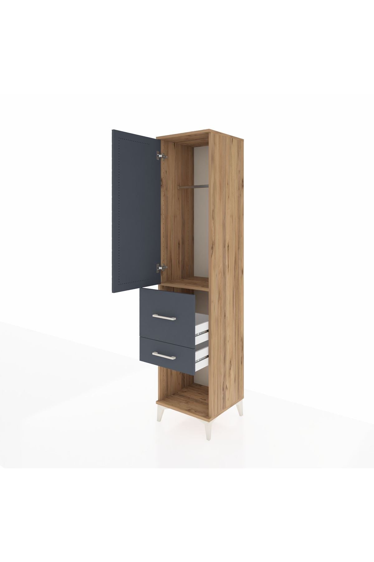 Hyperion Dolap Tek Raflı 2 Çekmeceli Tek Askılı 44x44x195 Çam-Antrasit