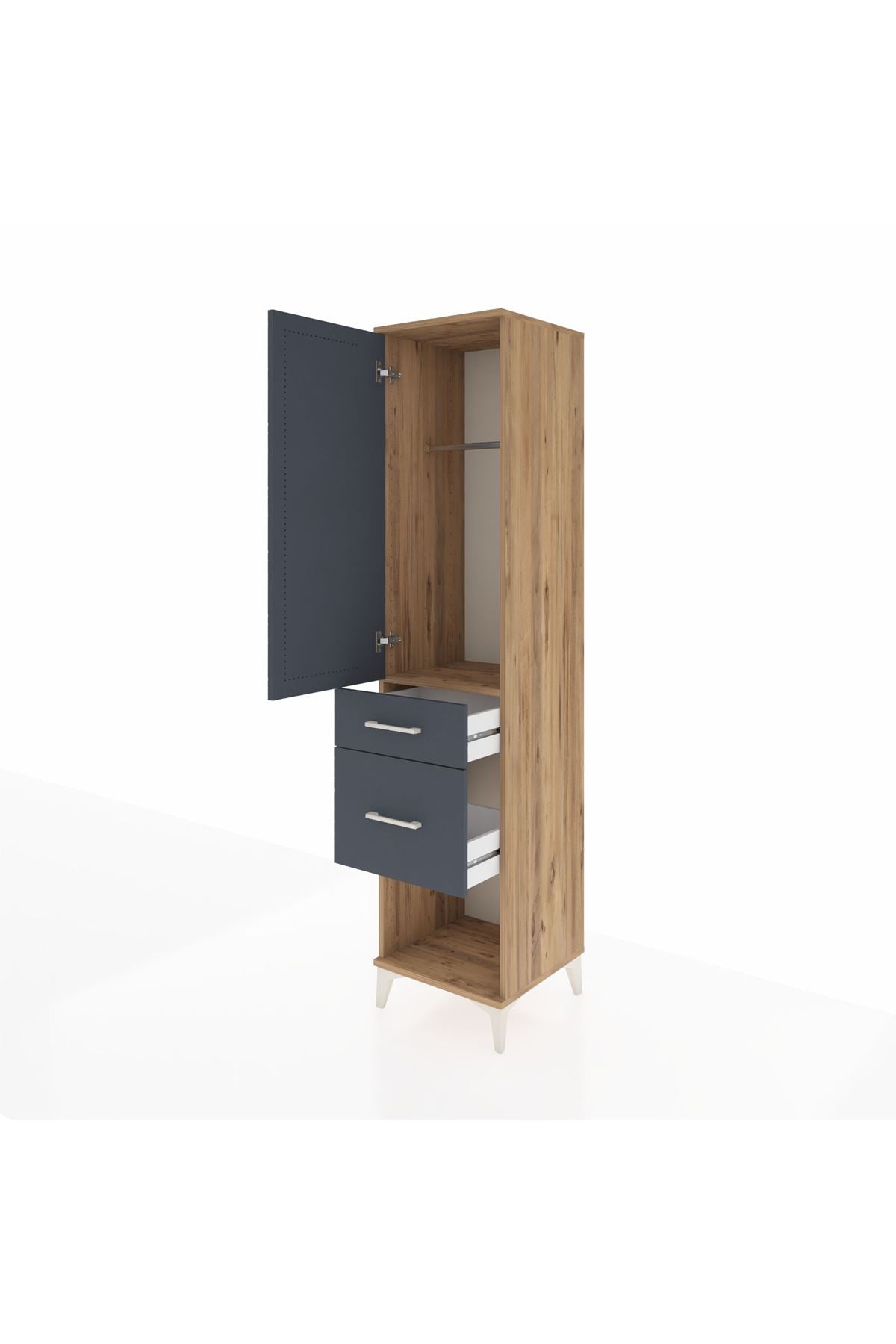 Hyperion Dolap Tek Raflı 2 Çekmeceli Tek Askılı 44x44x195 Çam-Antrasit