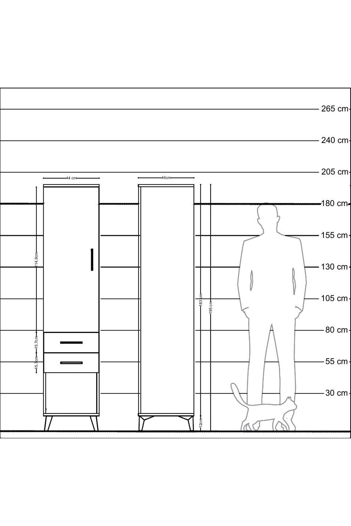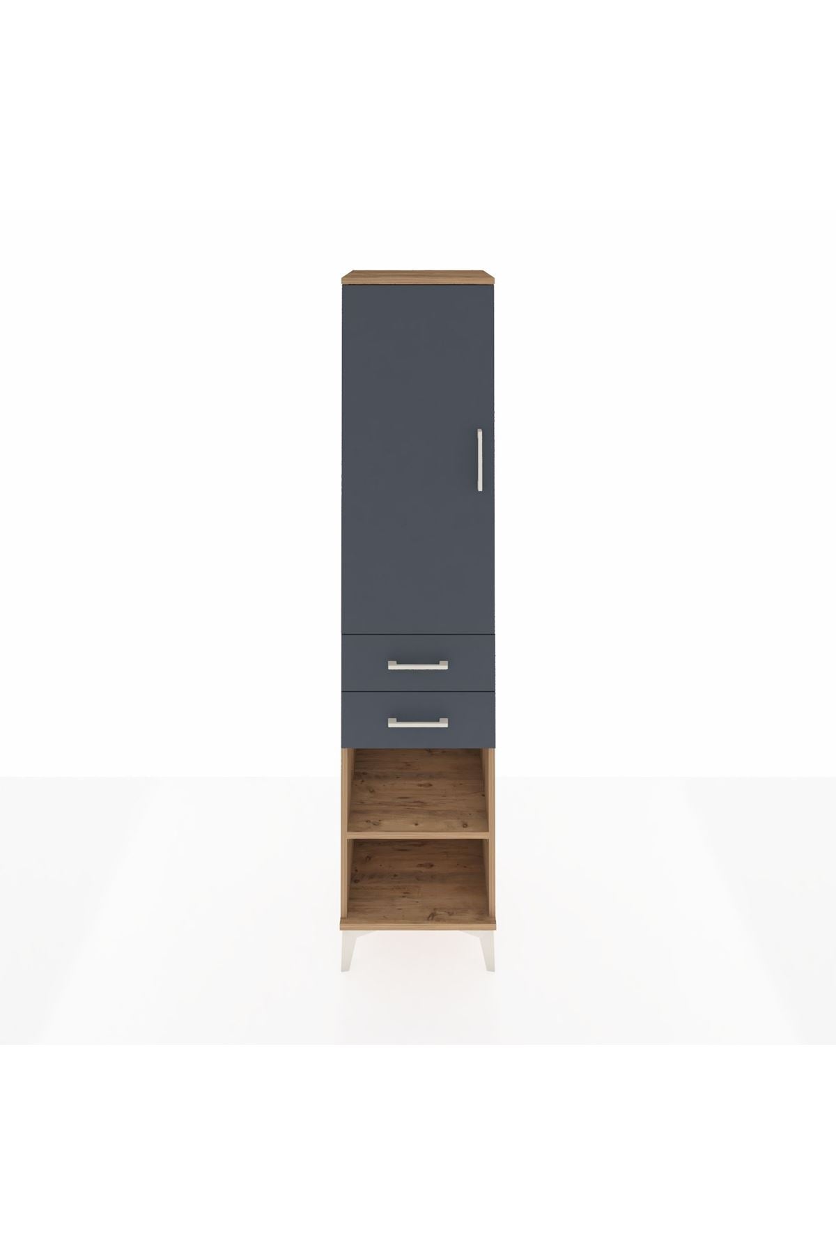 Hyperion Dolap Tek Raflı 2 Çekmeceli Tek Askılı 44x44x195 Çam-Antrasit