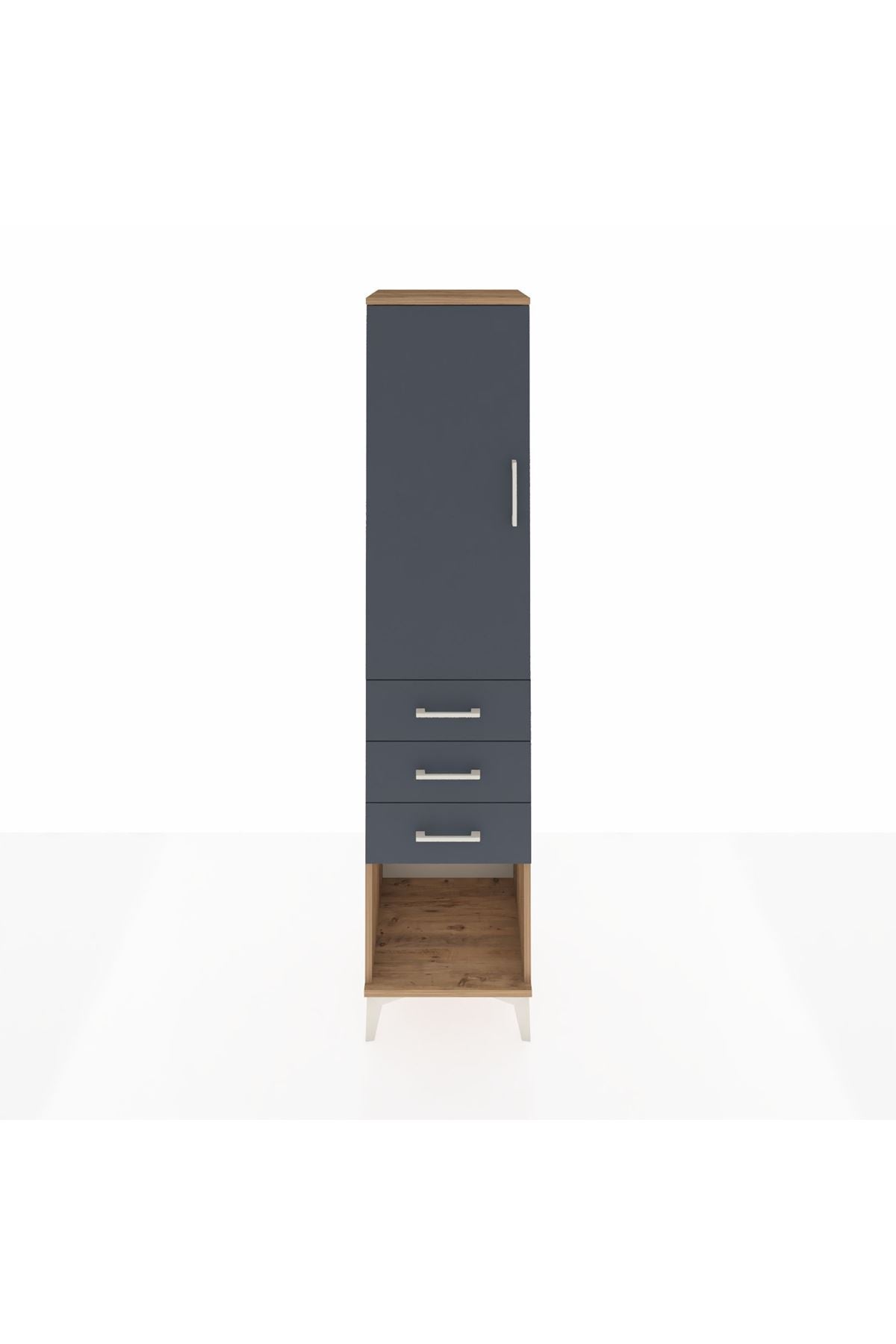 Hyperion Dolap Tek Raflı 3 Çekmeceli Tek Askılı 44x44x195 Çam-Antrasit