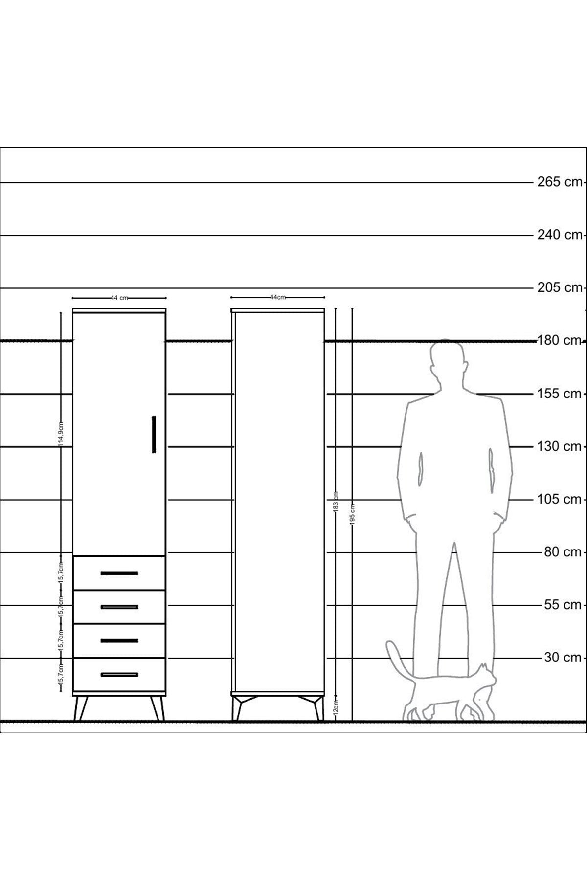 Hyperion Dolap Tek Raflı 4 Çekmeceli Tek Askılı 44x44x195 Çam-Çam