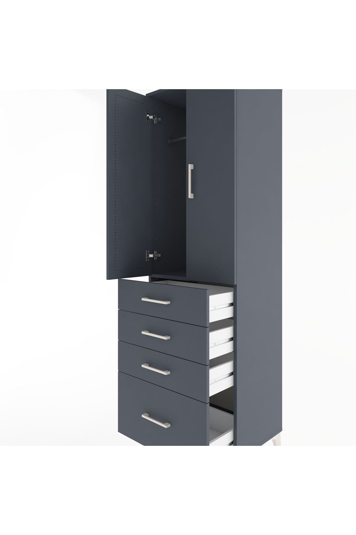 Hyperion Dolap Tek Raflı 4 Çekmeceli Tek Askılı 60x44x195 Antrasit-Antrasit