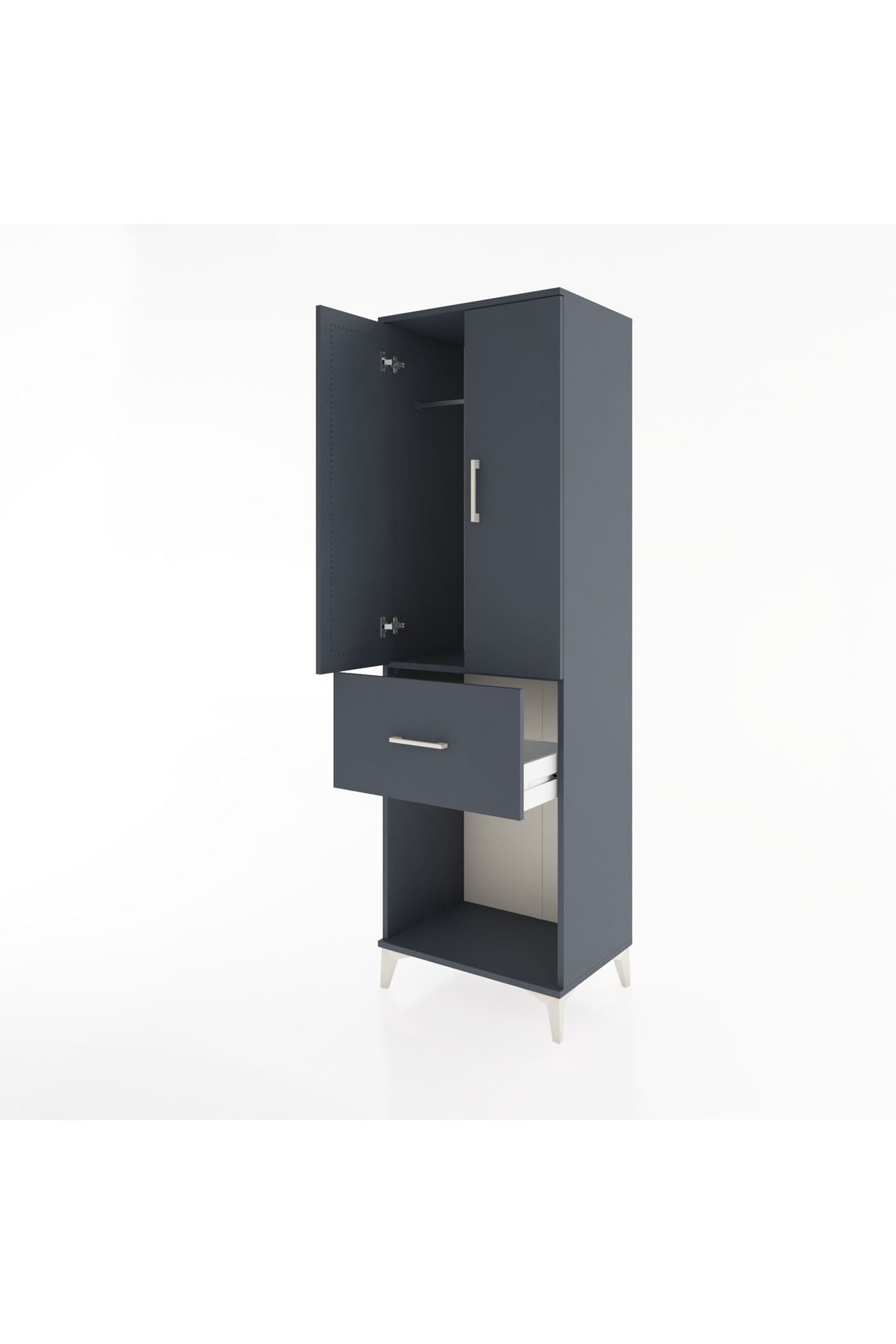 Hyperion Dolap Tek Raflı Tek Çekmeceli Tek Askılı 60x44x195 Antrasit-Antrasit