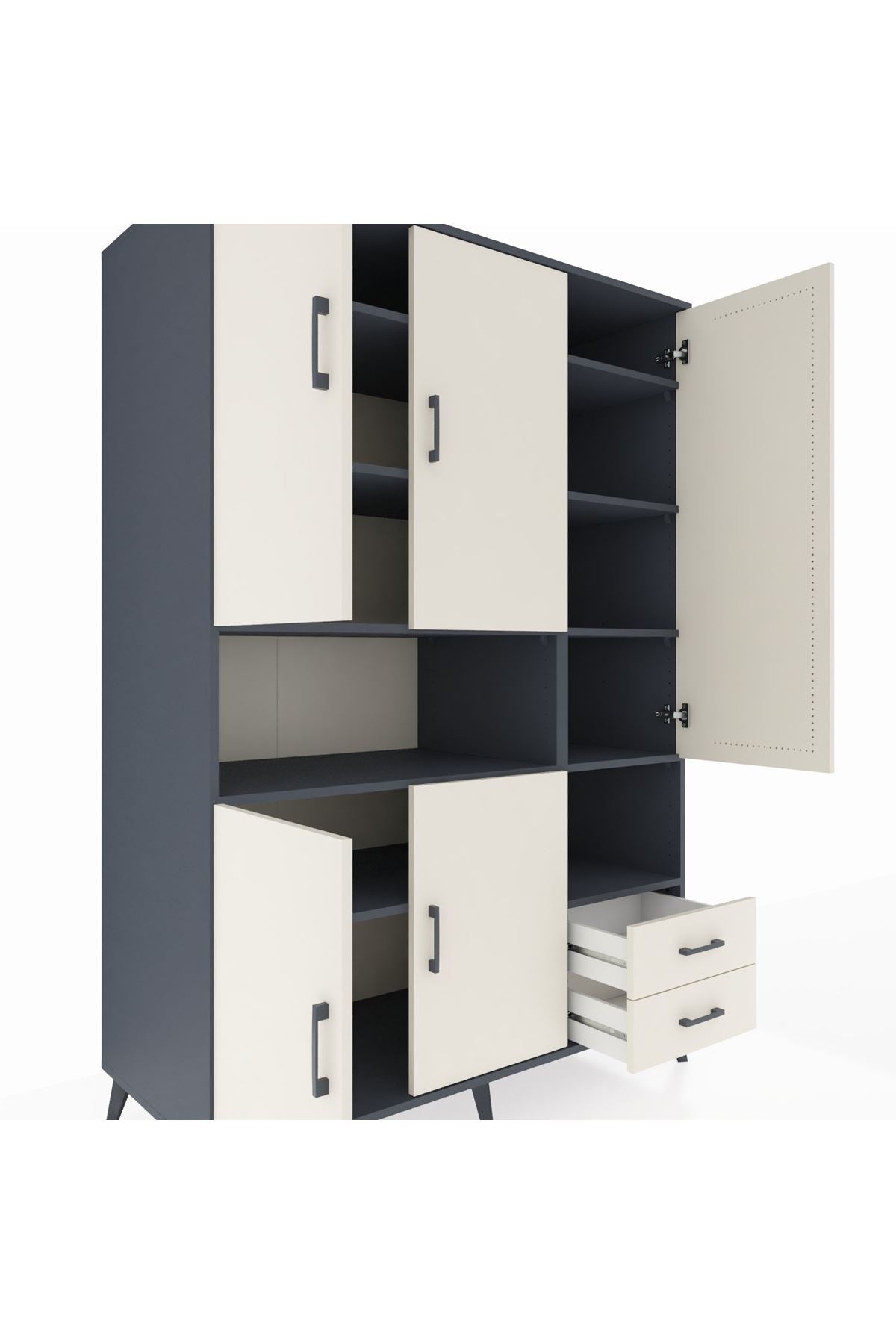 Kronos dolap; mutfak, ofis köşesi, antre veya salon gibi alanlarda eşyalarınızı düzenli tutmanızı sağlar. Derin raflar ve kapaklı bölmeler ile tozlanmayı önler, açık bölmeler sık kullanılan materyaller için hızlı erişim sunar. Çekmece sayısı konfigüre edilebilir özelliği sayesinde kullanım tercihlerinize göre 2 çekmeceli yapıyı farklı kombinasyonlarda düzenleyebilirsiniz. Metal ayaklar zeminden yüksek tutarak nem ve temizliği kolaylaştırır, mobil temizlik aletlerinin ulaşmasını sağlar. Robust konstrüksiyon, uzun vadeli kullanımda deformasyon riskini azaltır.