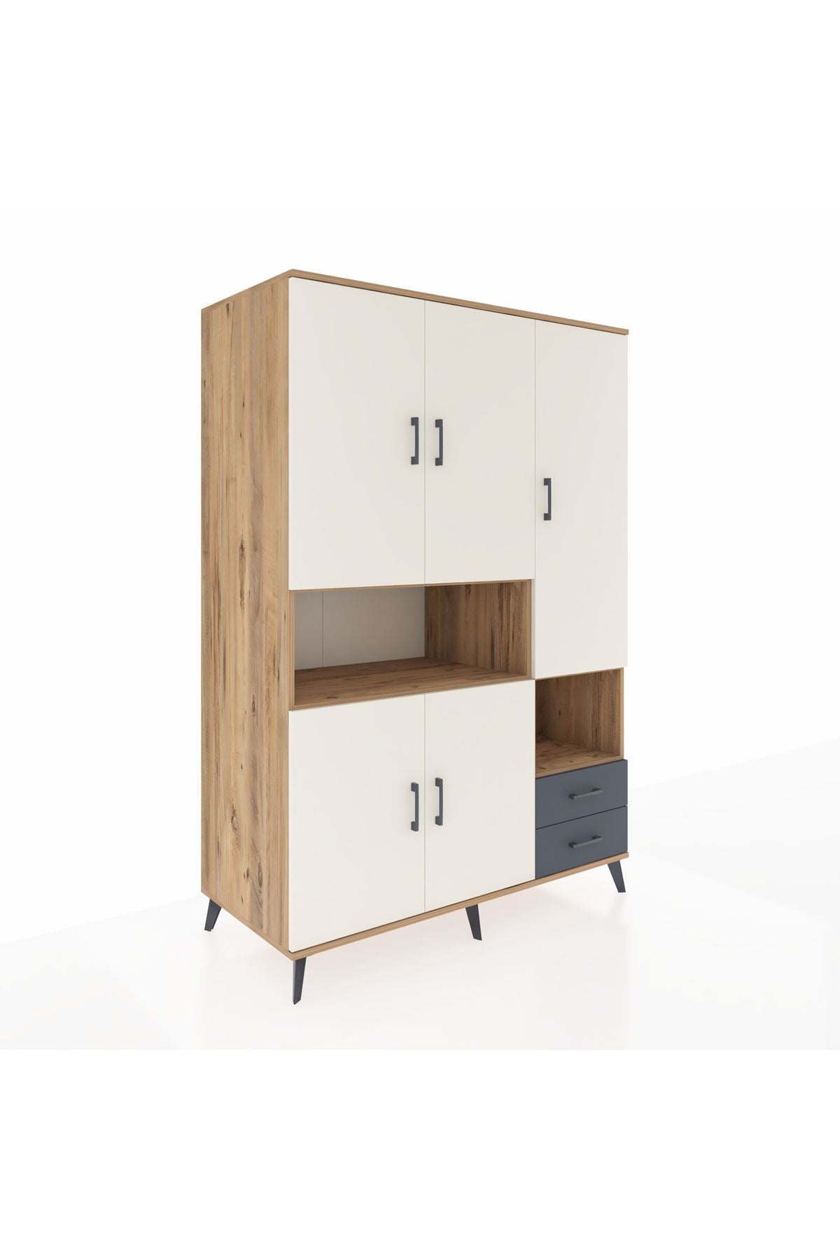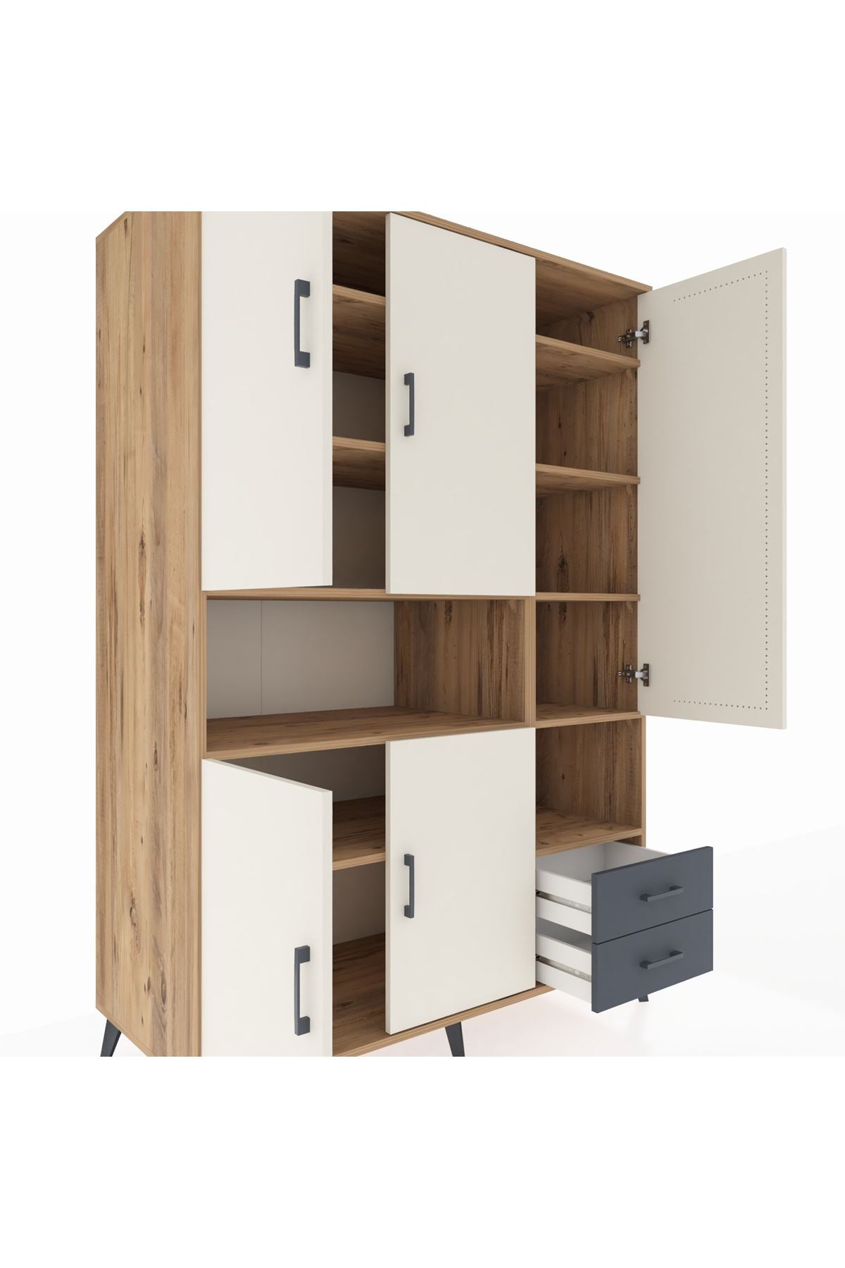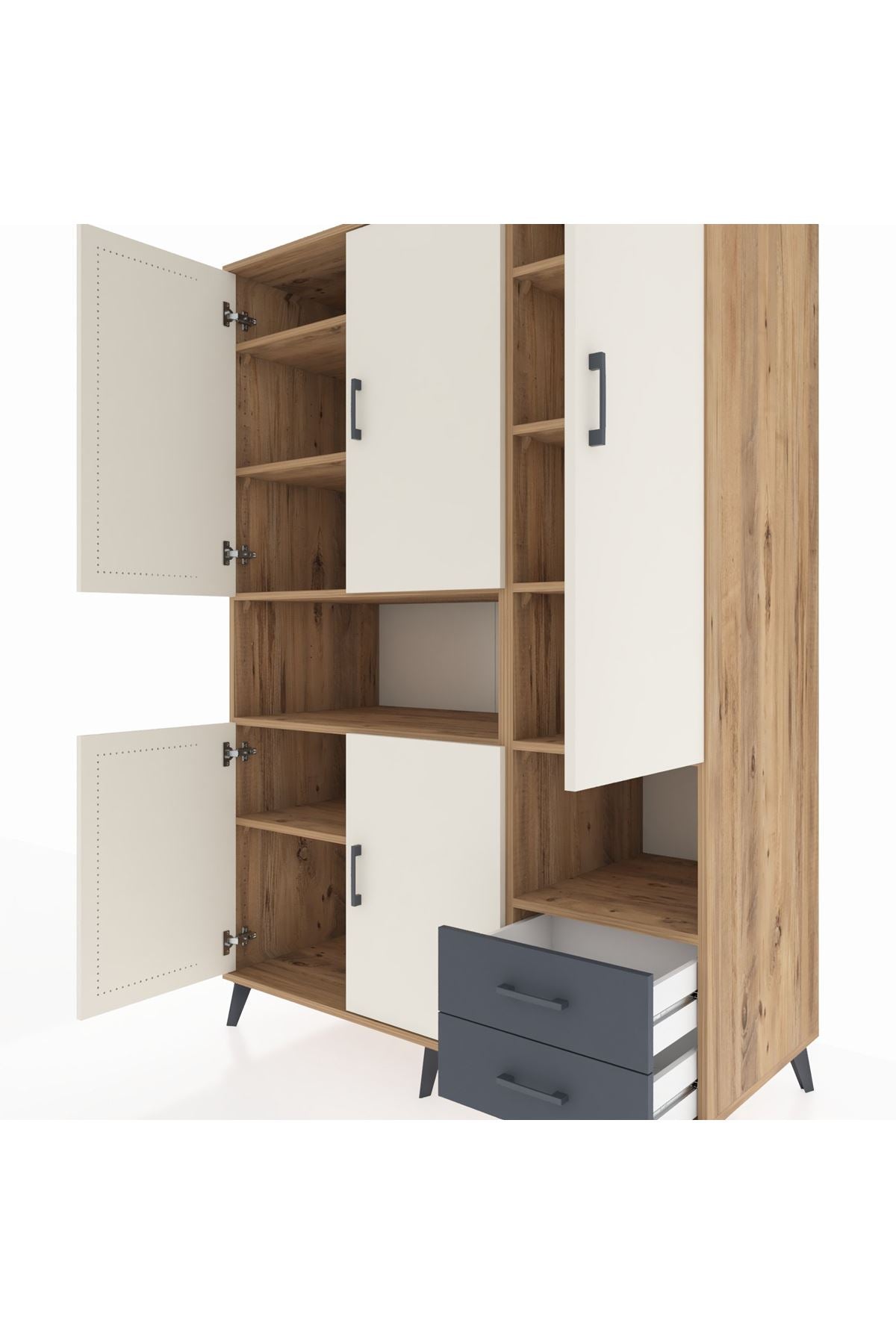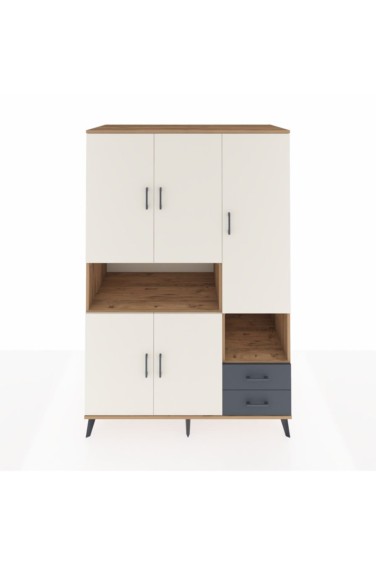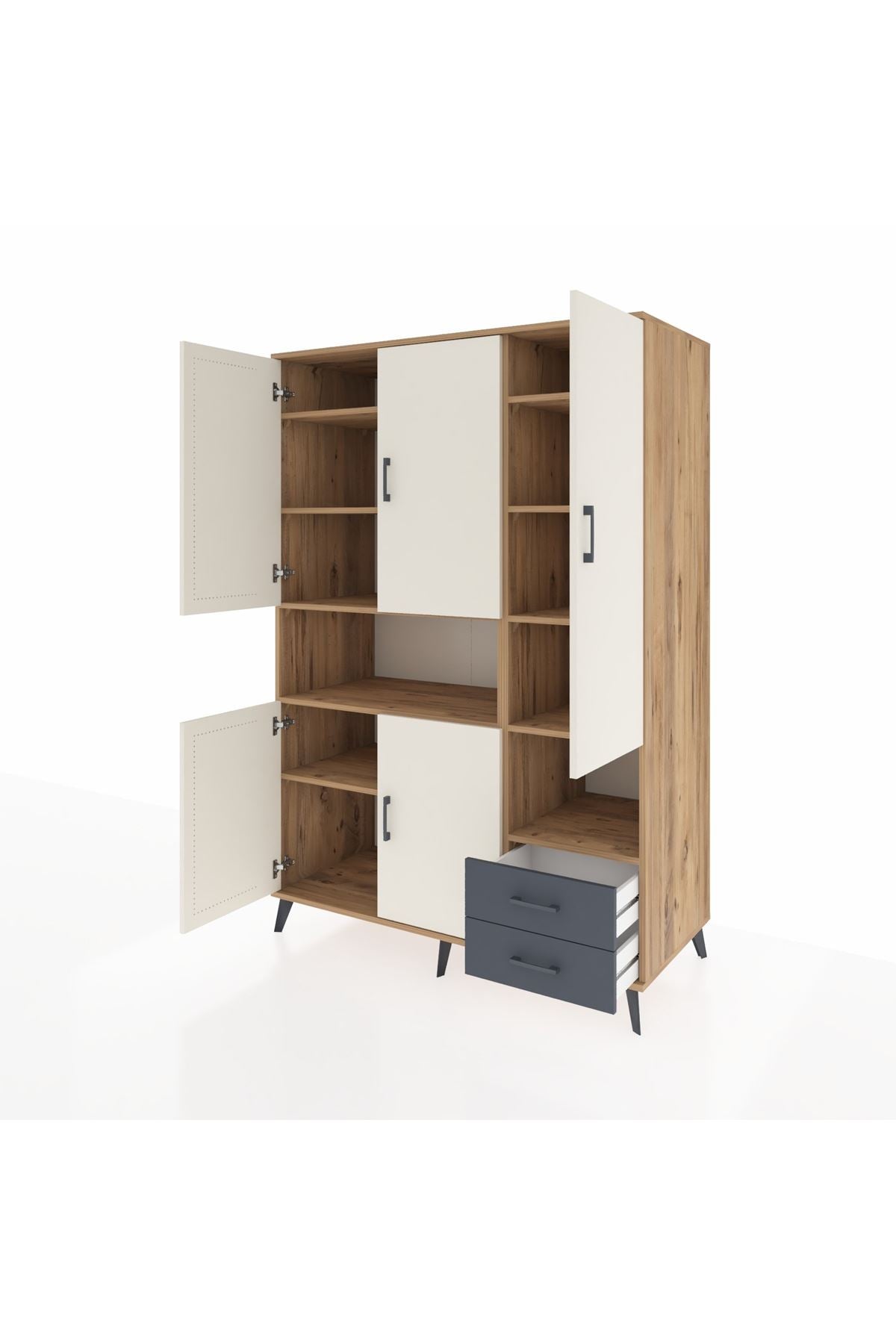 Kronos Dolap 10 Raflı 2 Çekmeceli 5 Kapaklı 132x59x195 Çam-Aytaşı/Antrasit
