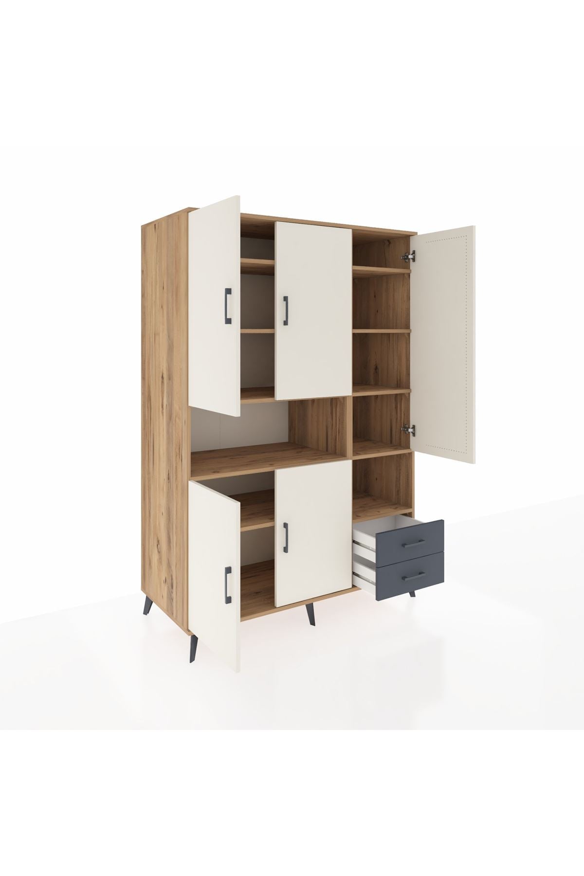Toplamda 6 kapak ve 9 geniş raf ile kıyafet, evrak, temizlik malzemesi veya mutfak gereçleri gibi farklı ihtiyaçlarınız için idealdir 🧺📚