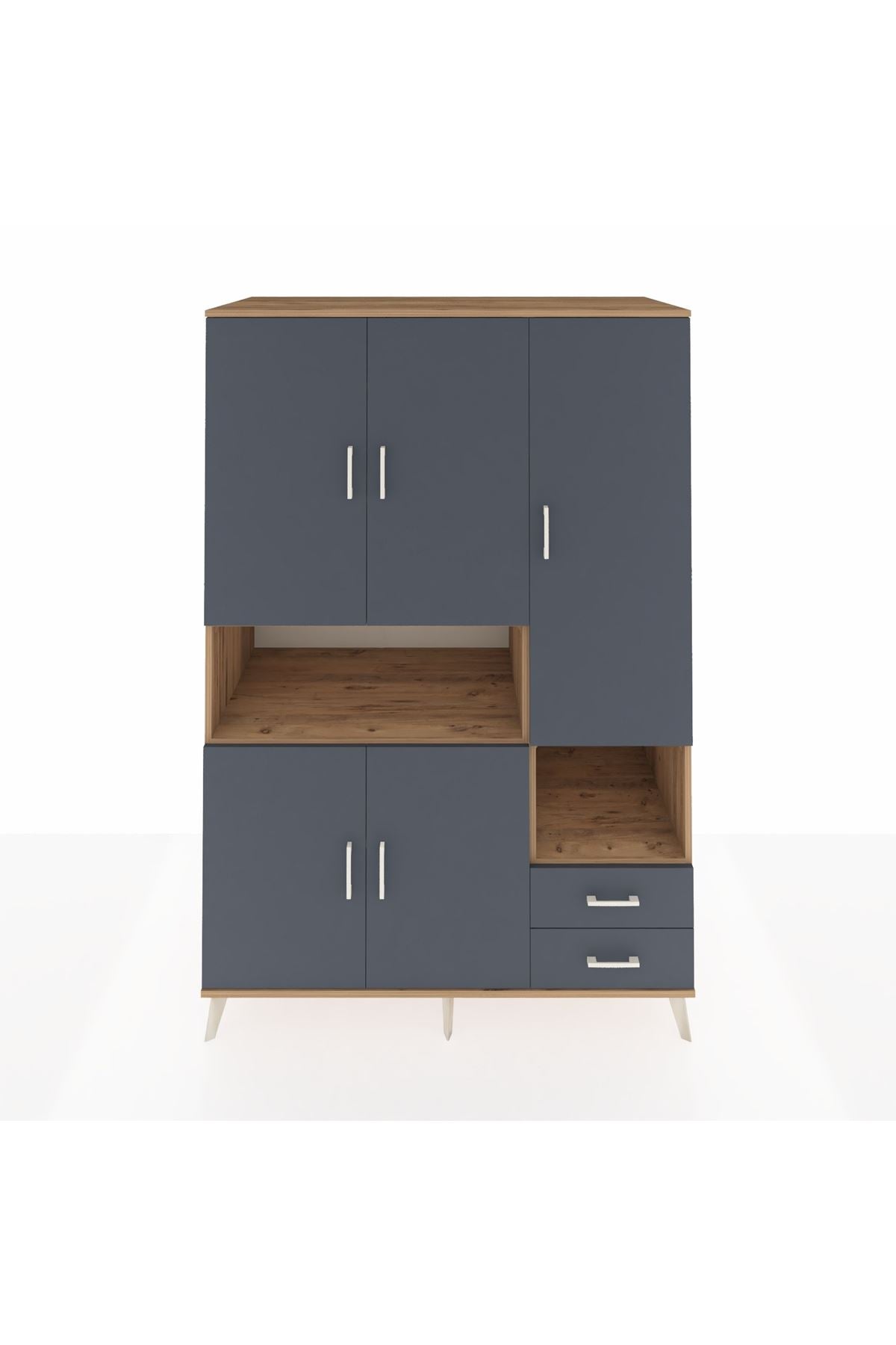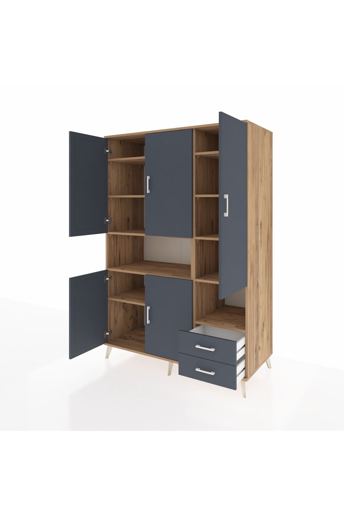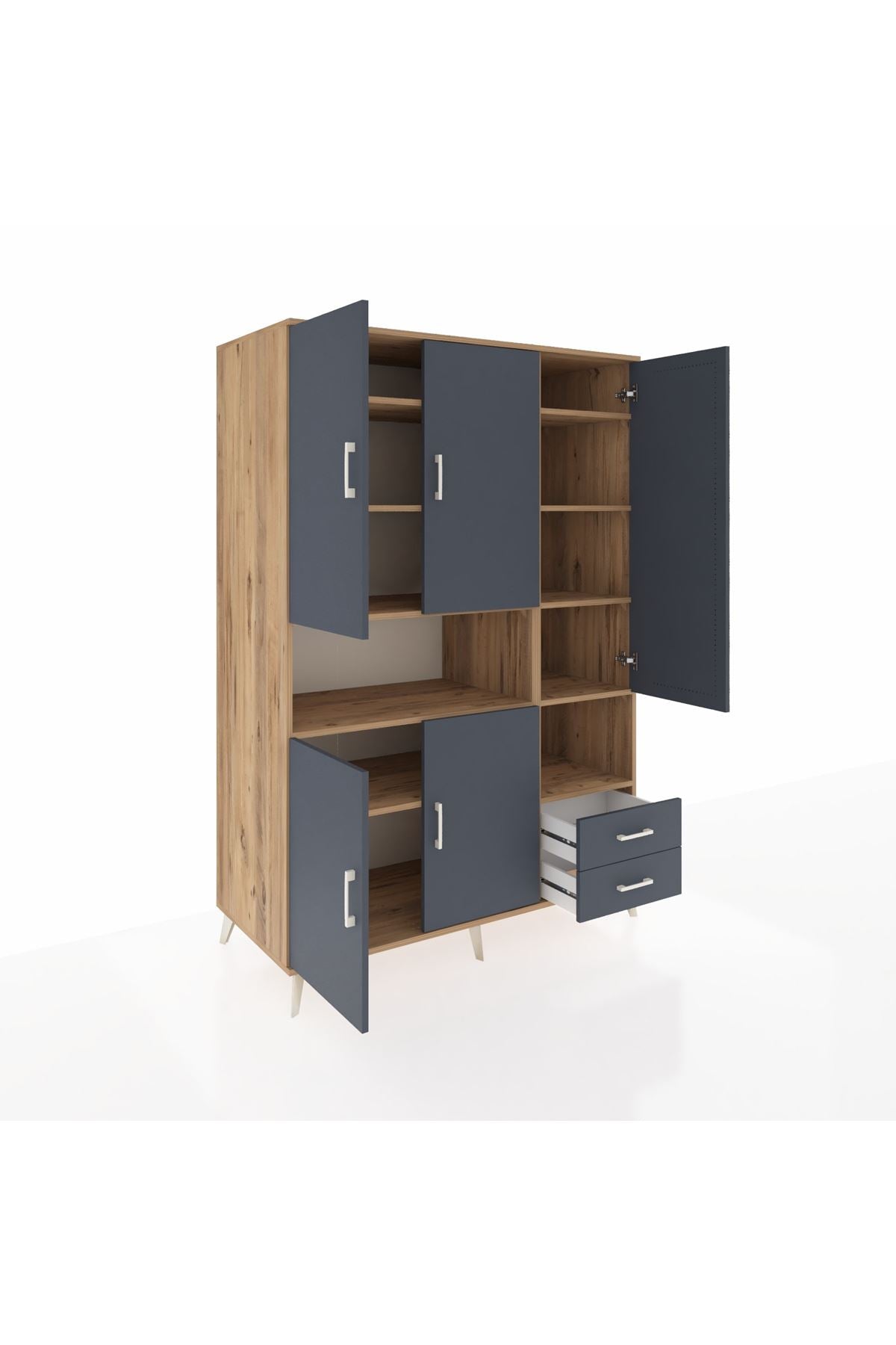 Kronos Dolap 10 Raflı 2 Çekmeceli 5 Kapaklı 132x59x195 Çam-Antrasit/Antrasit