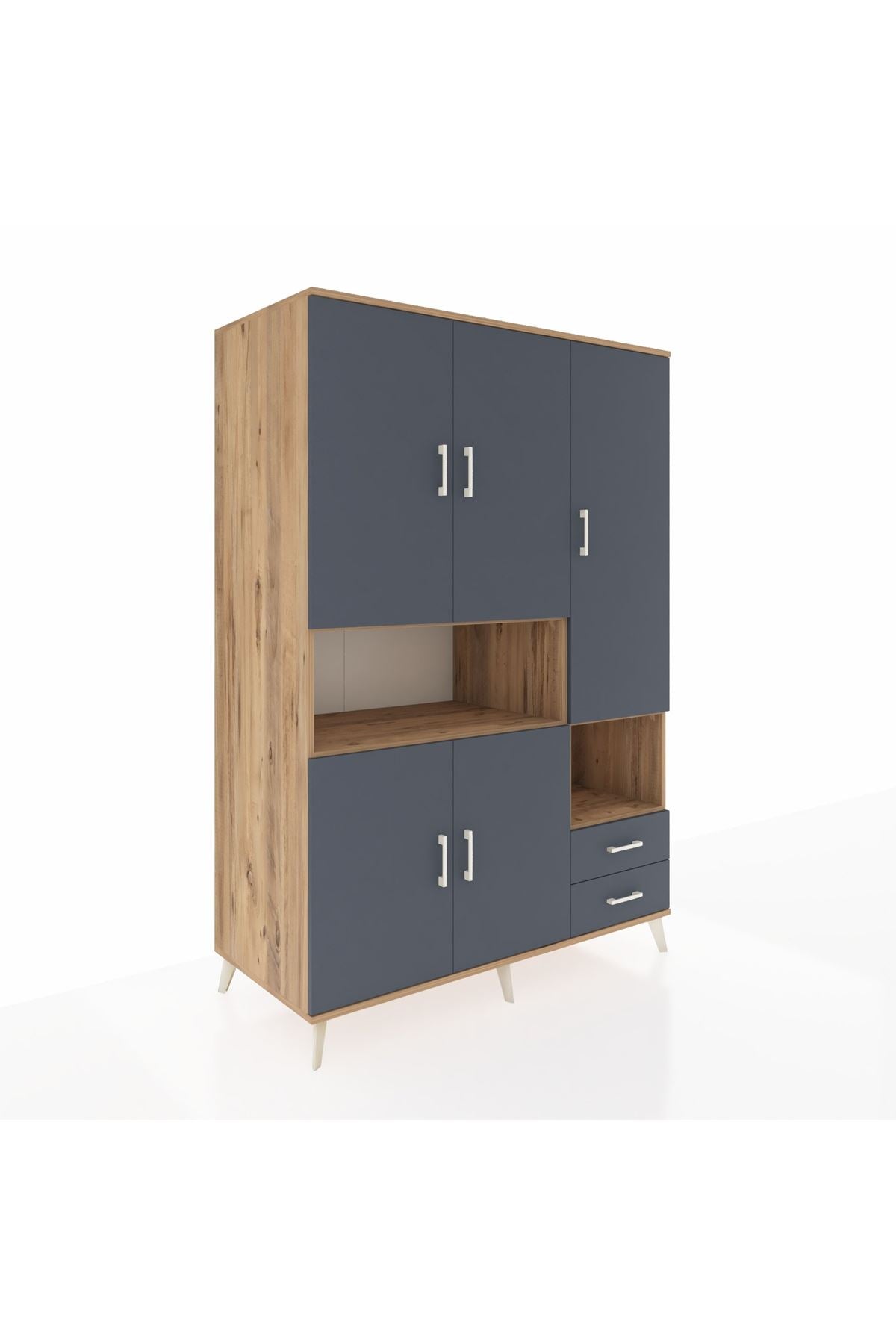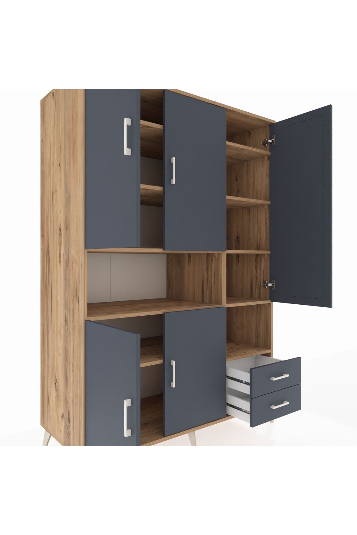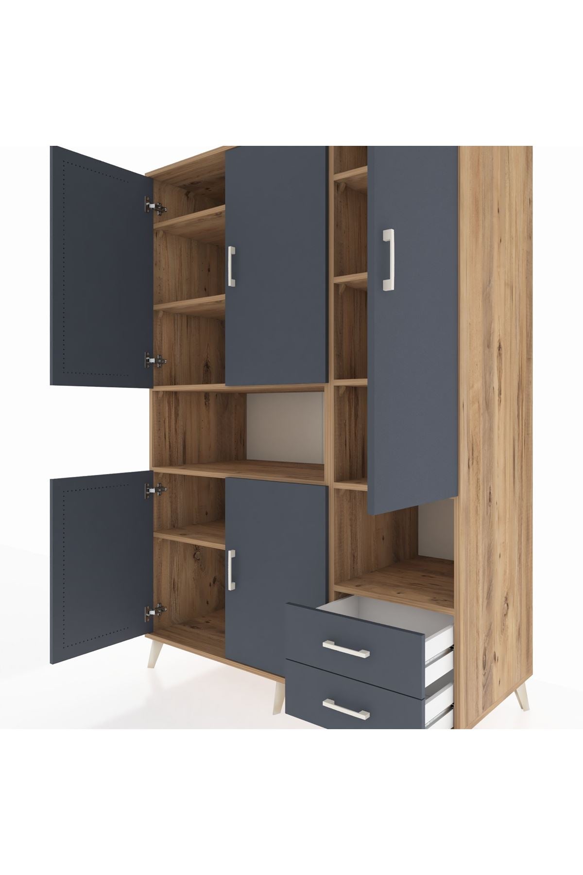 Kronos Dolap 10 Raflı 2 Çekmeceli 5 Kapaklı 132x59x195 Çam-Antrasit/Antrasit