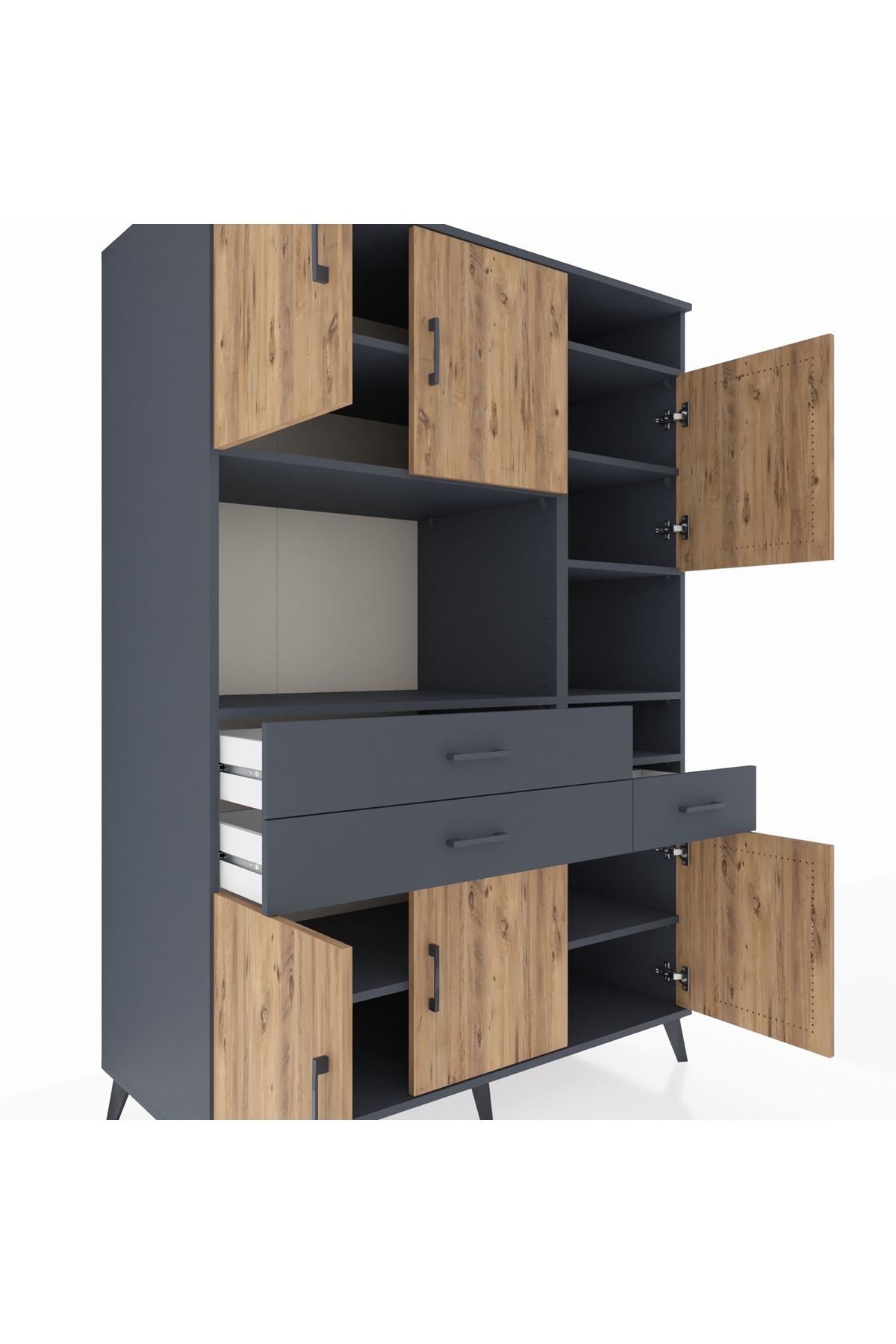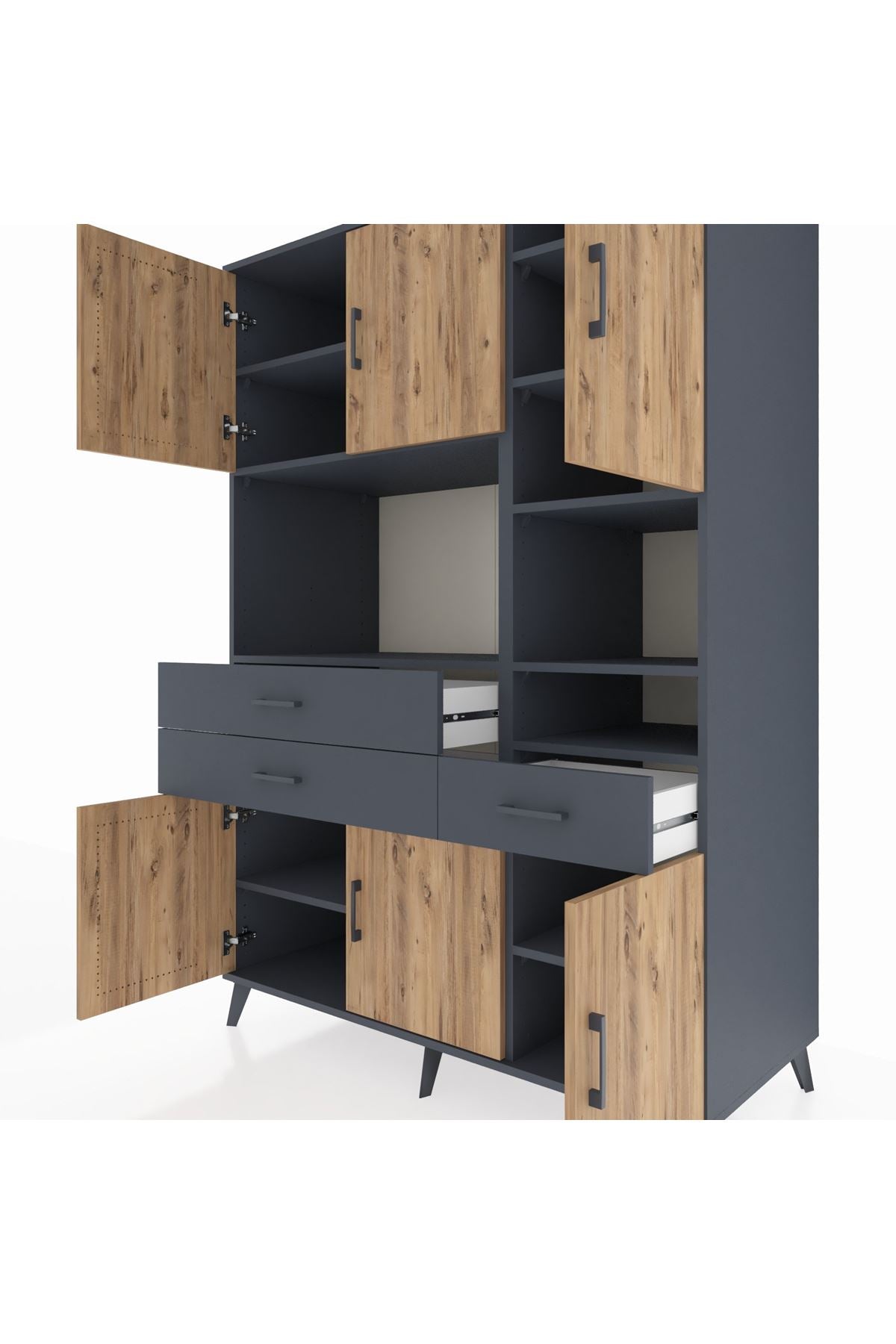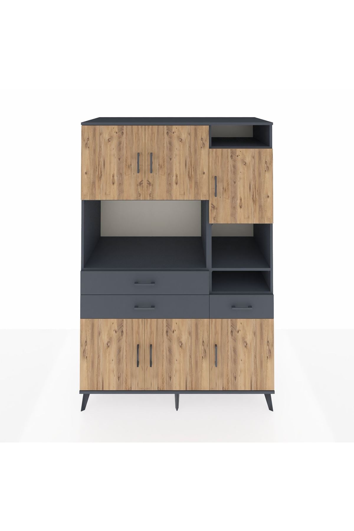 Kronos Dolap 10 Raflı 3 Çekmeceli 6 Kapaklı 132x59x195 Antrasit-Çam/Antrasit