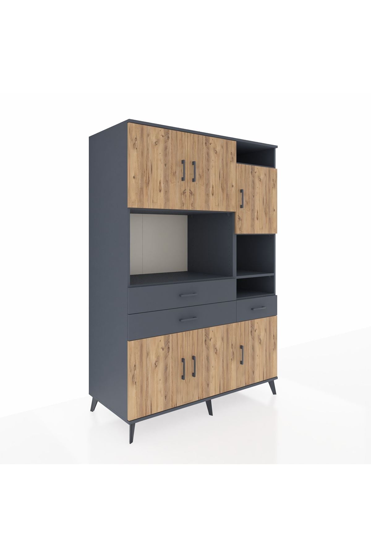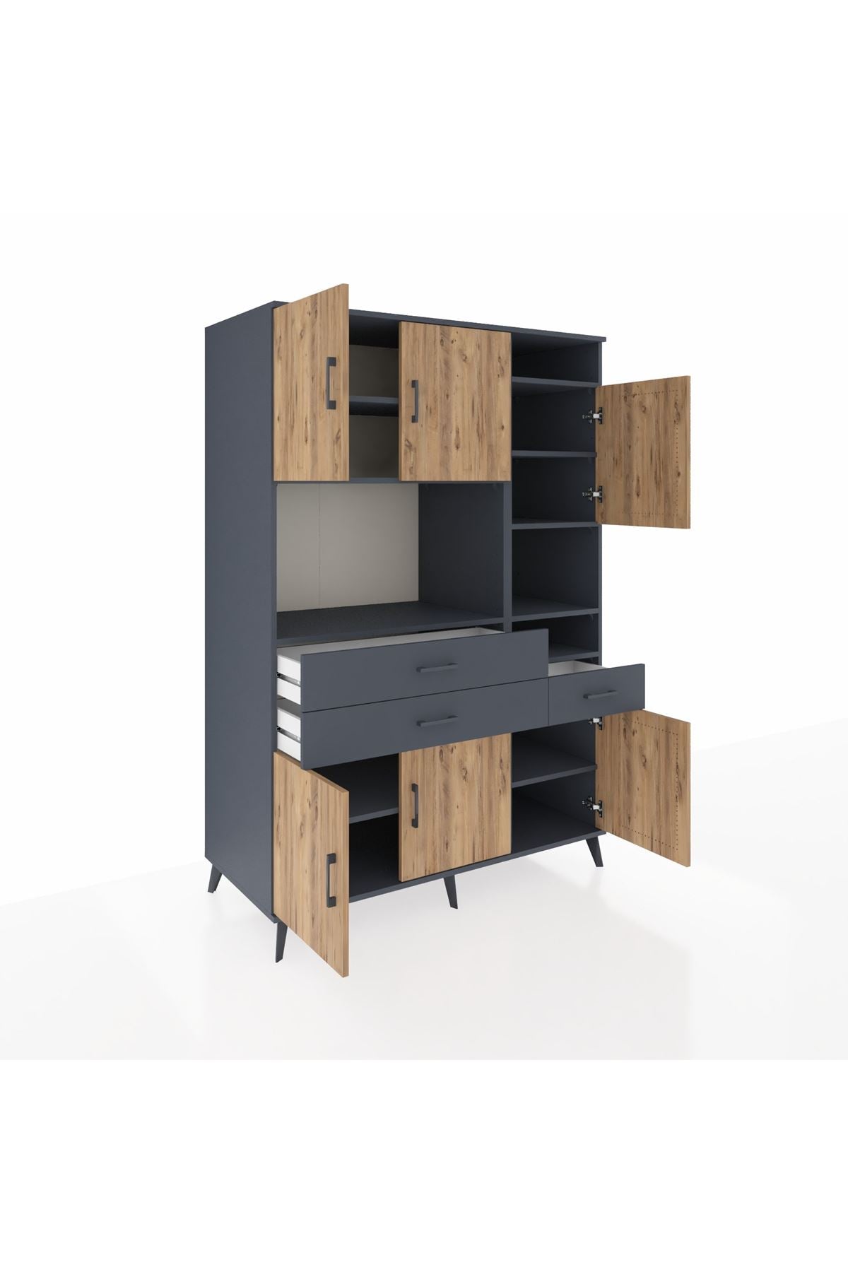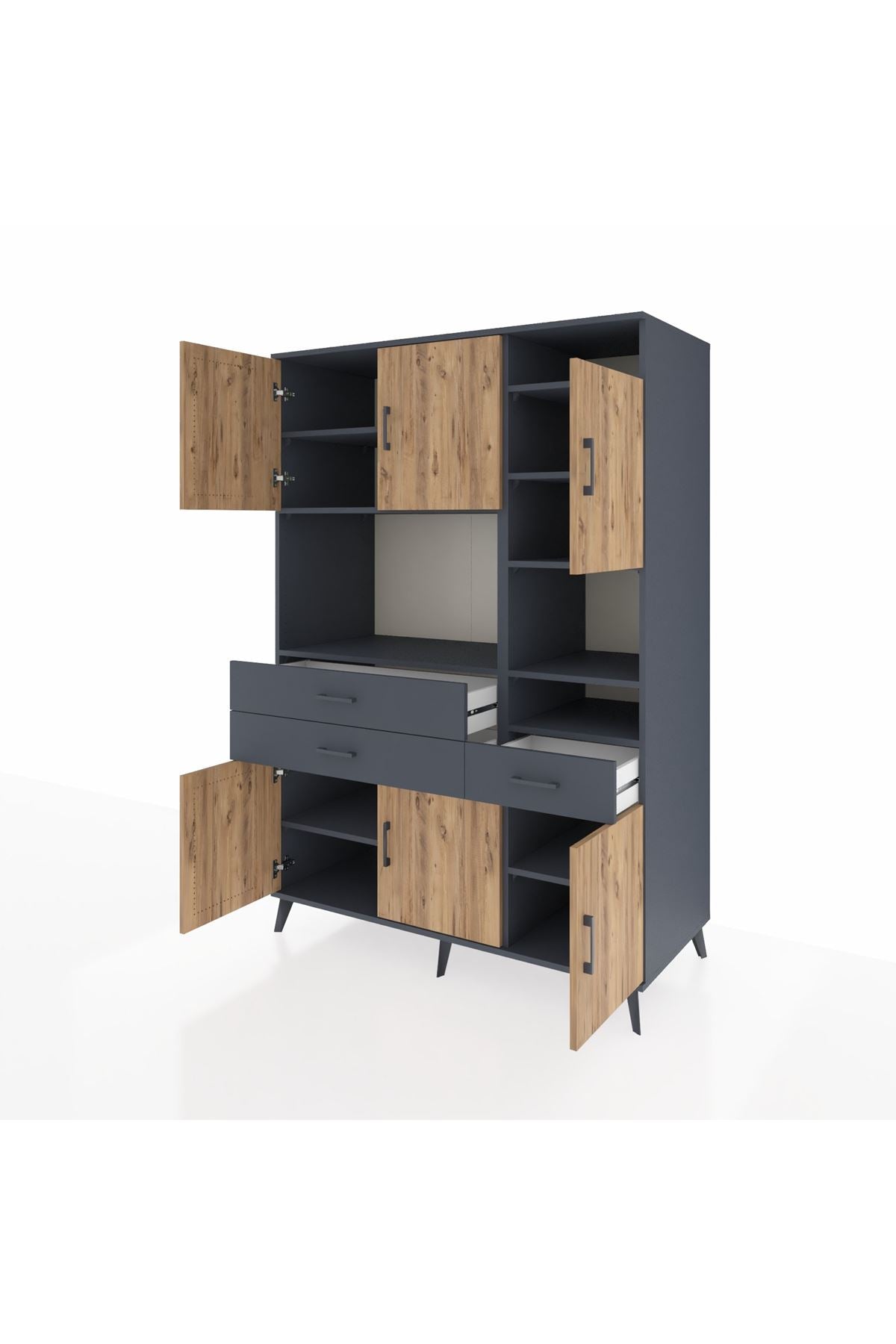 Kronos Dolap 10 Raflı 3 Çekmeceli 6 Kapaklı 132x59x195 Antrasit-Çam/Antrasit