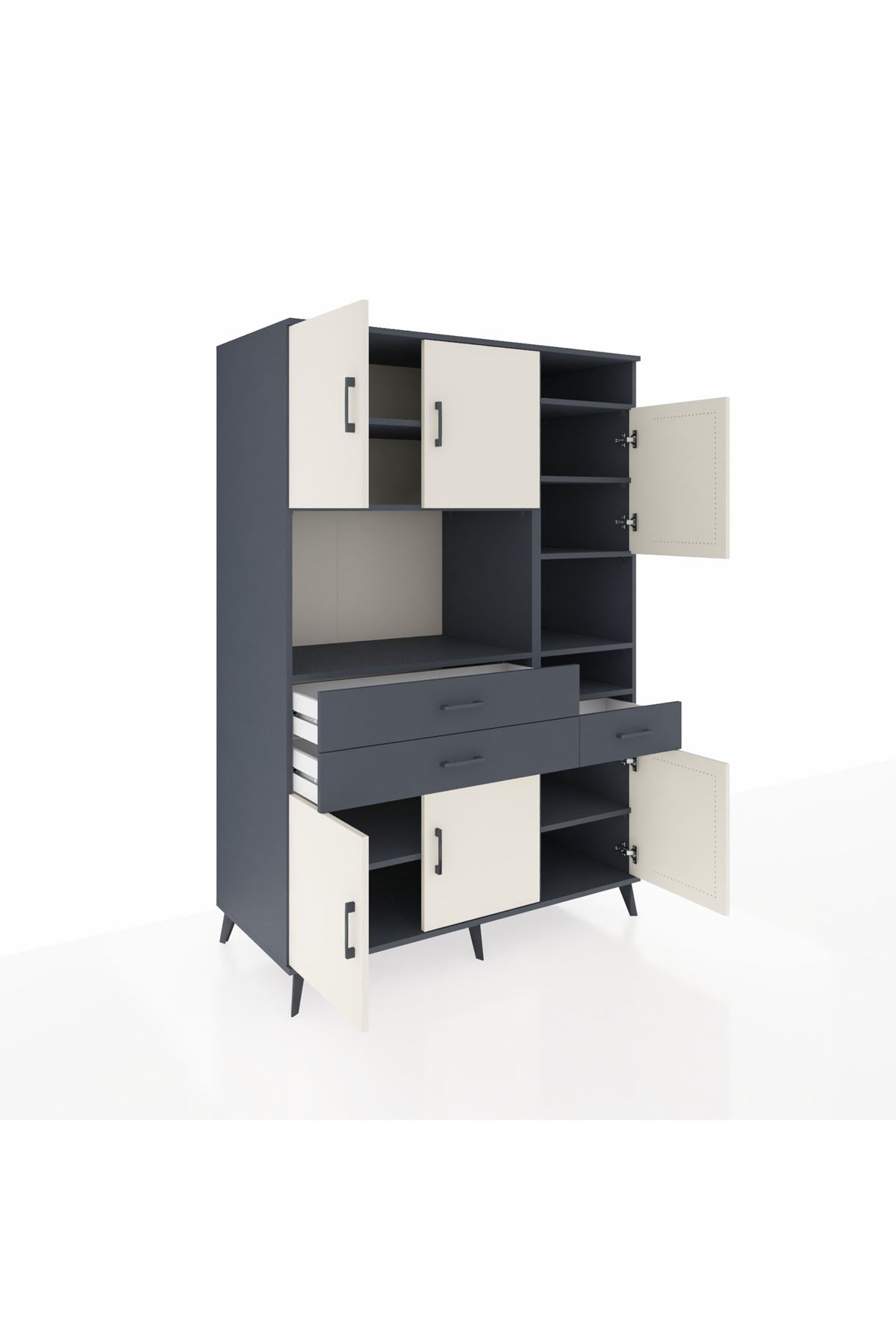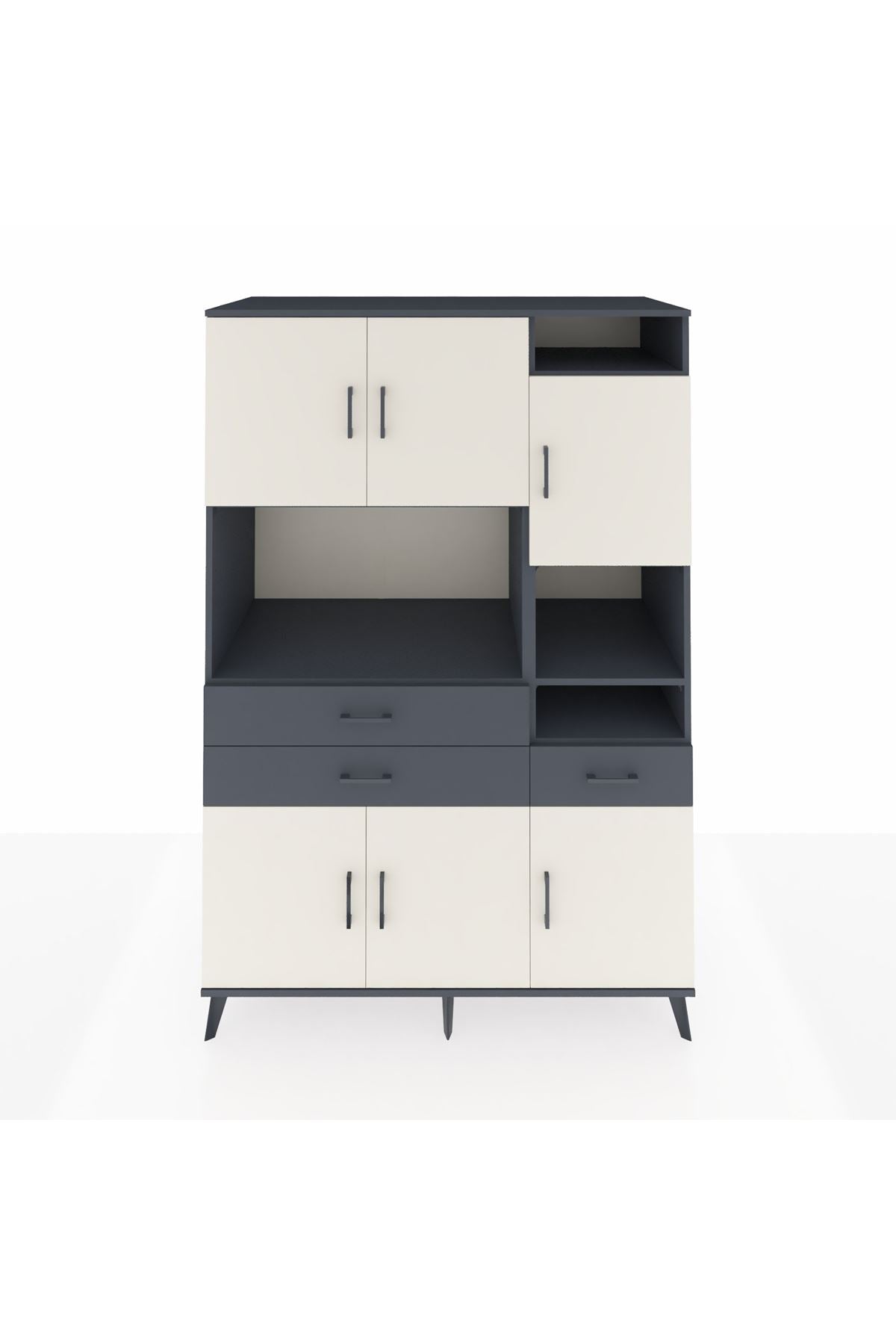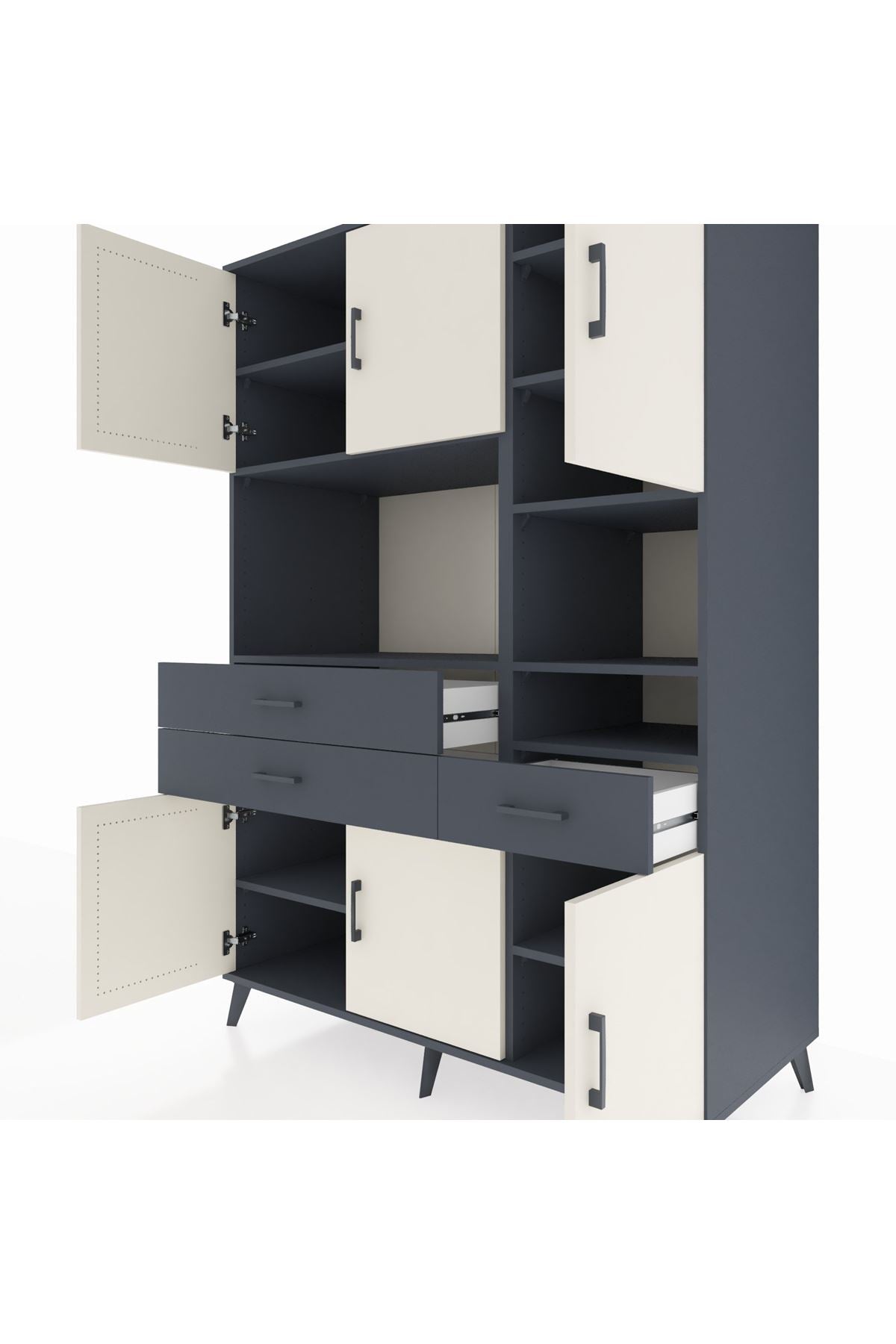 Kronos Dolap 10 Raflı 3 Çekmeceli 6 Kapaklı 132x59x195 Antrasit-Aytaşı/Antrasit