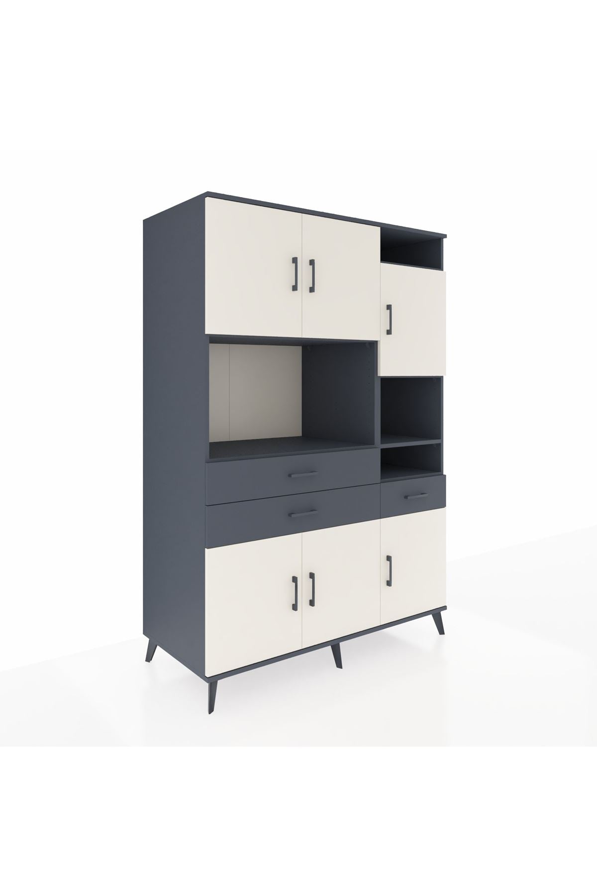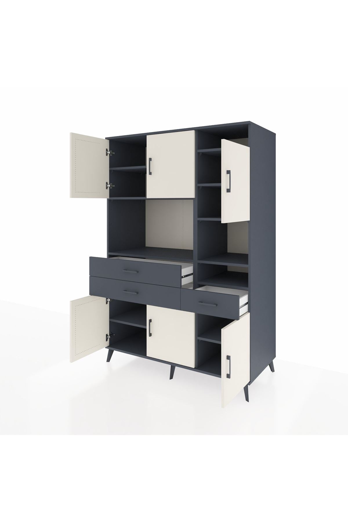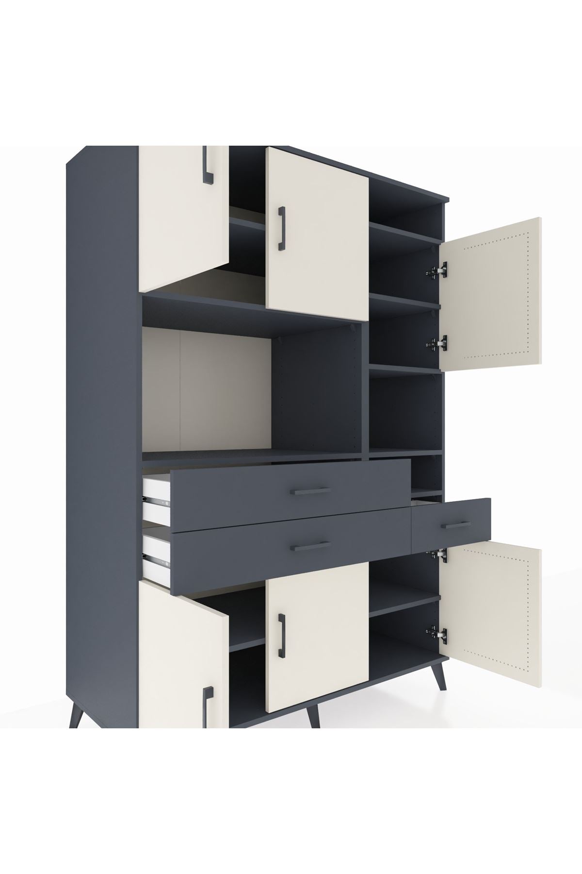 Kronos Dolap 10 Raflı 3 Çekmeceli 6 Kapaklı 132x59x195 Antrasit-Aytaşı/Antrasit