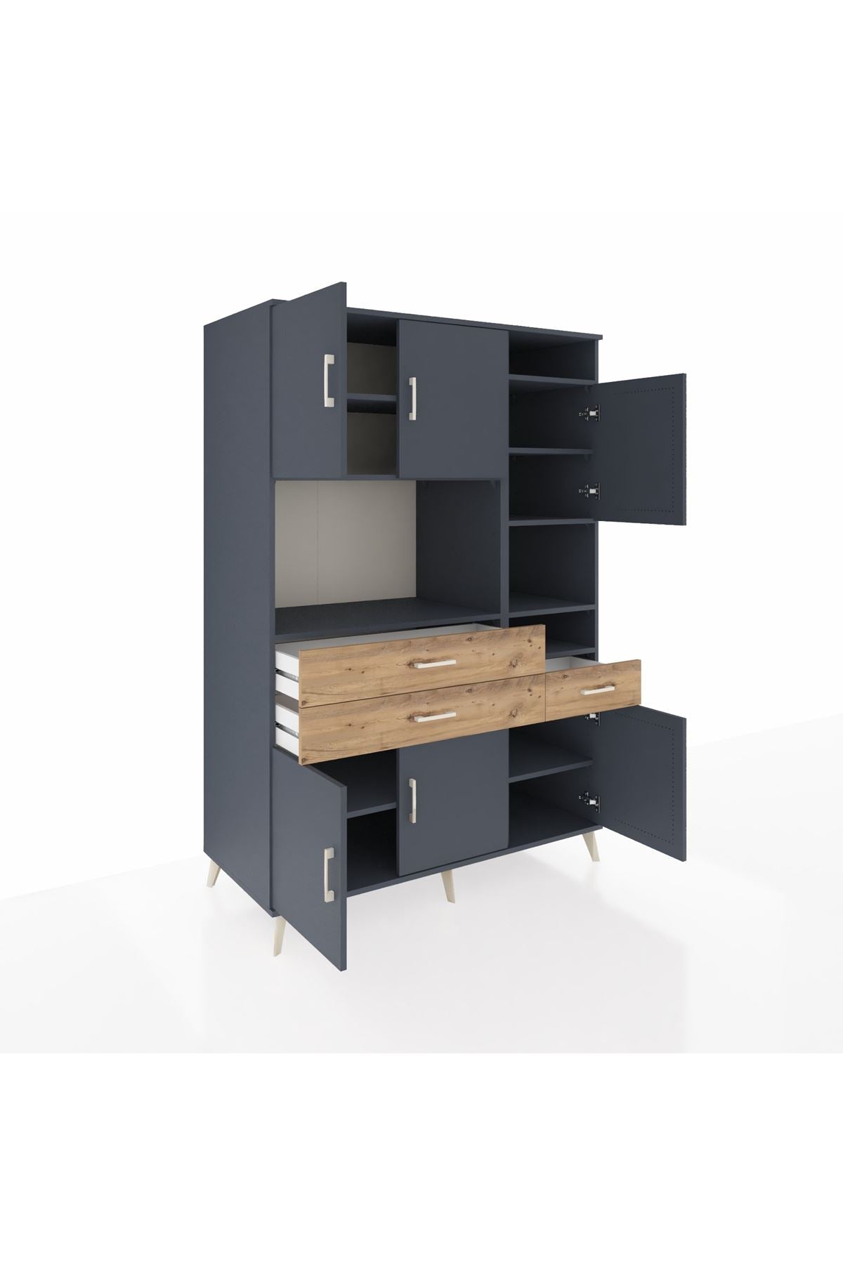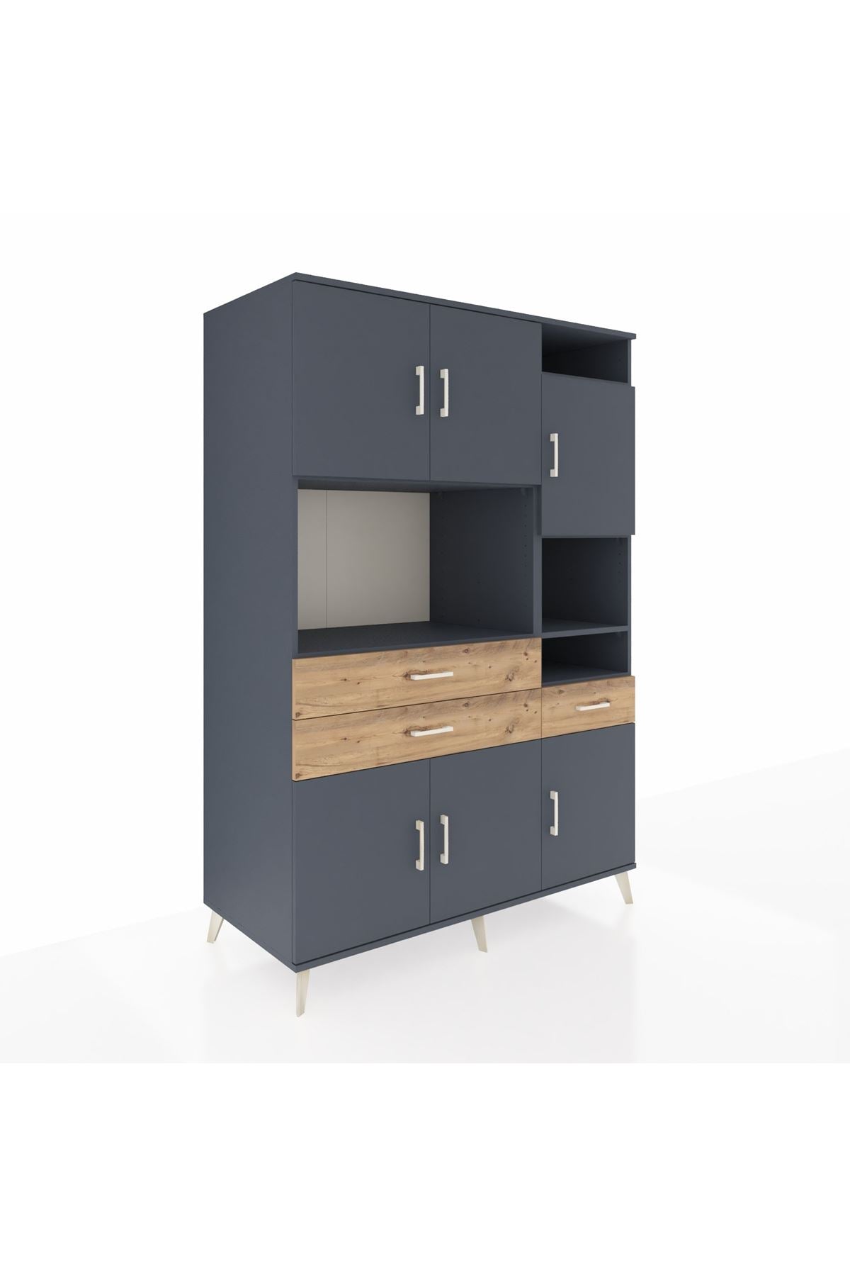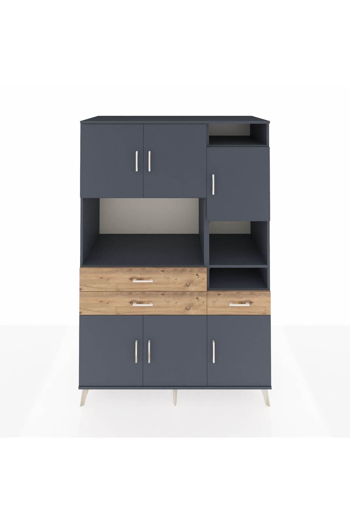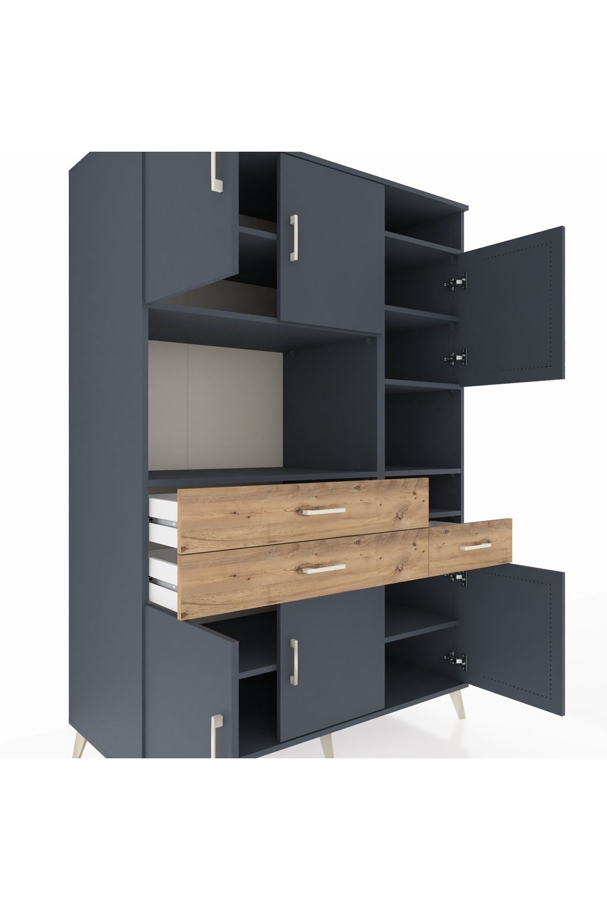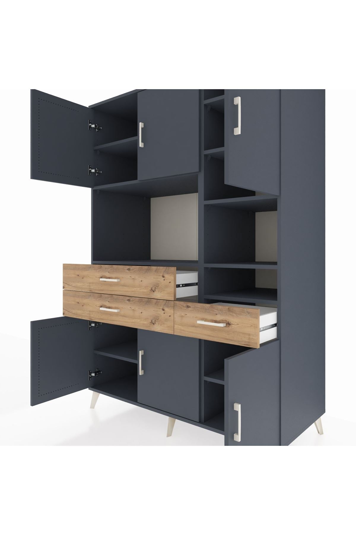 Kronos Dolap 10 Raflı 3 Çekmeceli 6 Kapaklı 132x59x195 Antrasit-Antrasit/Çam