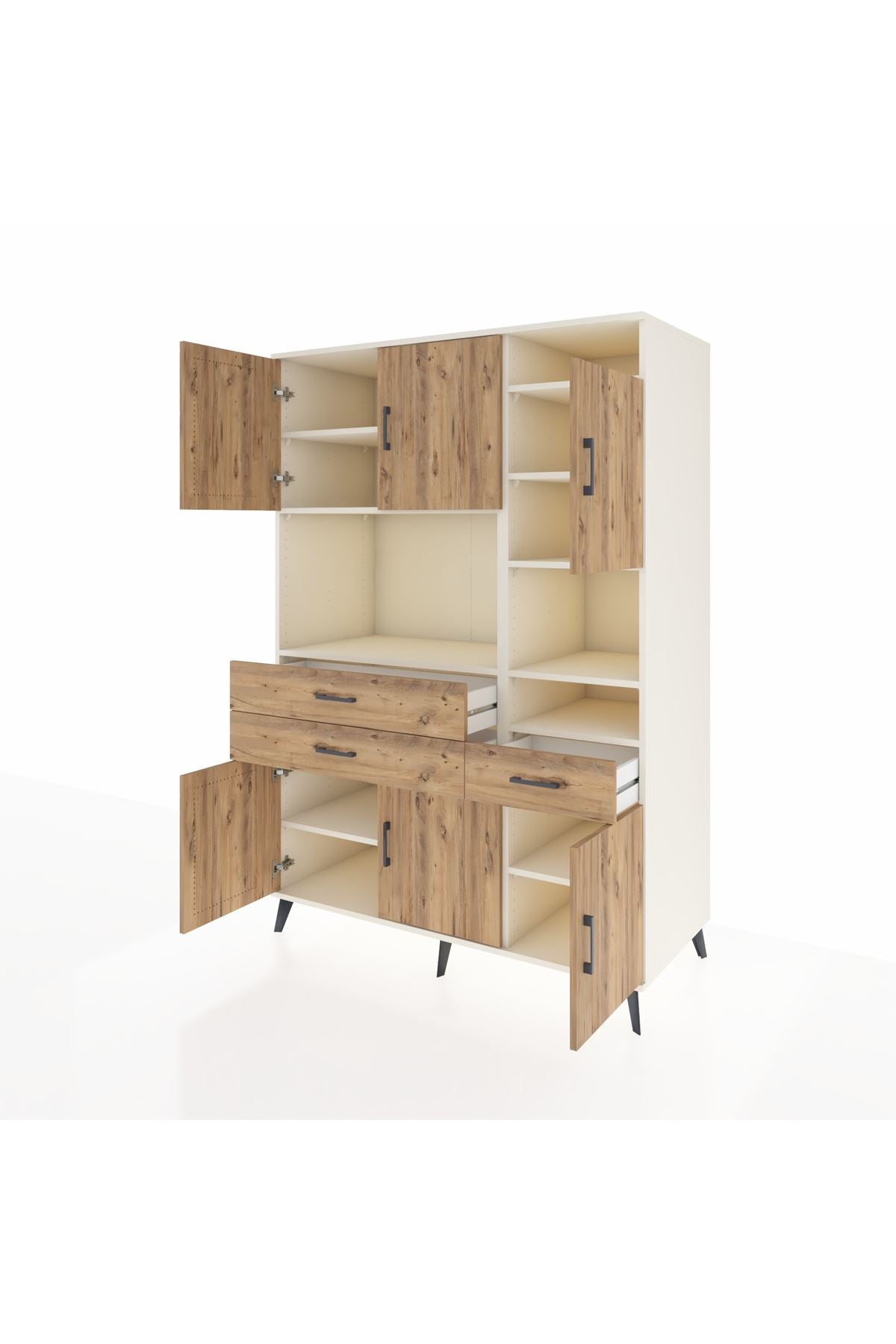 Kronos Dolap 10 Raflı 3 Çekmeceli 6 Kapaklı 132x59x195 Aytaşı-Çam/Çam