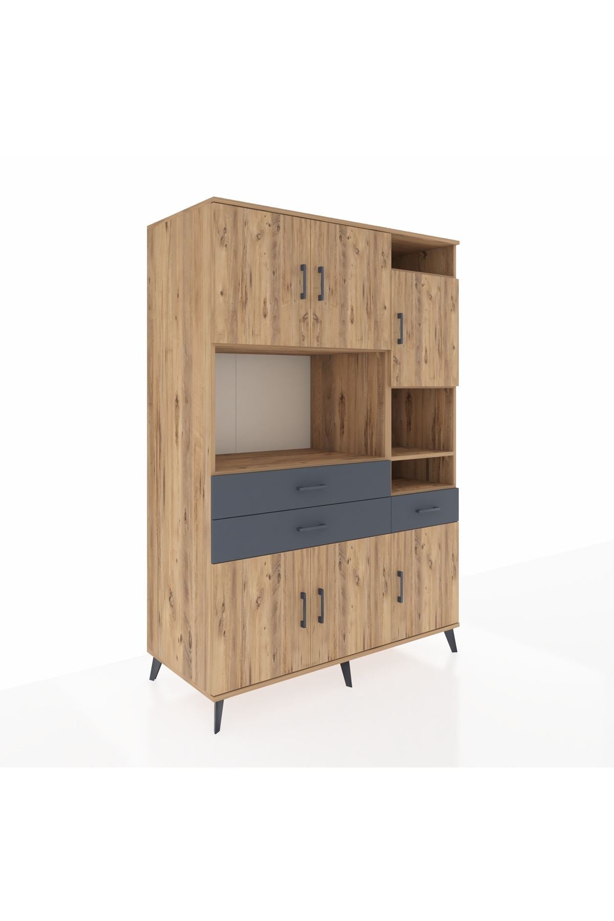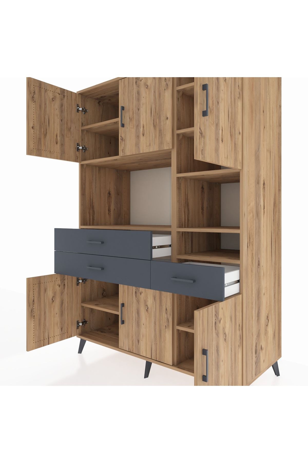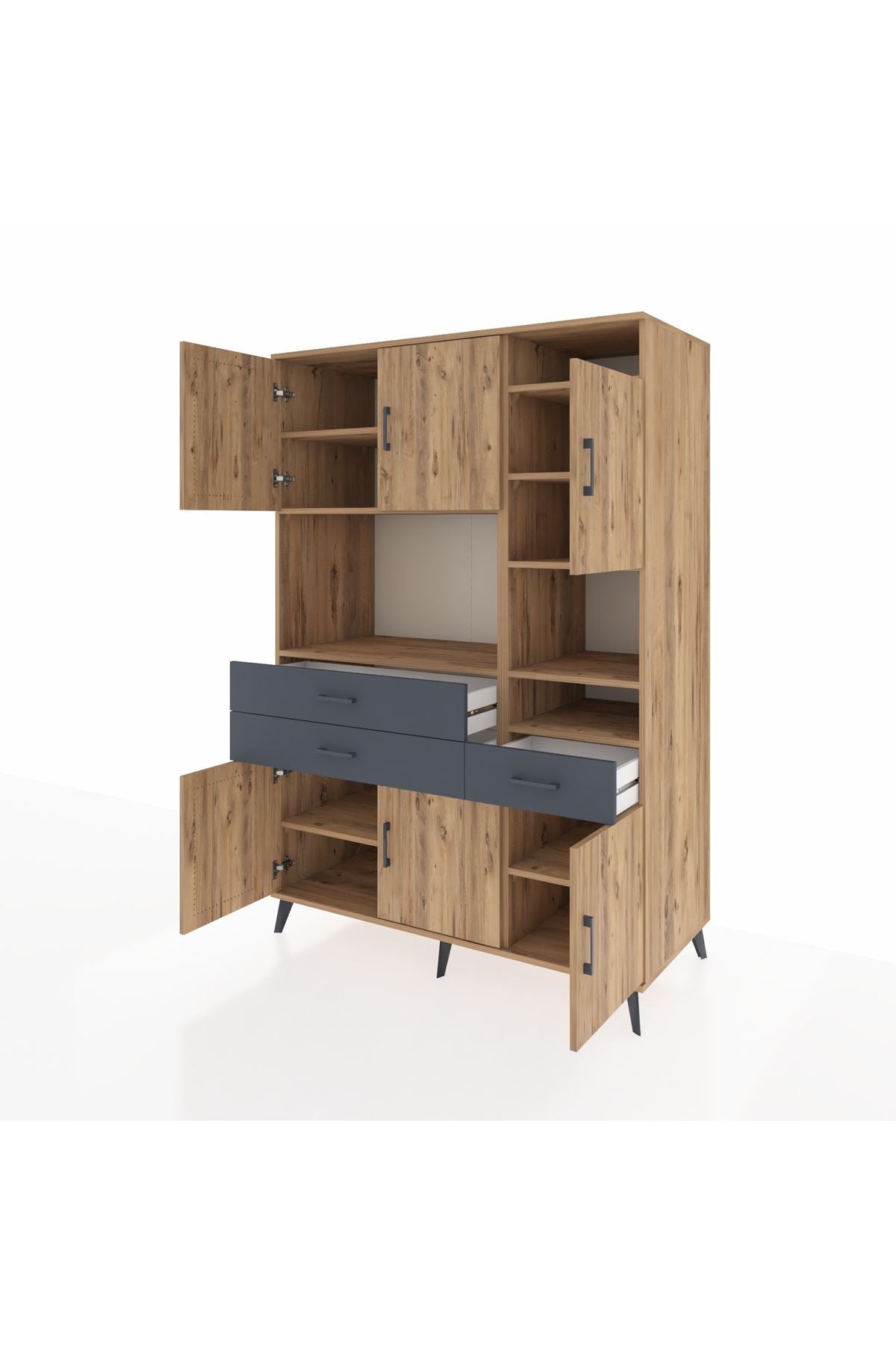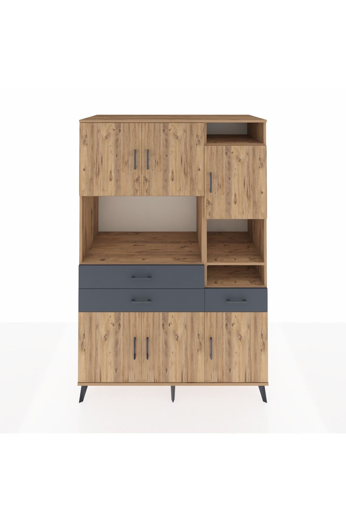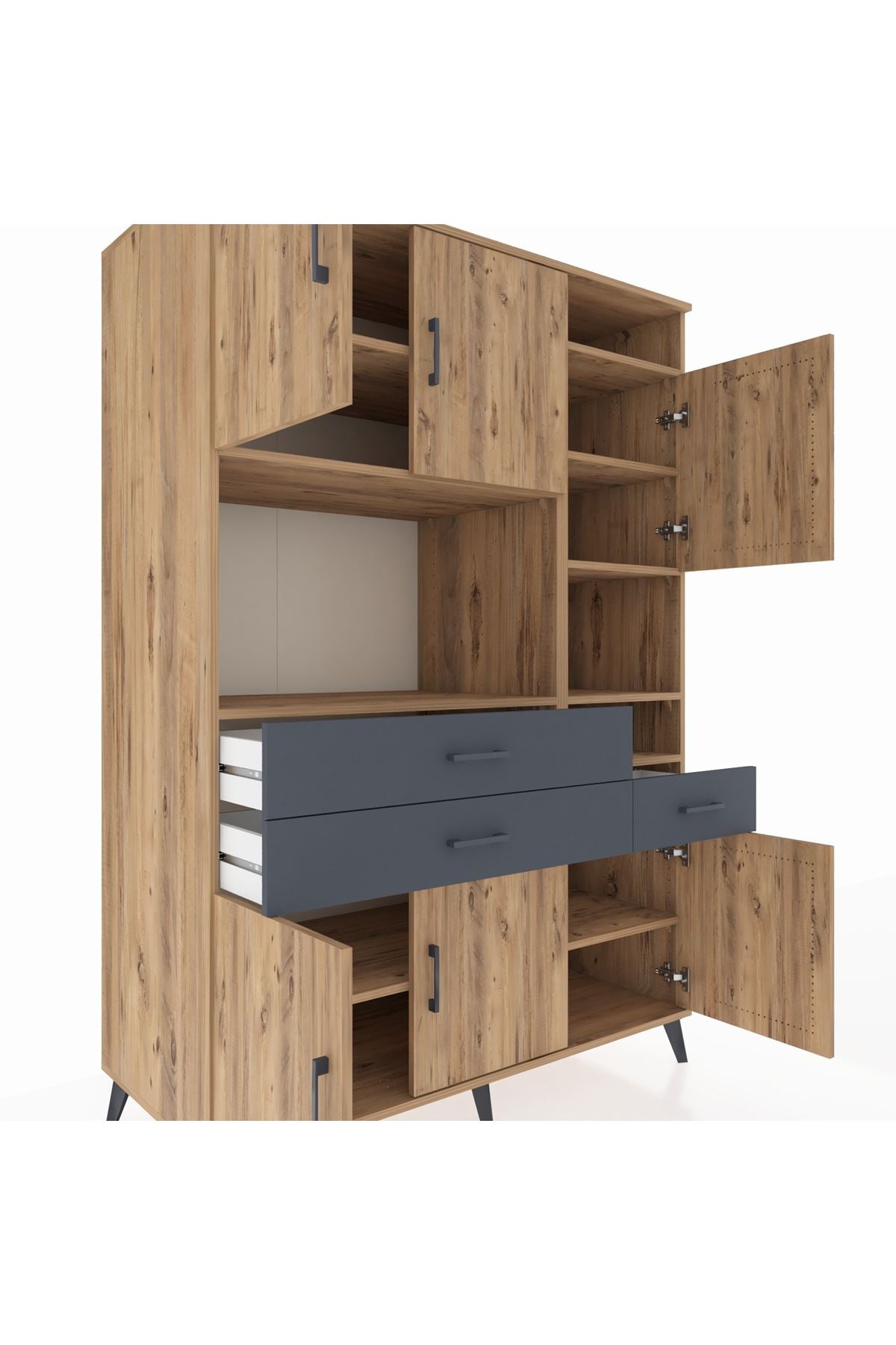 Kronos Dolap 10 Raflı 3 Çekmeceli 6 Kapaklı 132x59x195 Çam-Çam/Antrasit