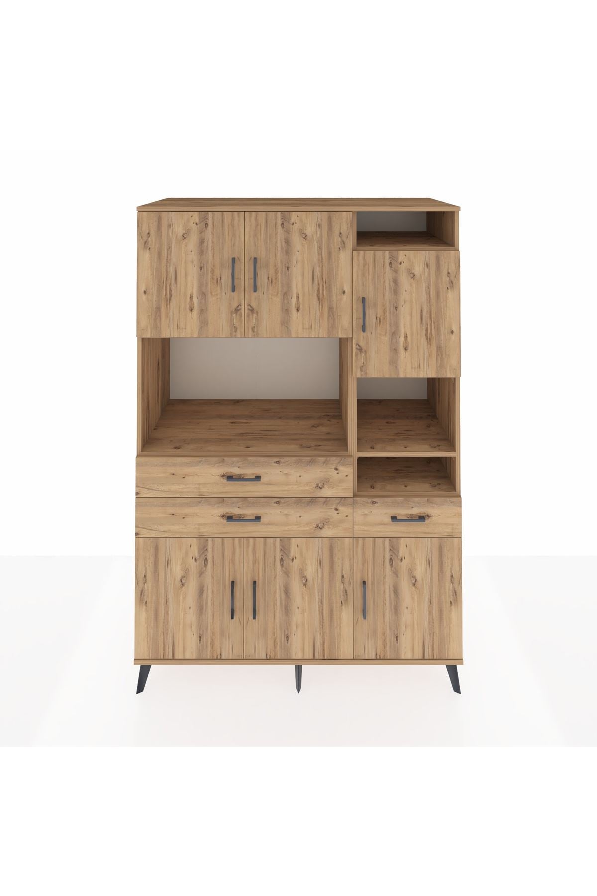 Kronos Dolap 10 Raflı 3 Çekmeceli 6 Kapaklı 132x59x195 Çam-Çam/Çam