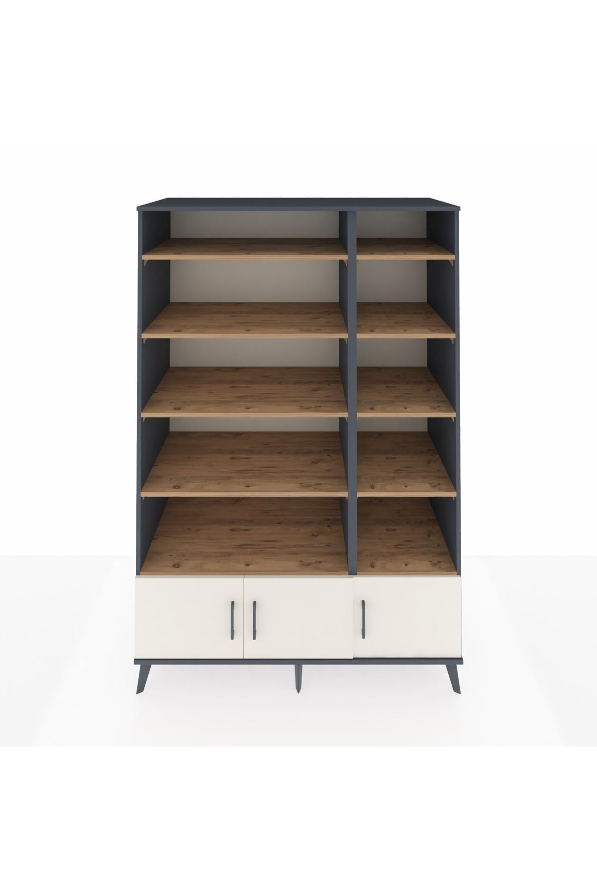 Kronos Dolap 10 Raflı 3 Kapaklı 132x59x195 Antrasit-Aytaşı/Çam