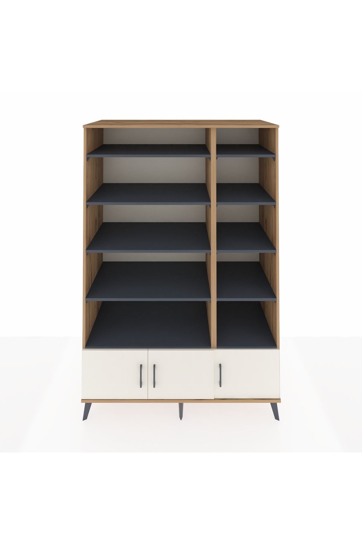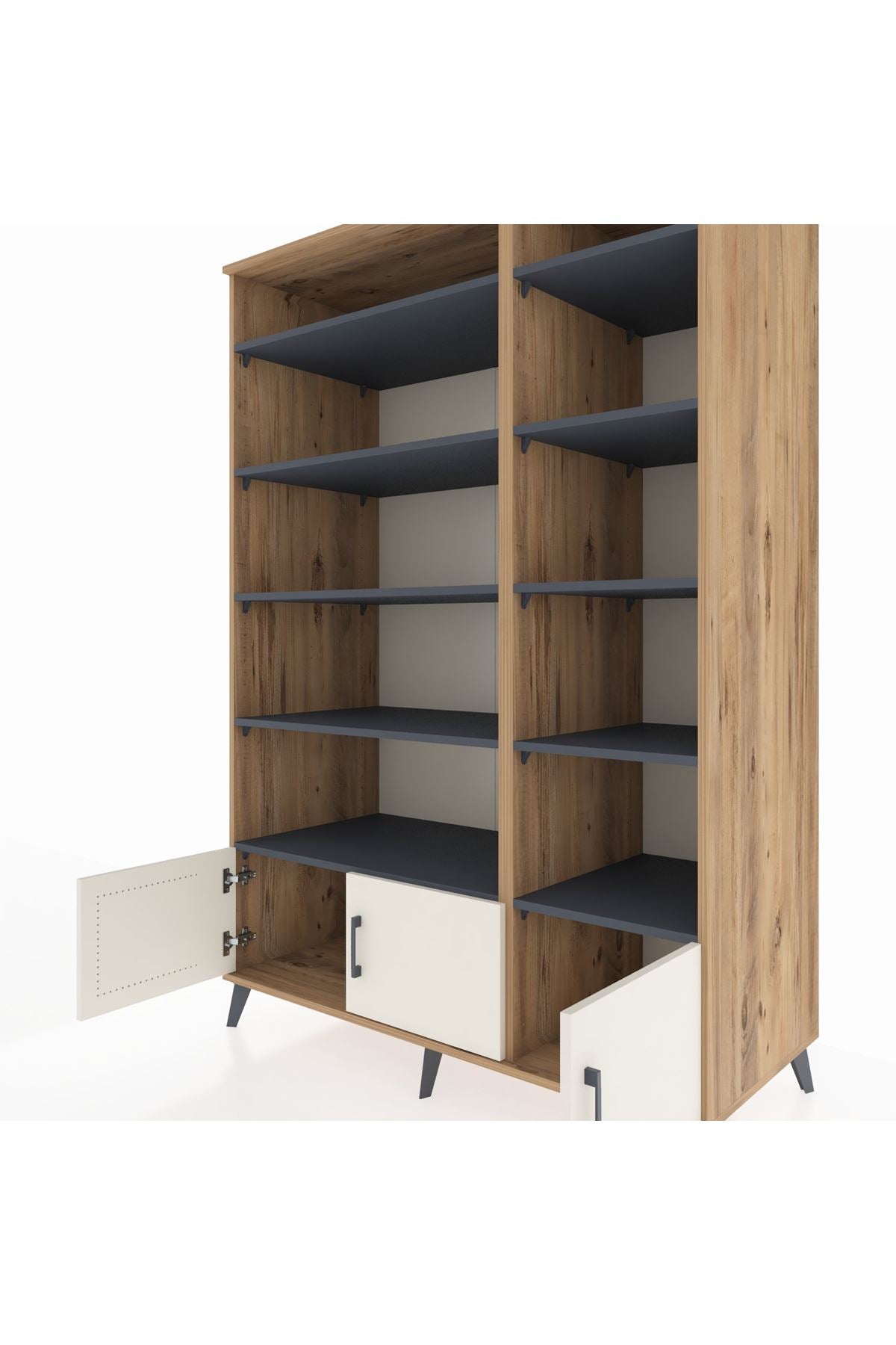 Kronos Dolap 10 Raflı 3 Kapaklı 132x59x195 Çam-Aytaşı/Antrasit