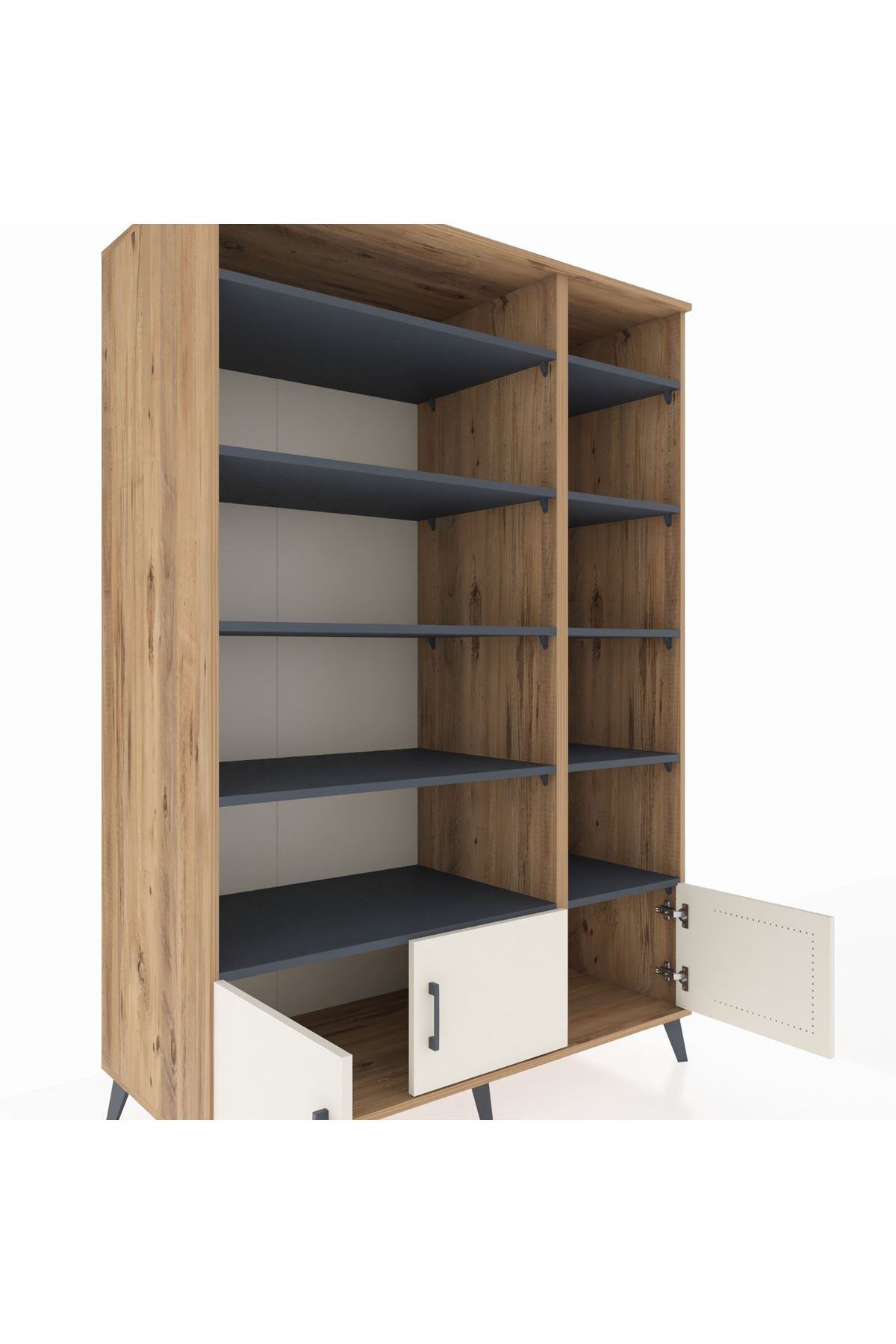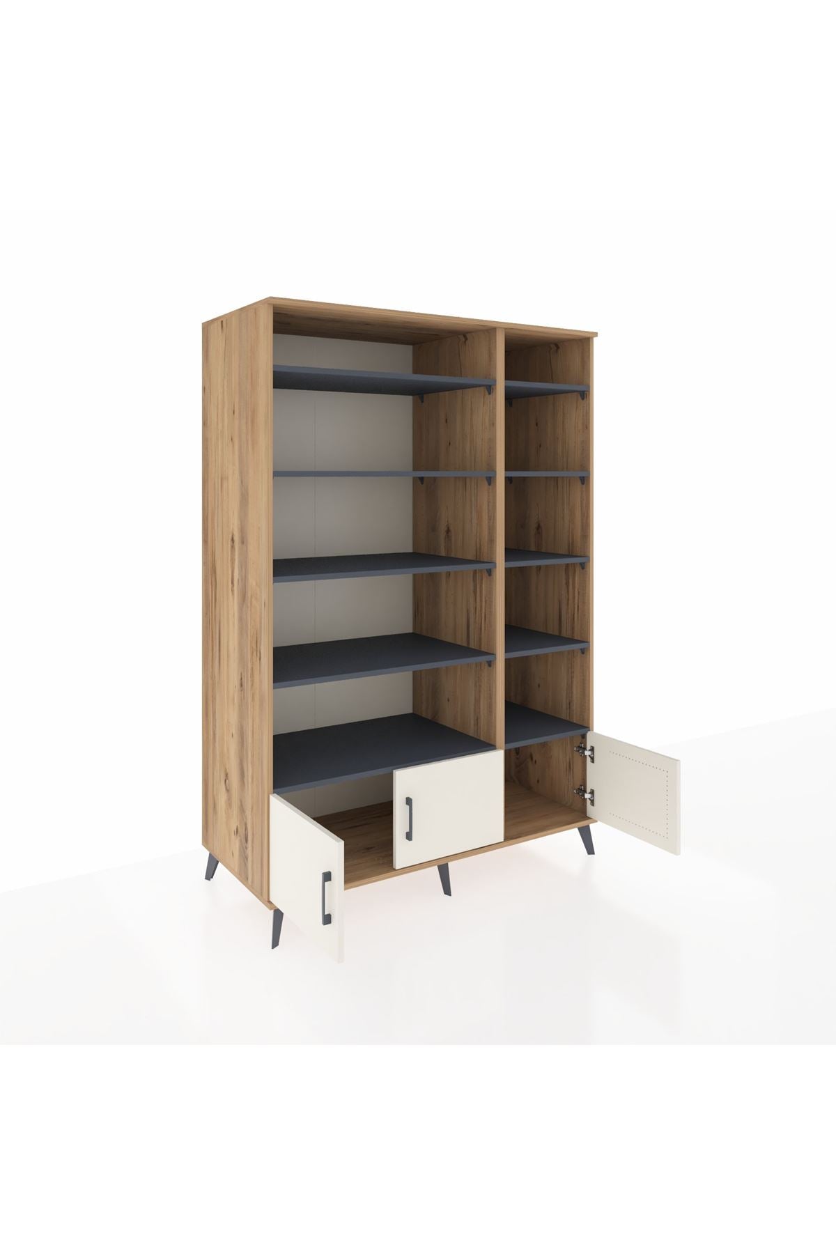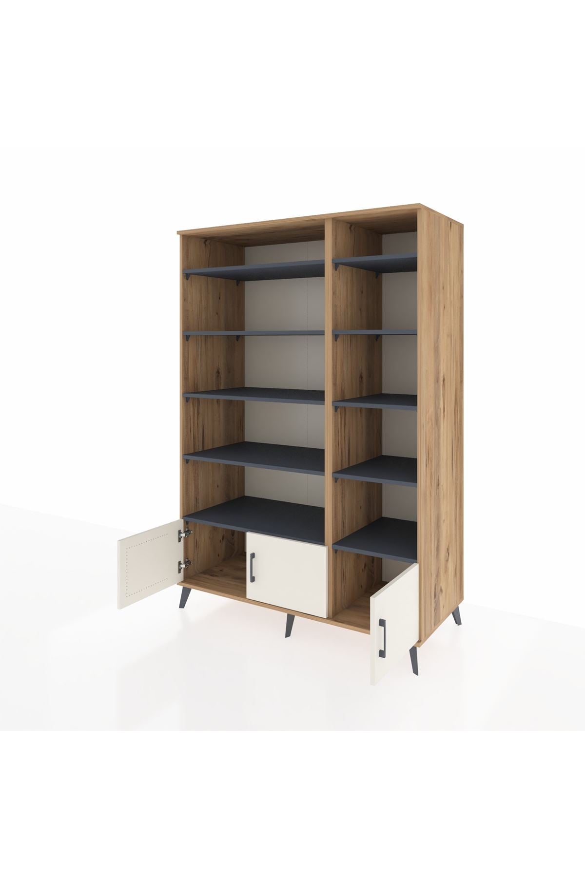 • 👶 Genç odası dolabı: Genişliği ve yüksekliğiyle genç odalarında kitap ve kıyafet düzeni sağlar.