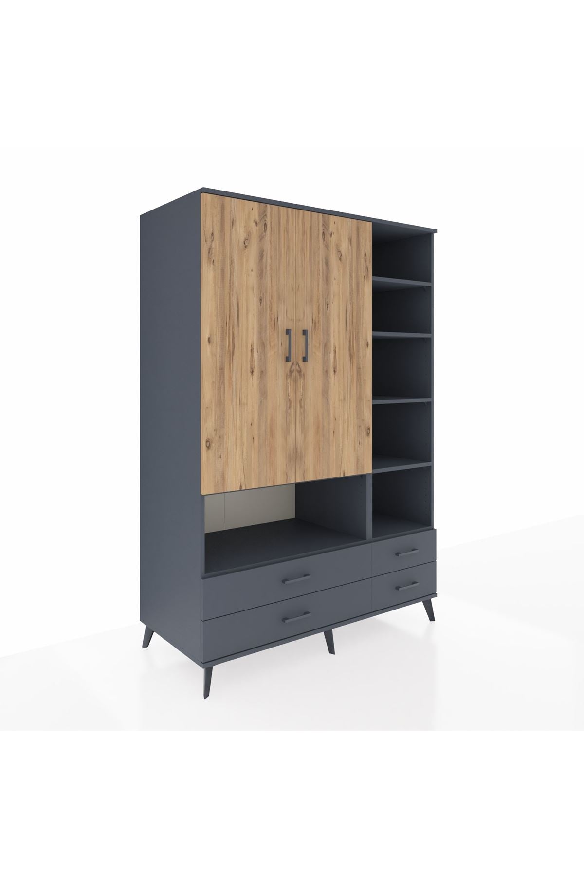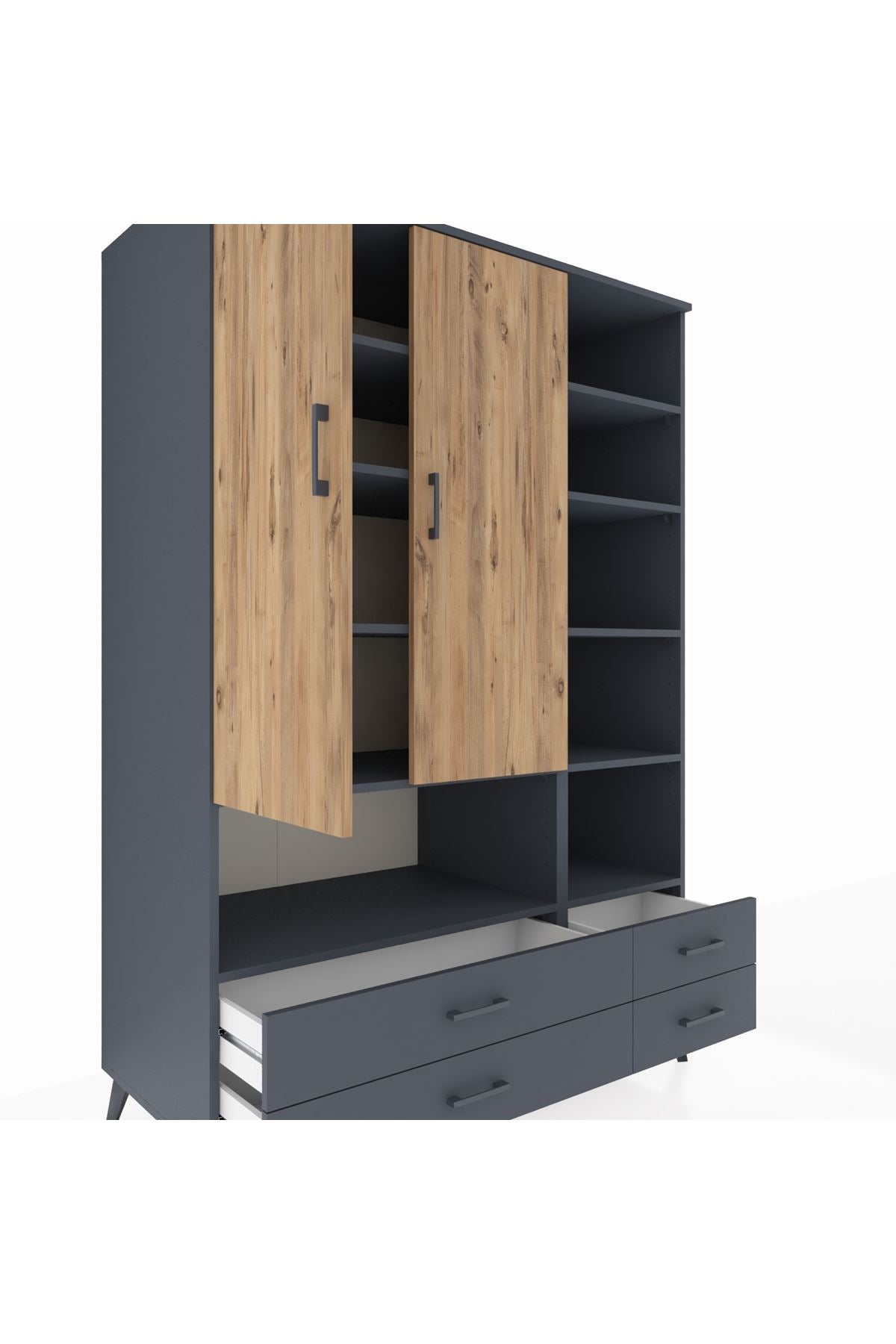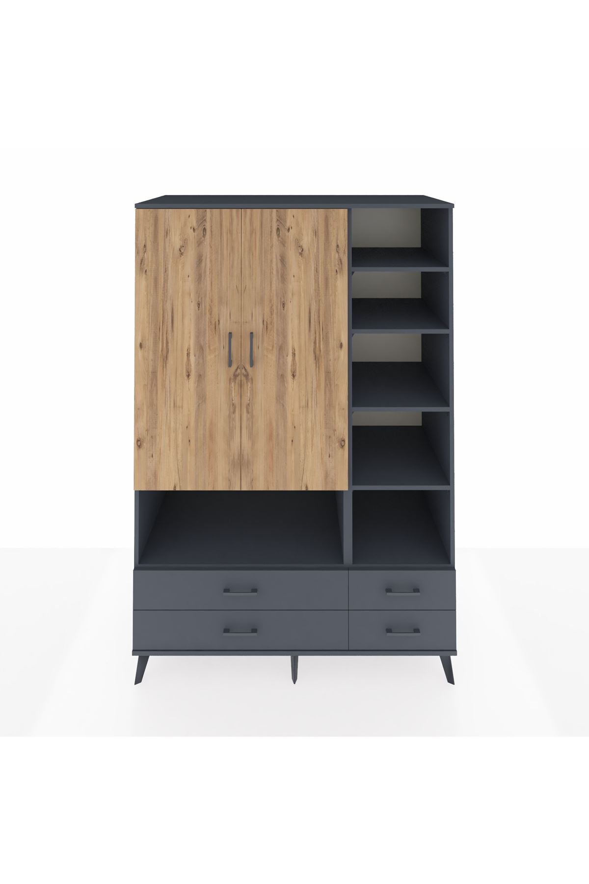 Kronos Dolap 10 Raflı 4 Çekmeceli 2 Kapaklı 132x59x195 Antrasit-Çam/Antrasit