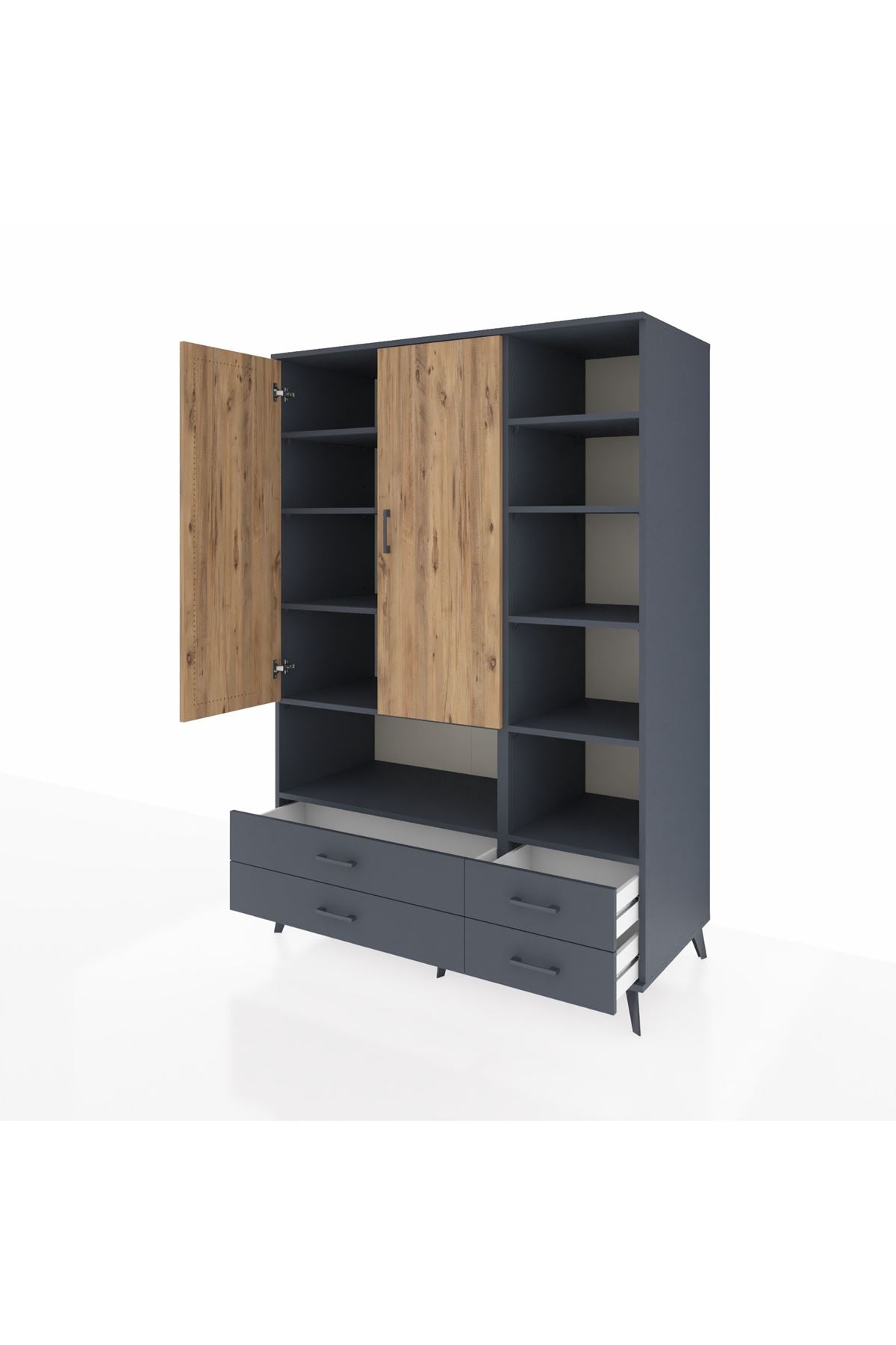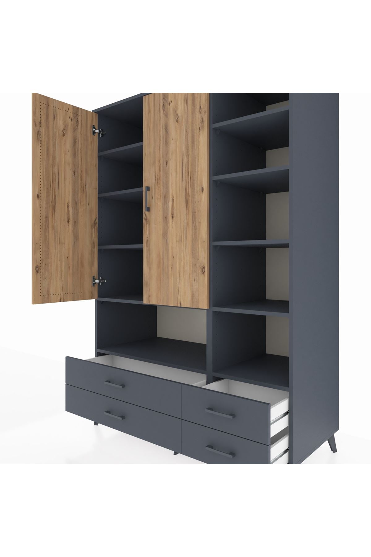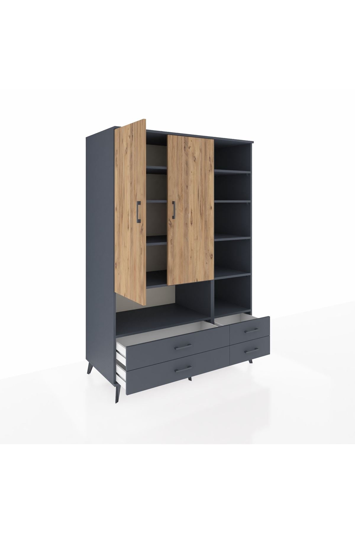Kronos Dolap 10 Raflı 4 Çekmeceli 2 Kapaklı 132x59x195 Antrasit-Çam/Antrasit