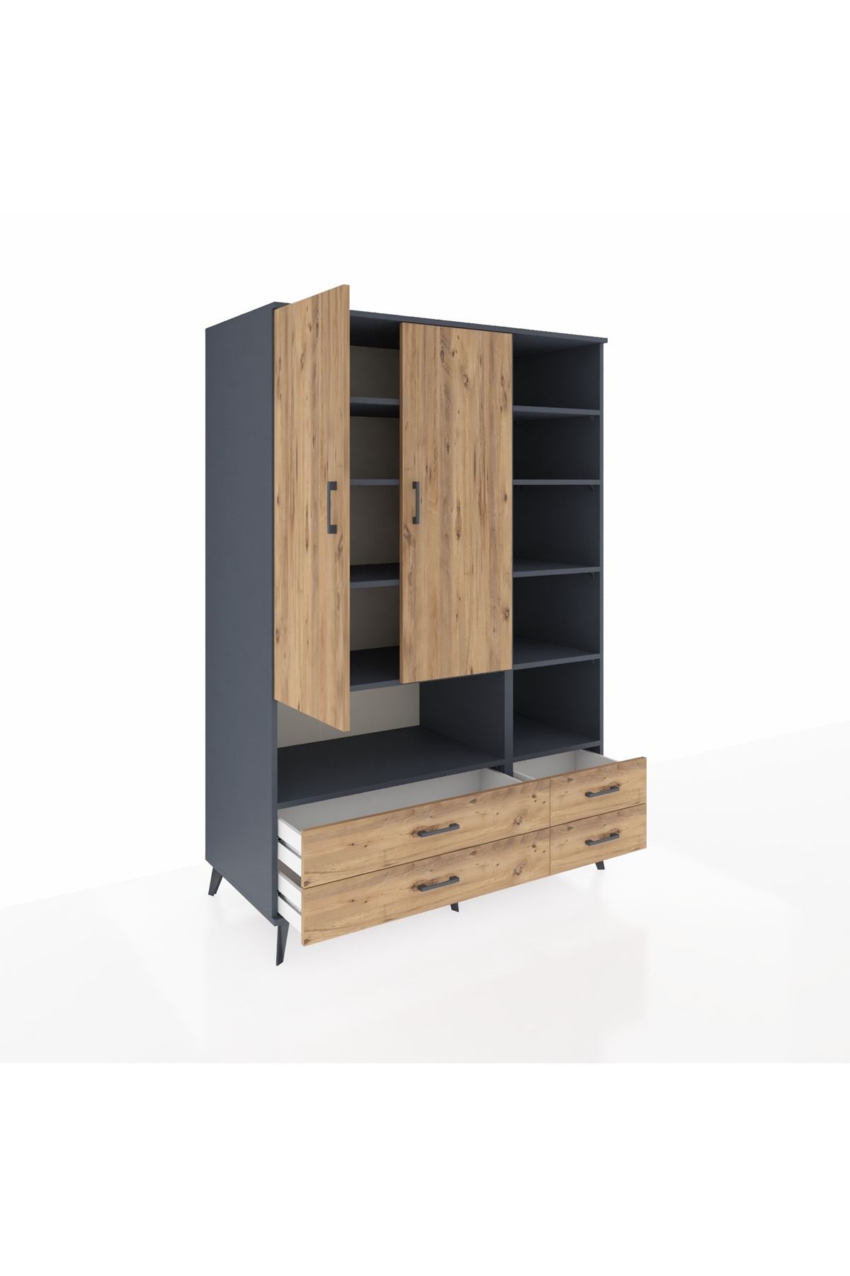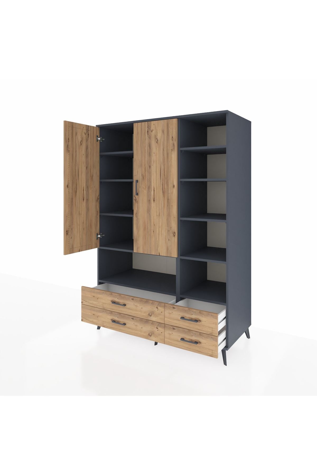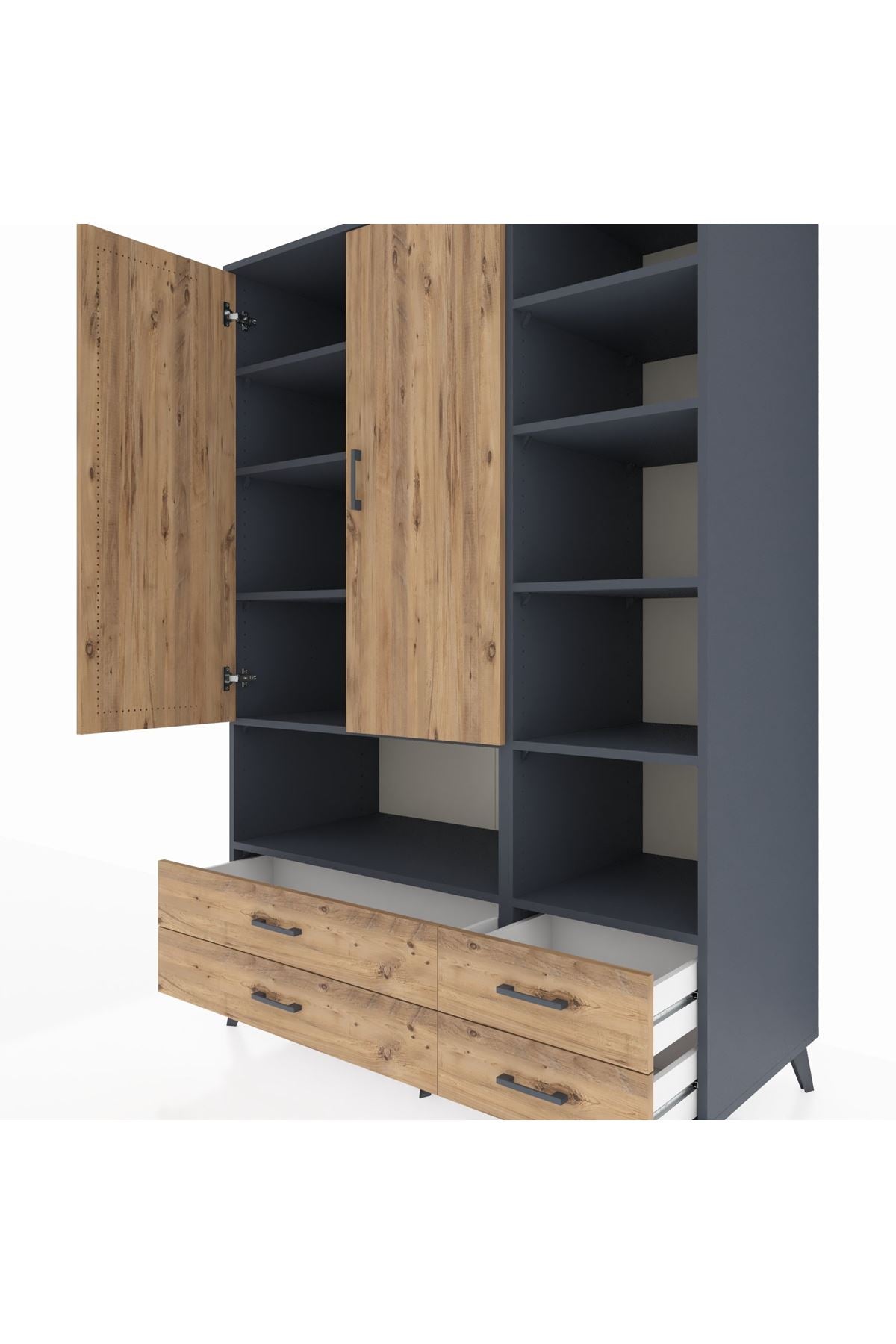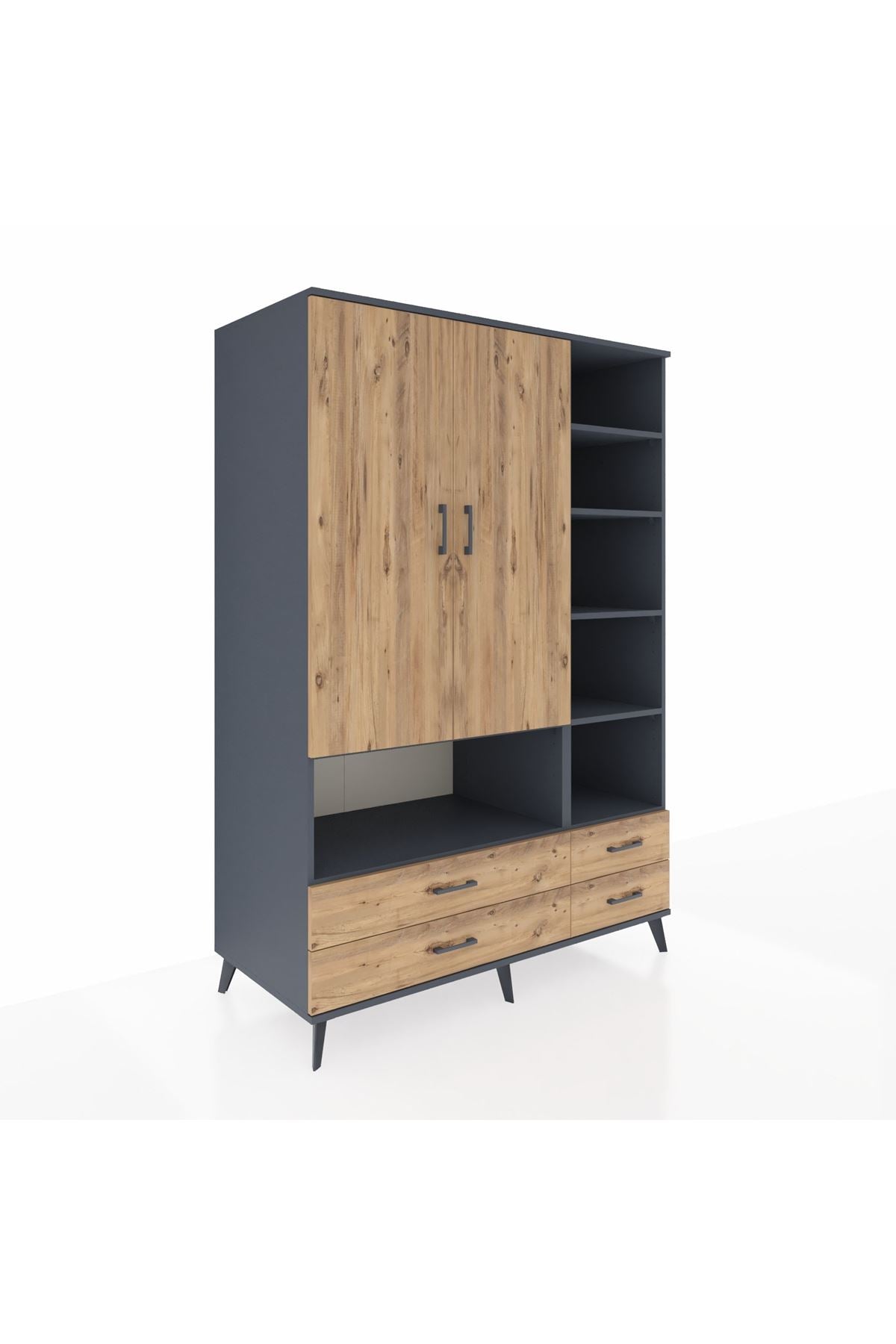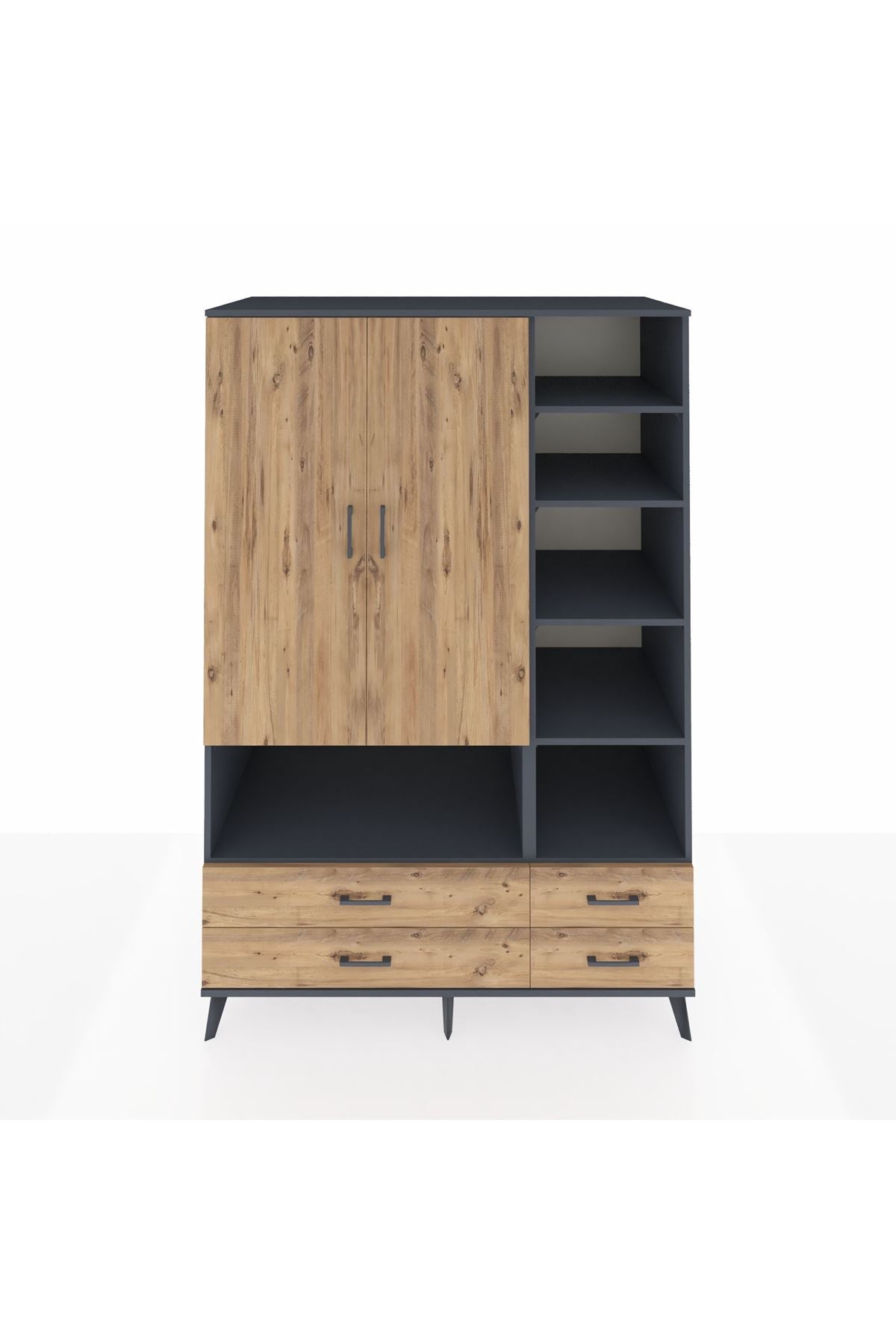 Kronos Dolap 10 Raflı 4 Çekmeceli 2 Kapaklı 132x59x195 Antrasit-Çam/Çam