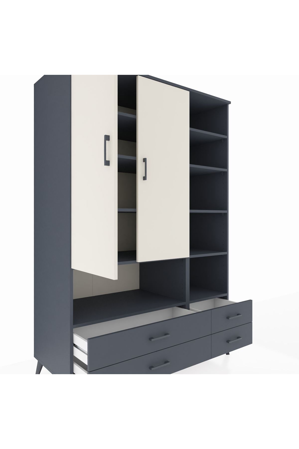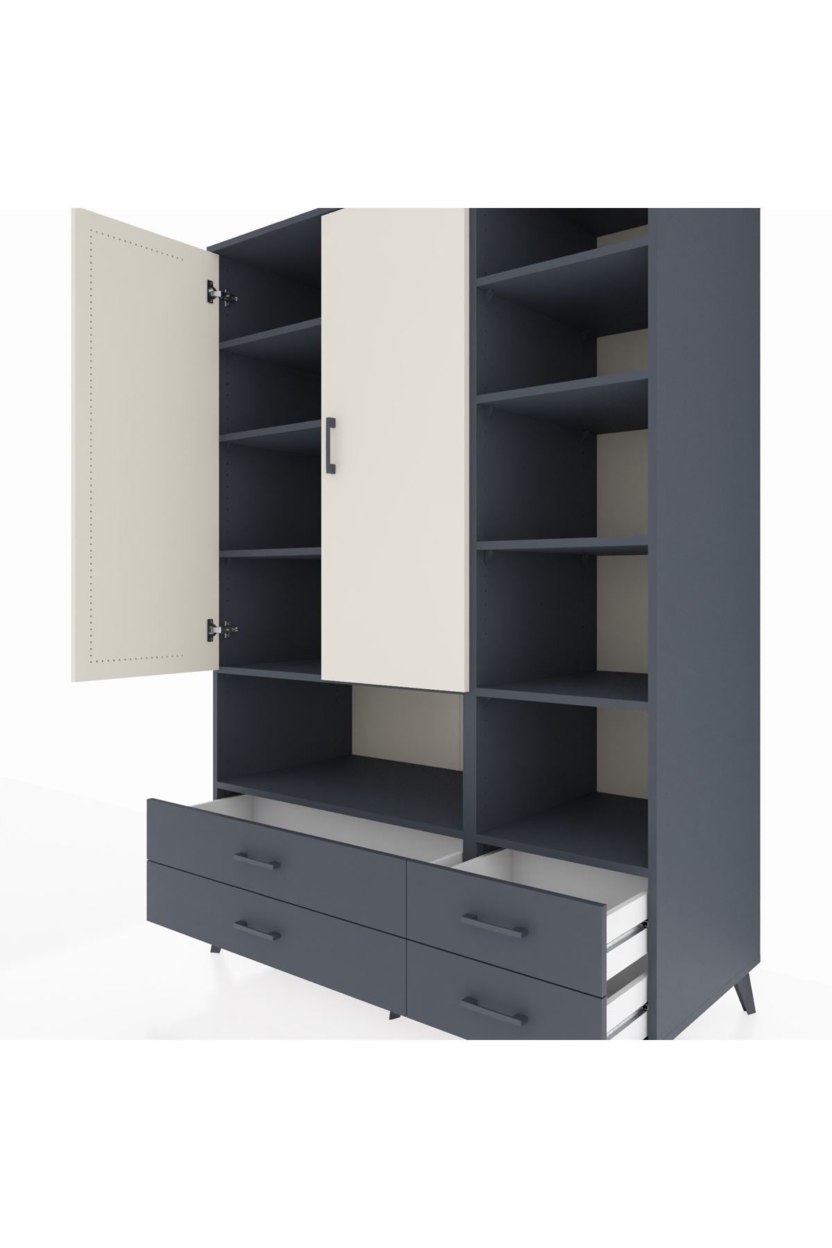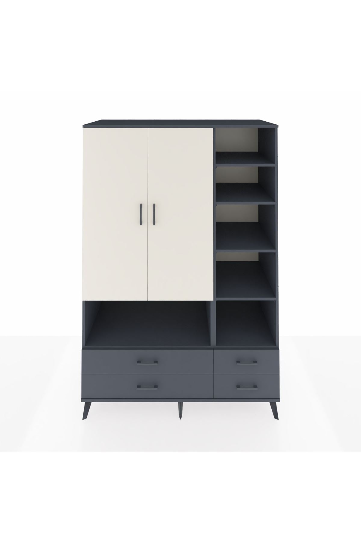Kronos Dolap 10 Raflı 4 Çekmeceli 2 Kapaklı 132x59x195 Antrasit-Aytaşı/Antrasit