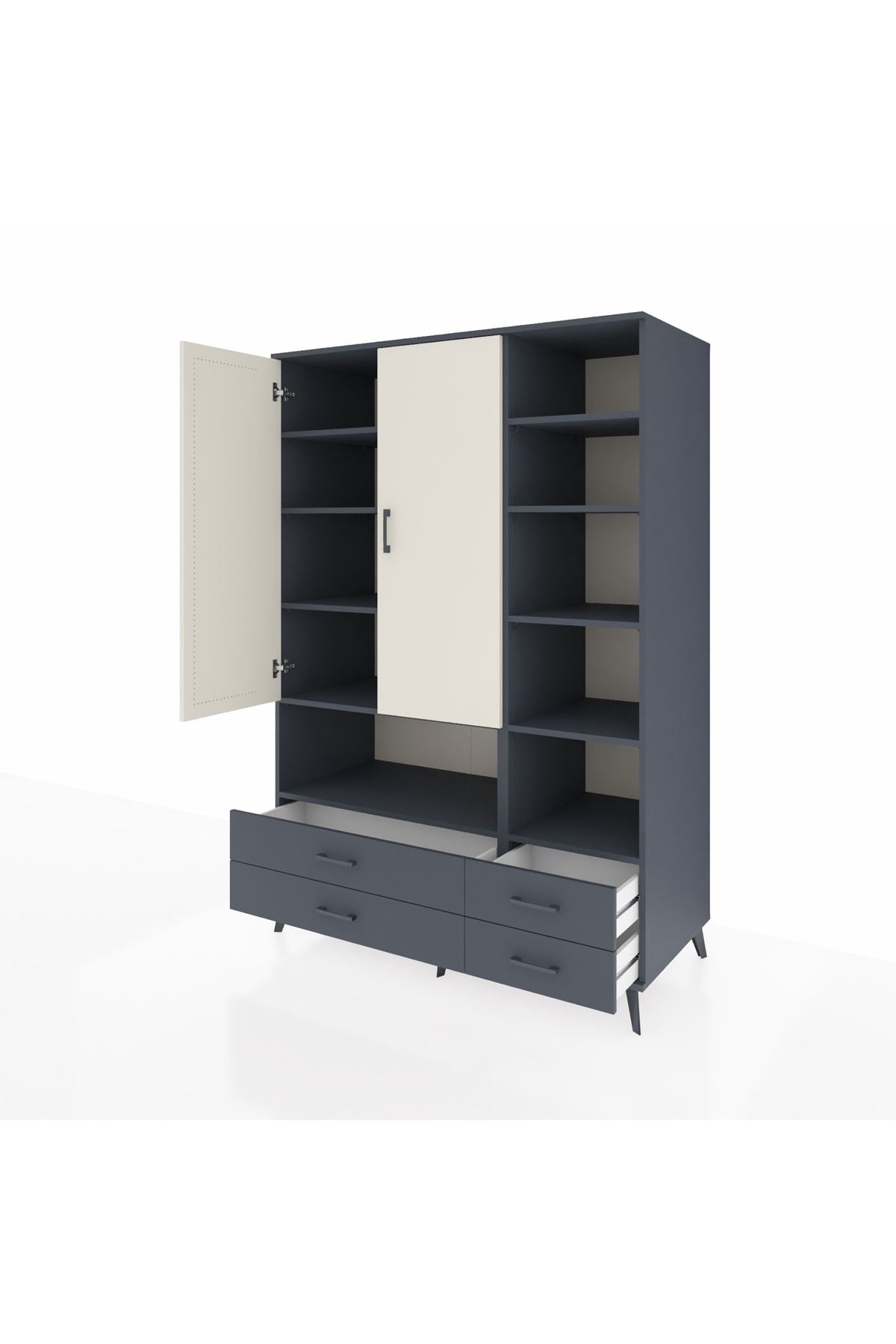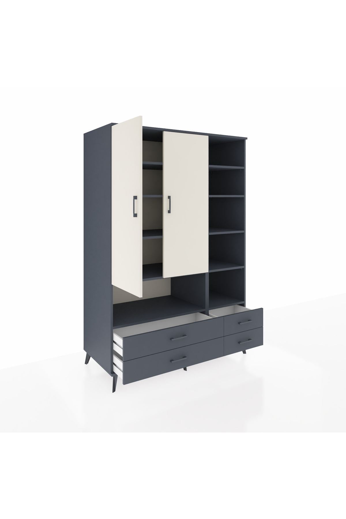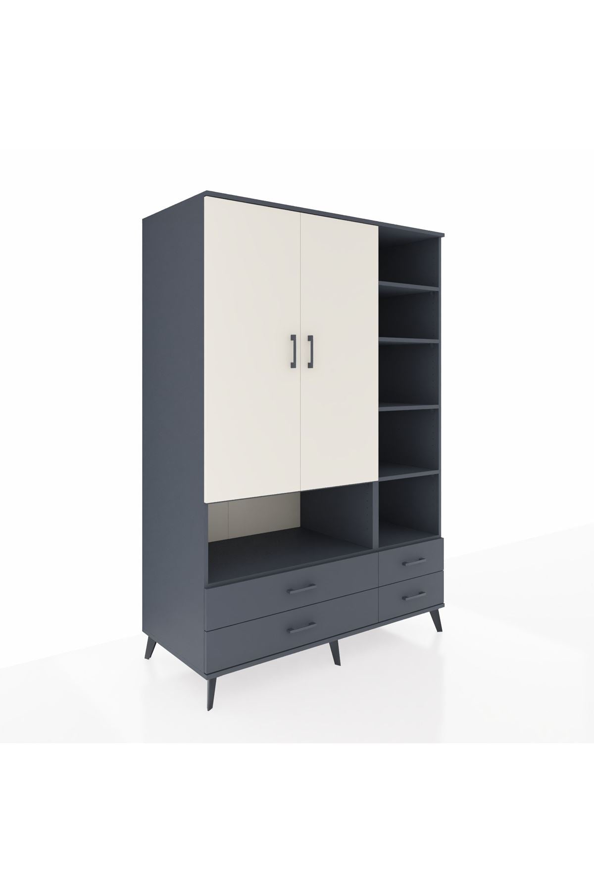 Kronos Dolap 10 Raflı 4 Çekmeceli 2 Kapaklı 132x59x195 Antrasit-Aytaşı/Antrasit