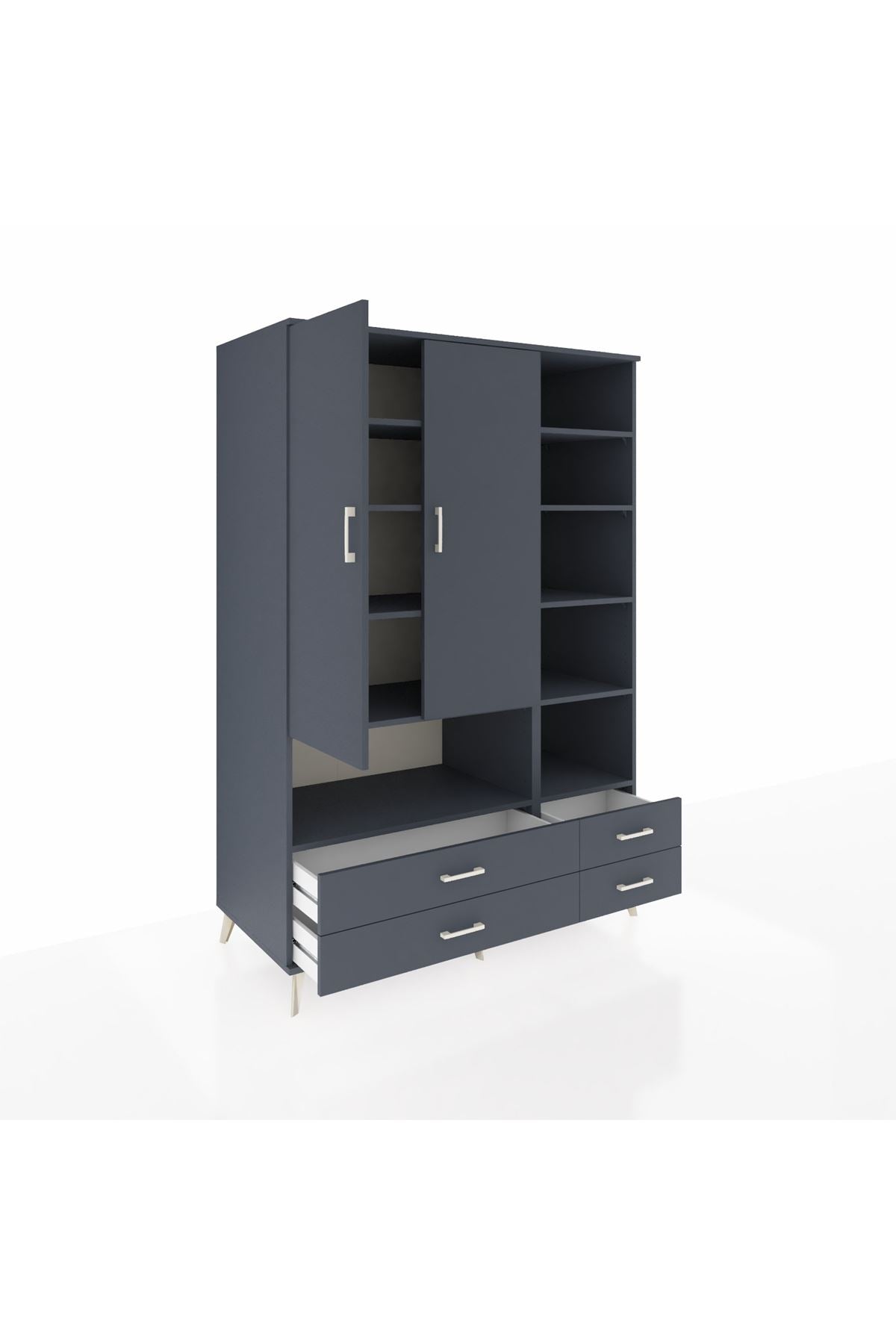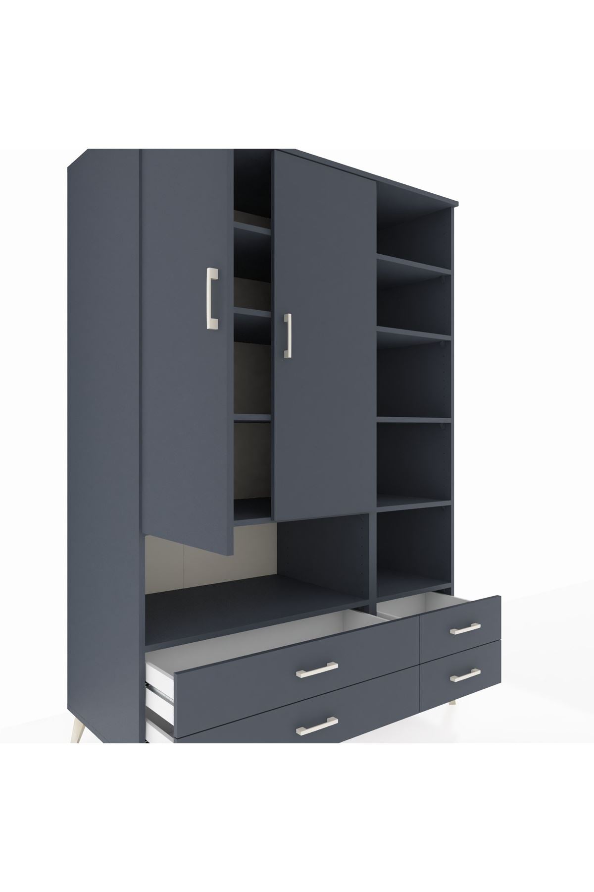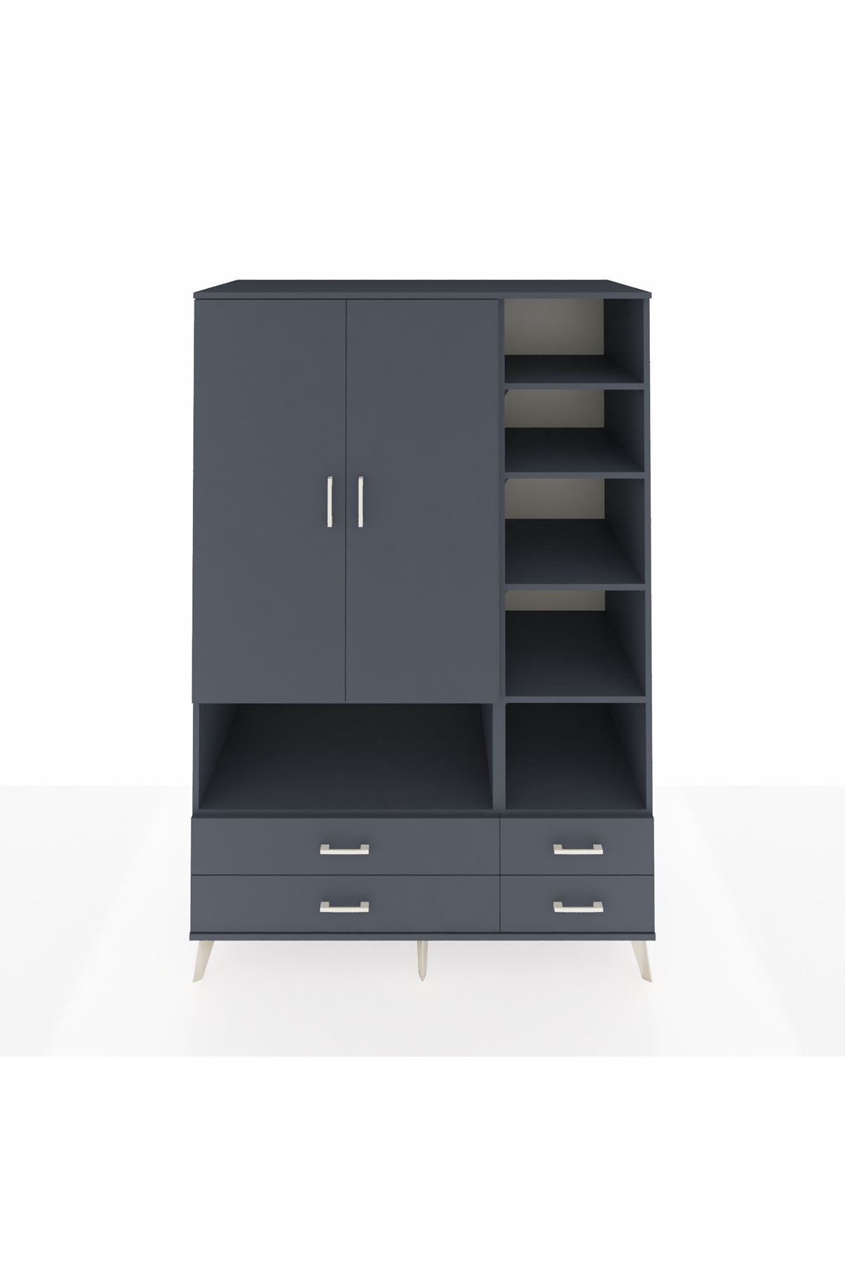Kronos Dolap 10 Raflı 4 Çekmeceli 2 Kapaklı 132x59x195 Antrasit-Antrasit/Antrasit