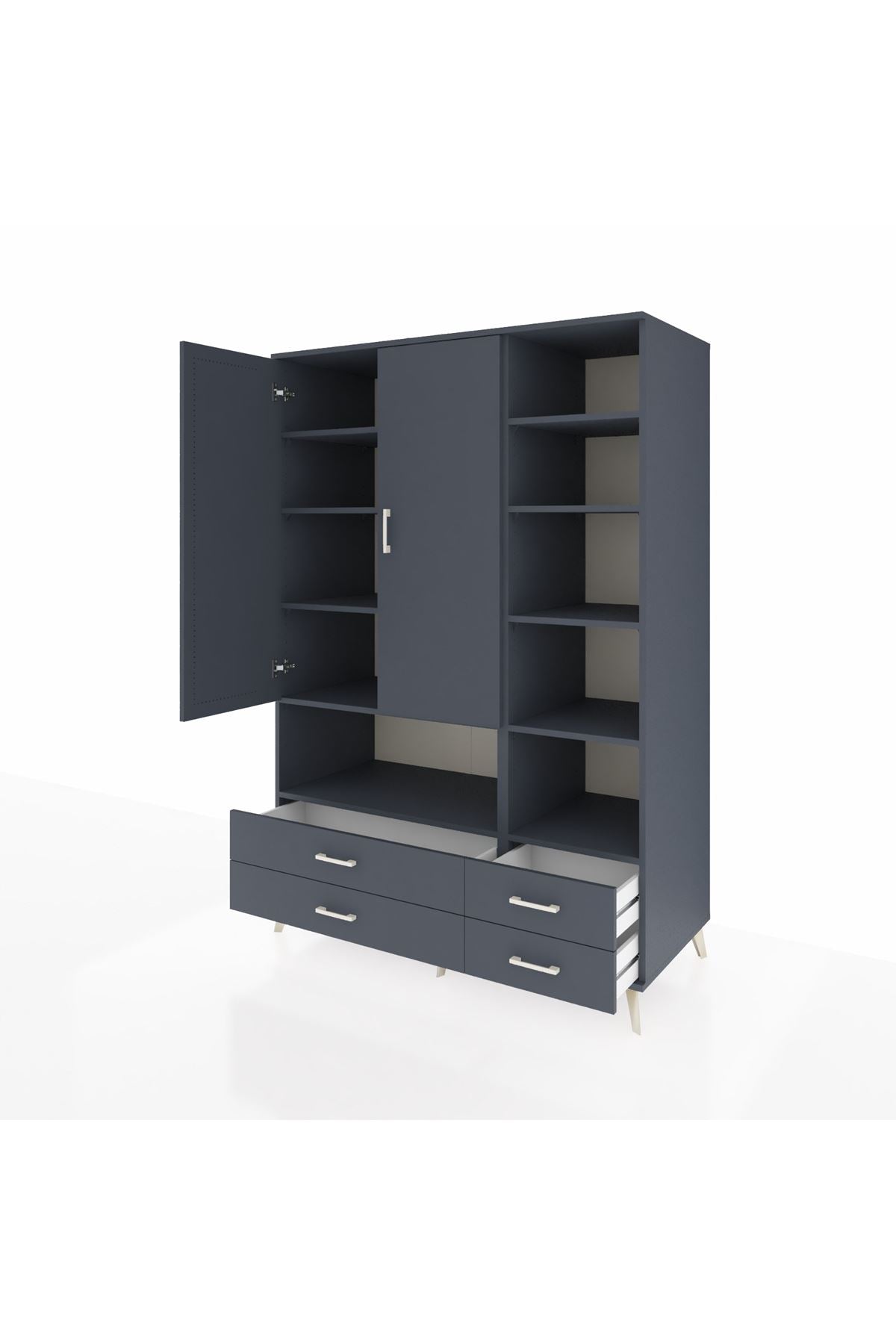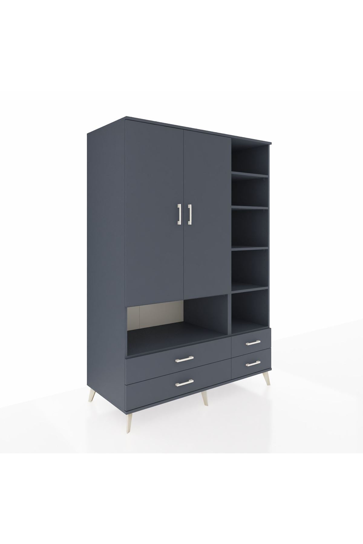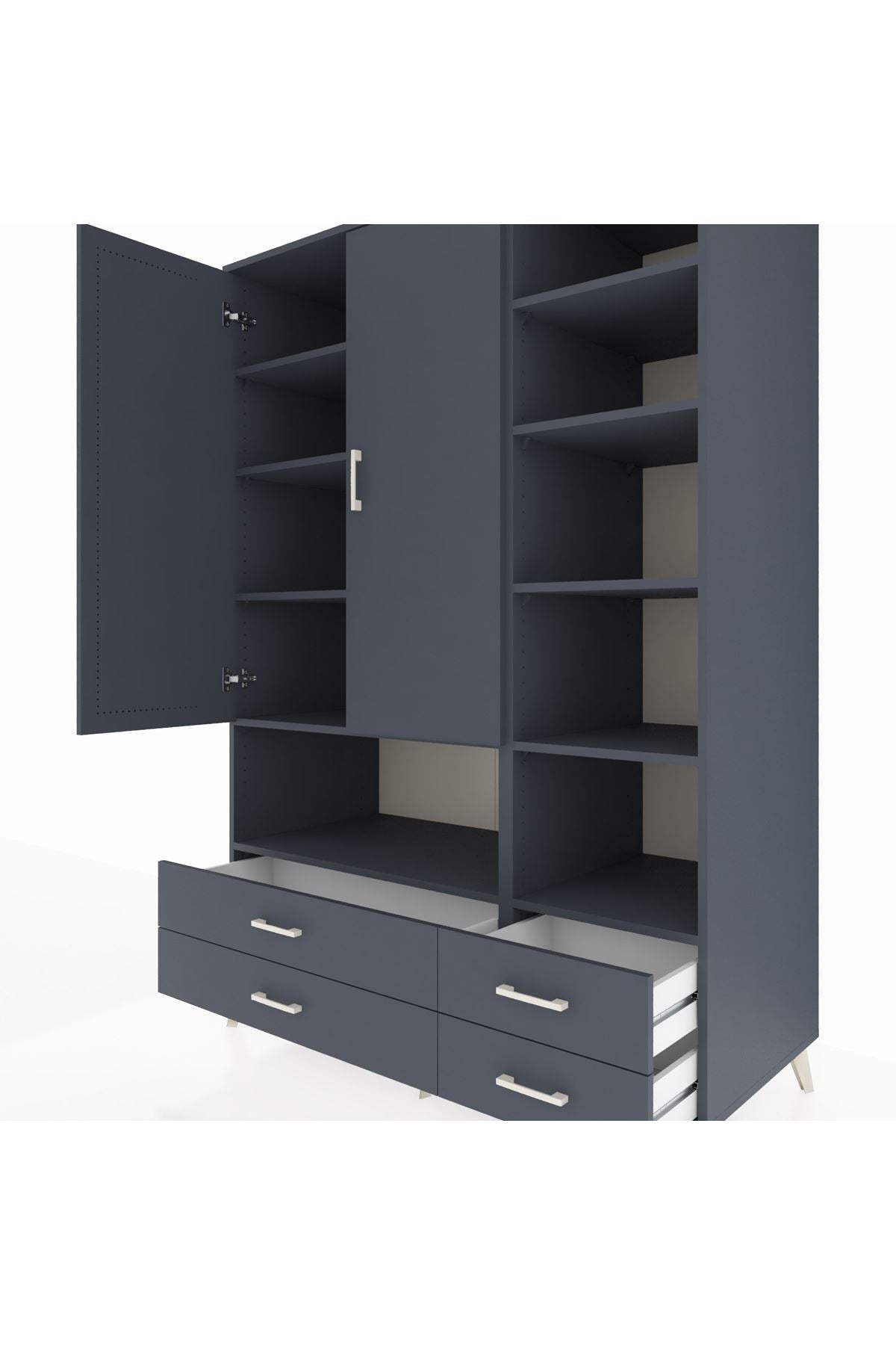 Kronos Dolap 10 Raflı 4 Çekmeceli 2 Kapaklı 132x59x195 Antrasit-Antrasit/Antrasit