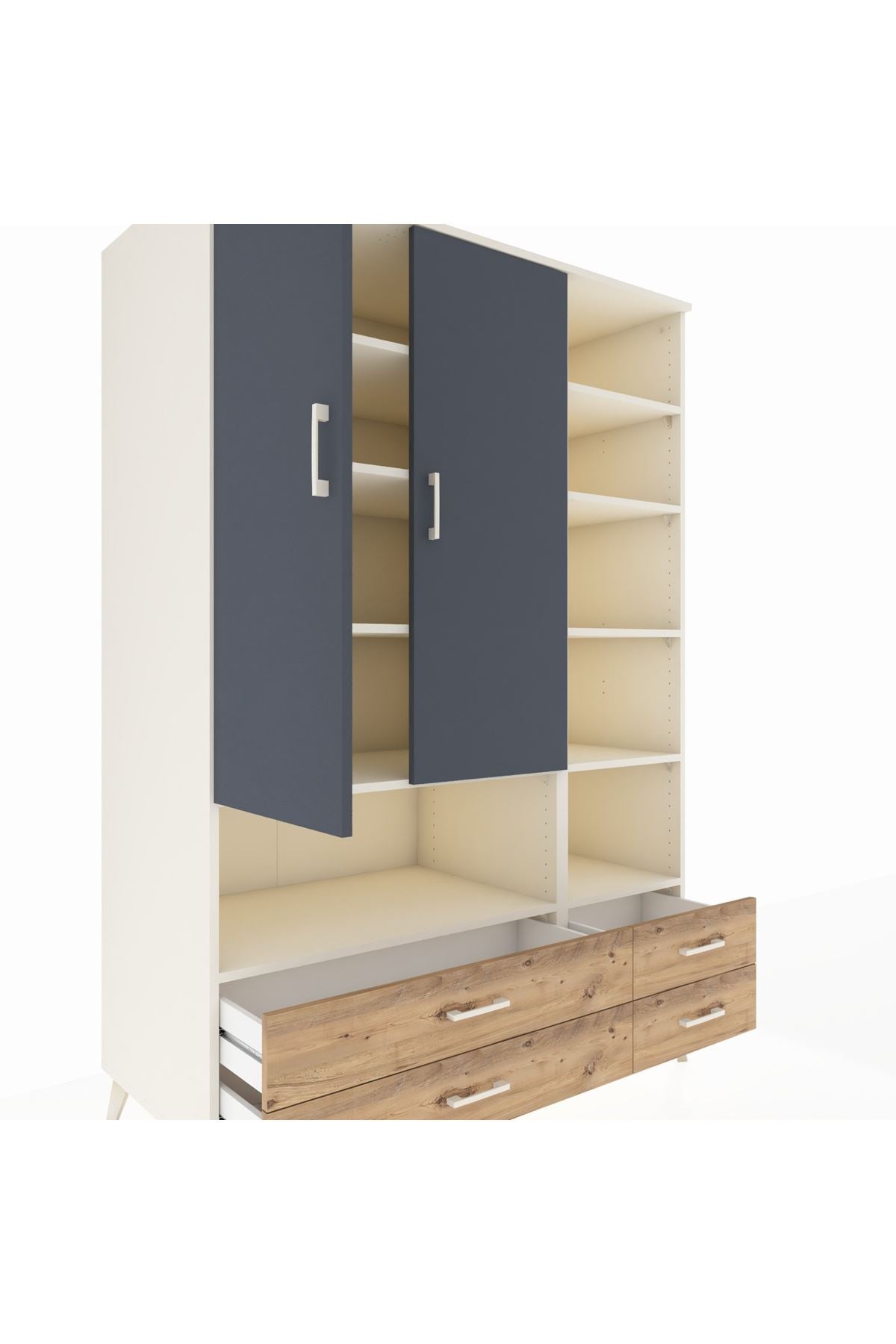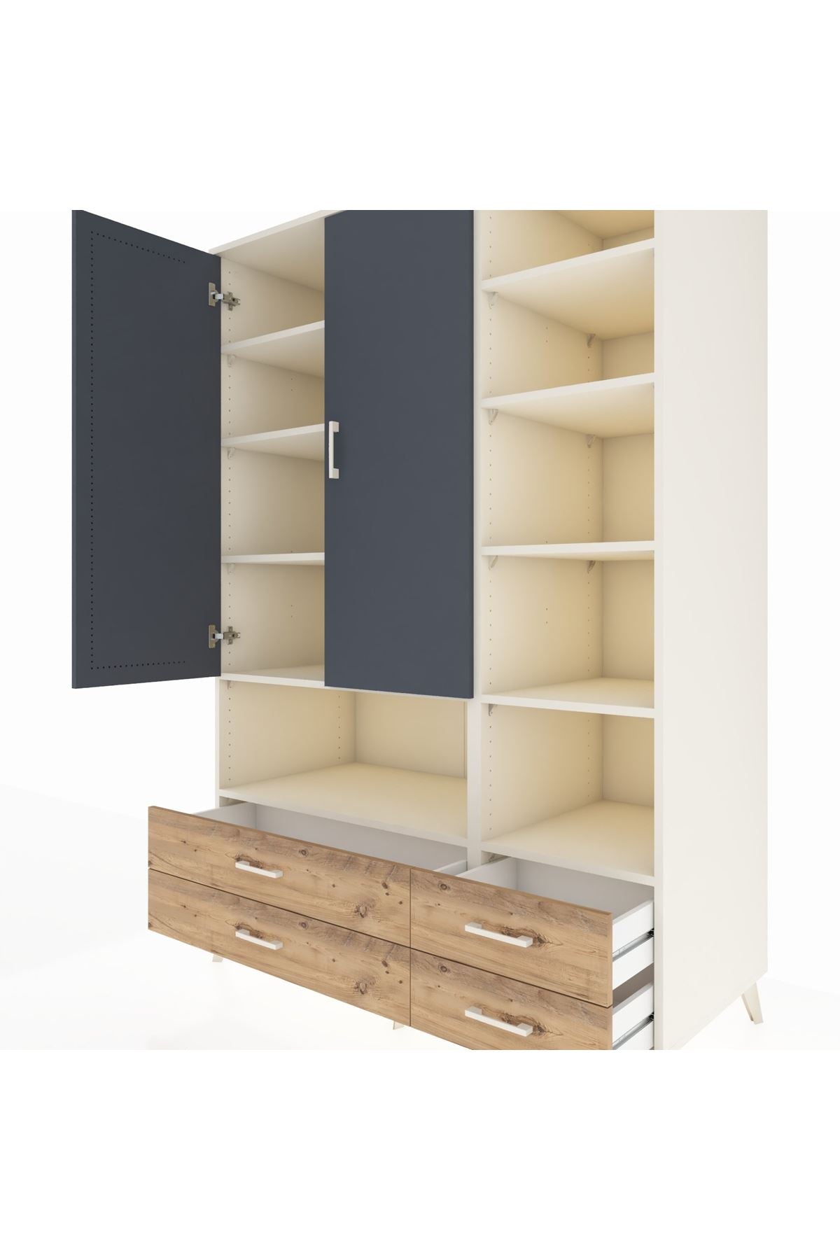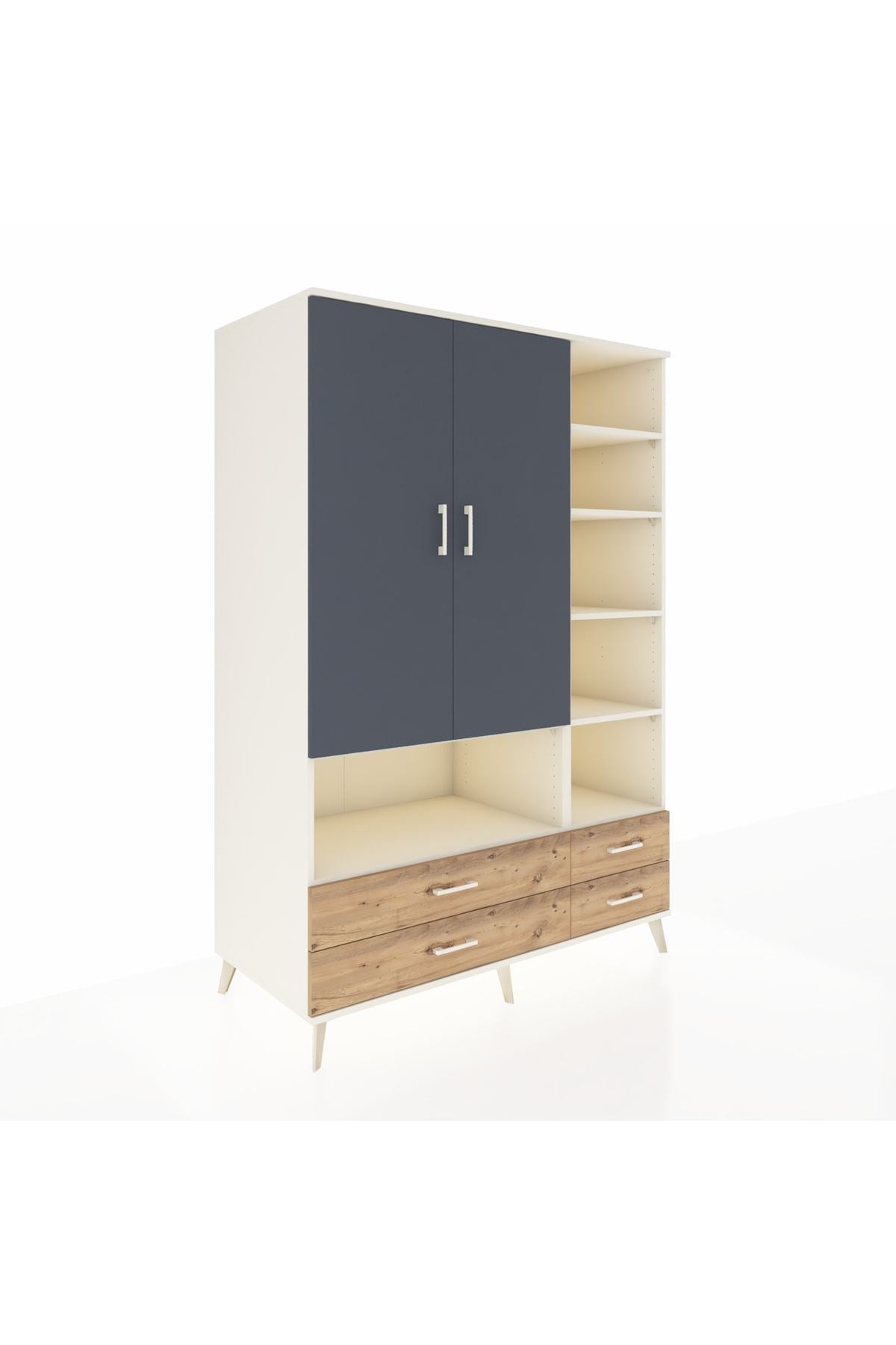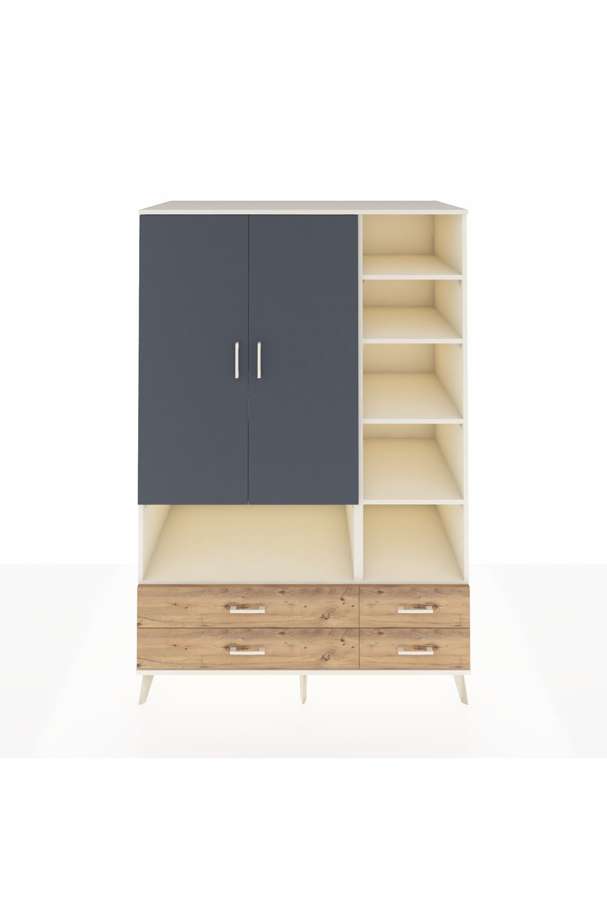 Kronos Dolap 10 Raflı 4 Çekmeceli 2 Kapaklı 132x59x195 Aytaşı-Antrasit/Çam