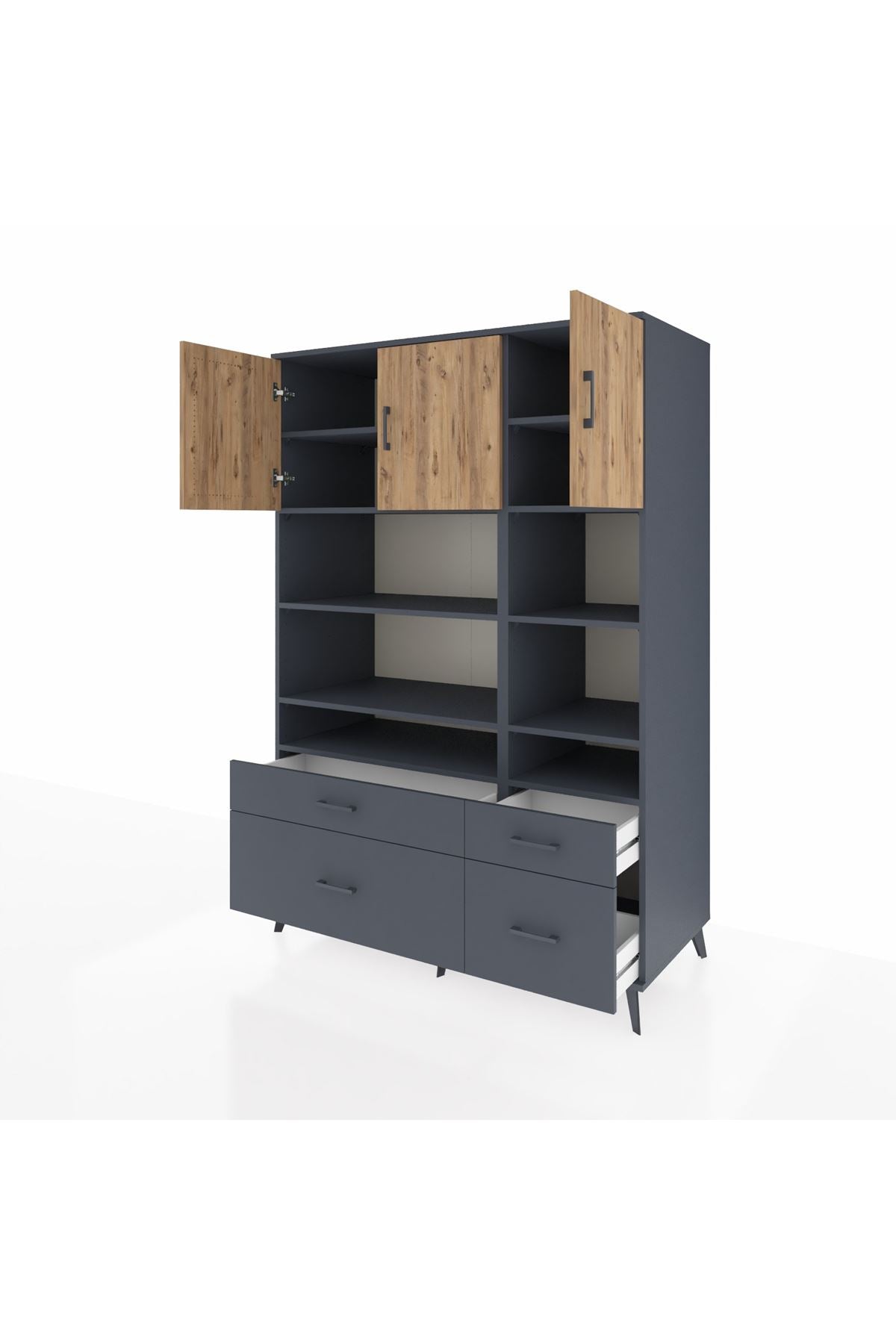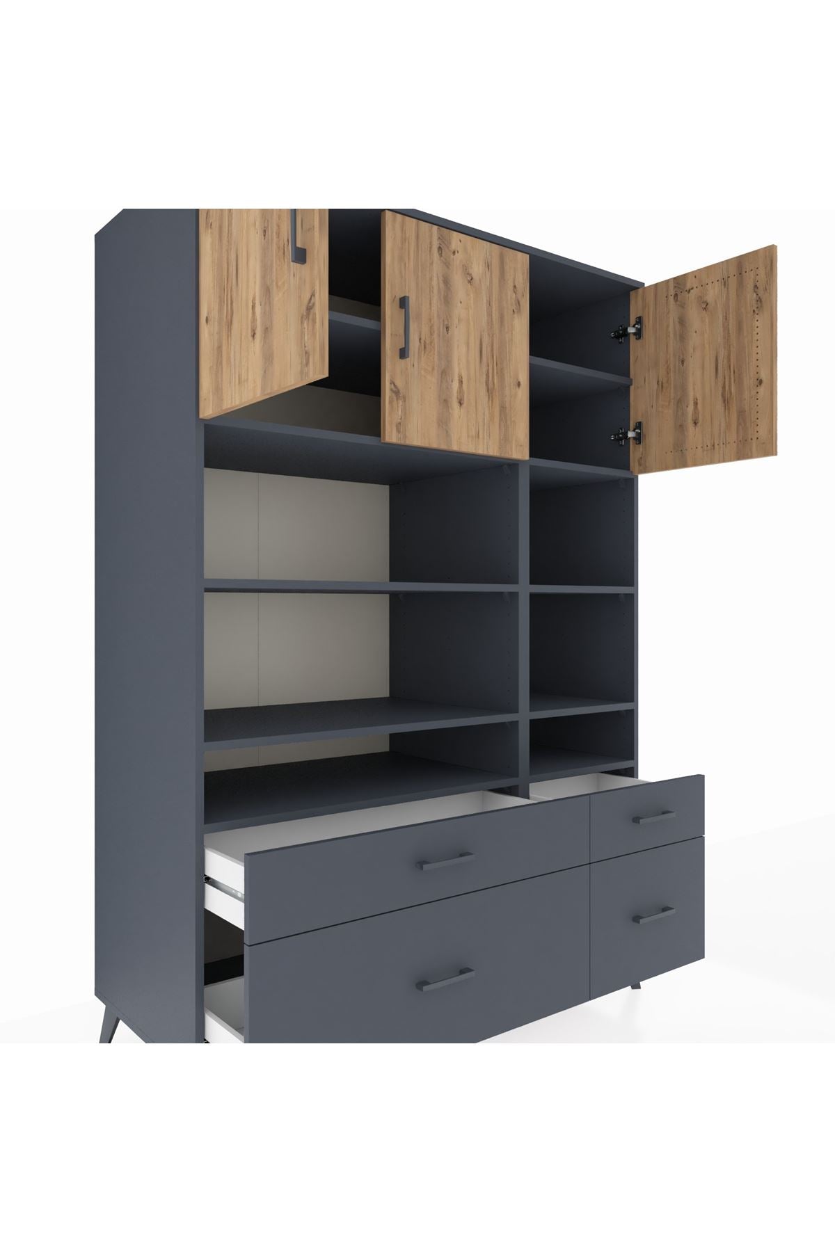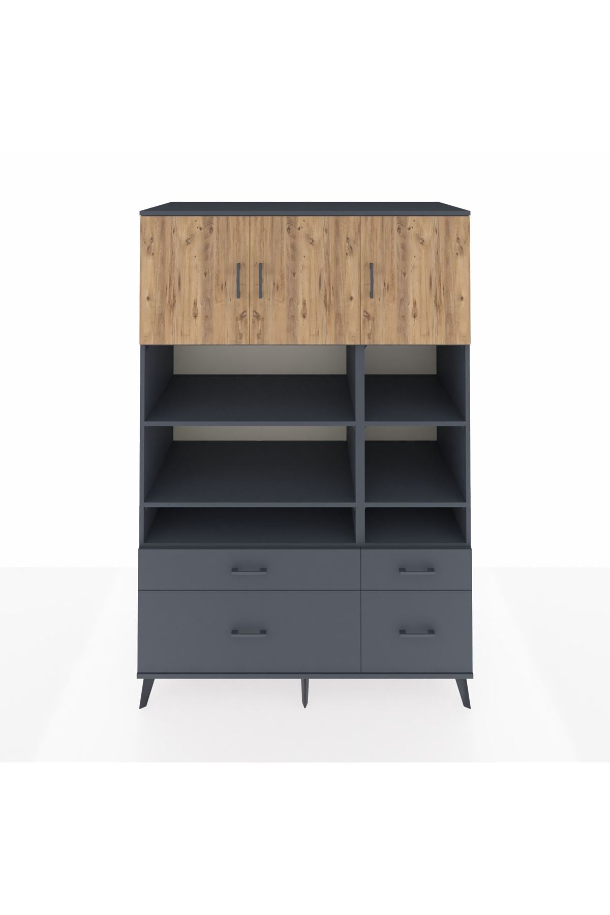 Kronos Dolap 10 Raflı 4 Çekmeceli 3 Kapaklı 132x59x195 Antrasit-Çam/Antrasit
