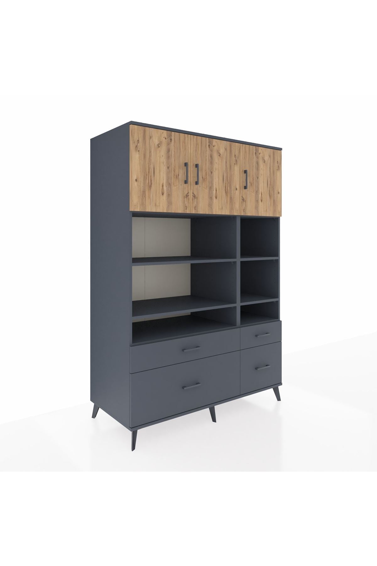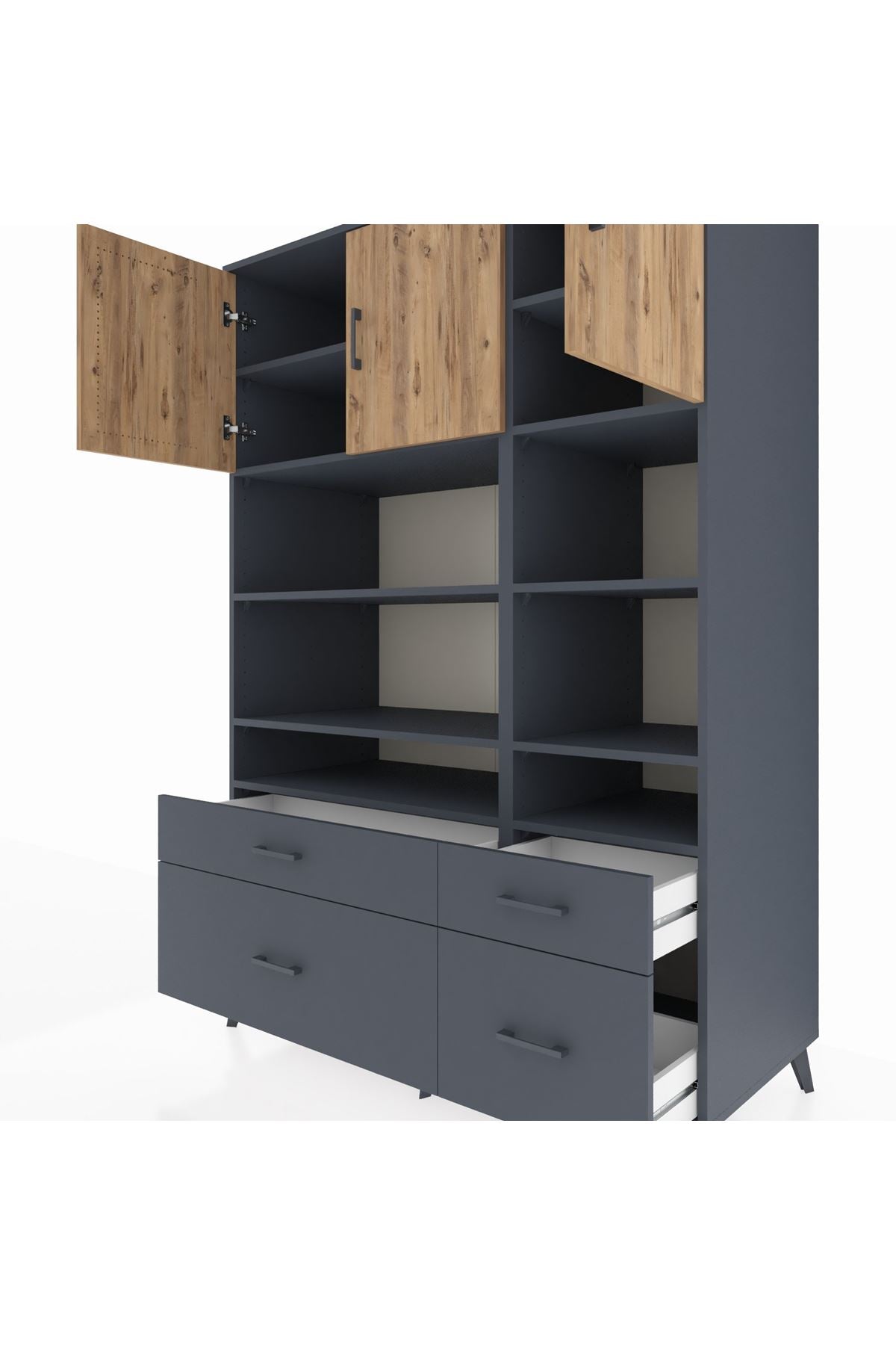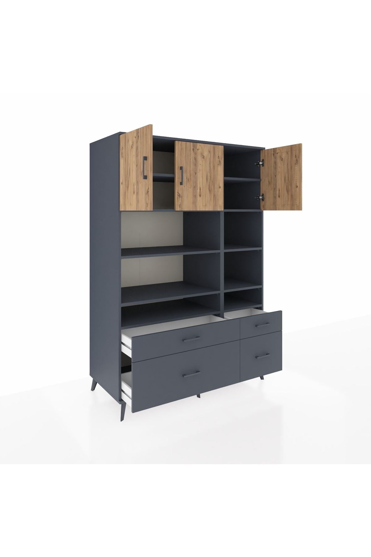 Kronos Dolap 10 Raflı 4 Çekmeceli 3 Kapaklı 132x59x195 Antrasit-Çam/Antrasit