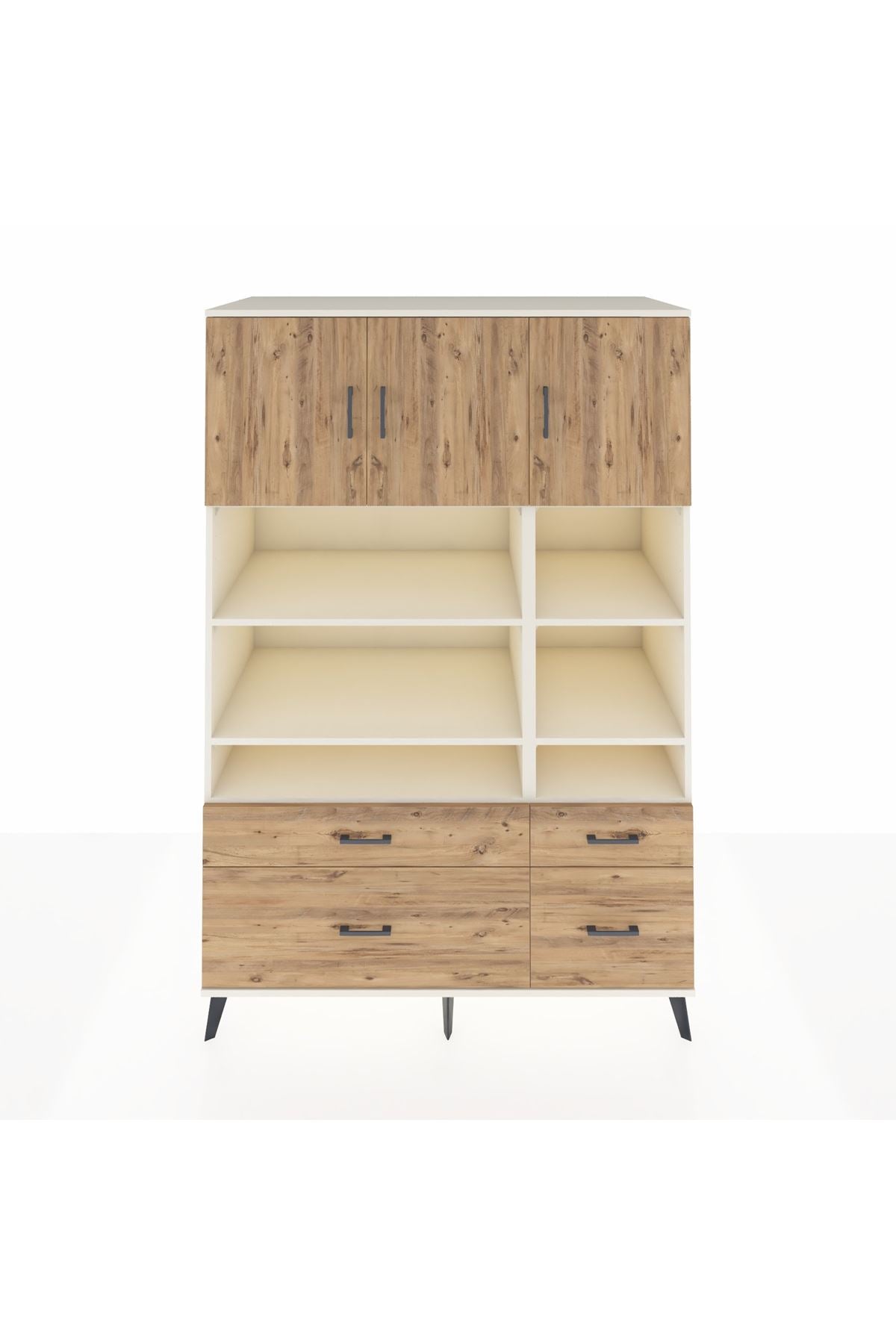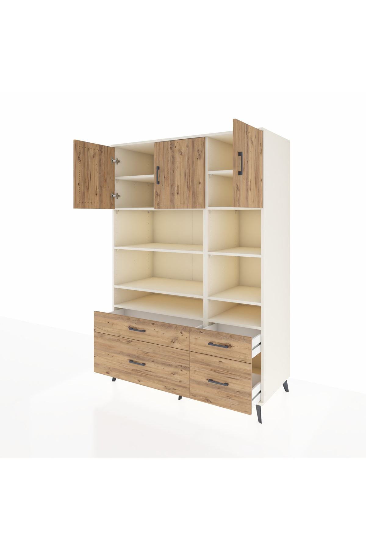 Kronos Dolap 10 Raflı 4 Çekmeceli 3 Kapaklı 132x59x195 Aytaşı-Çam/Çam