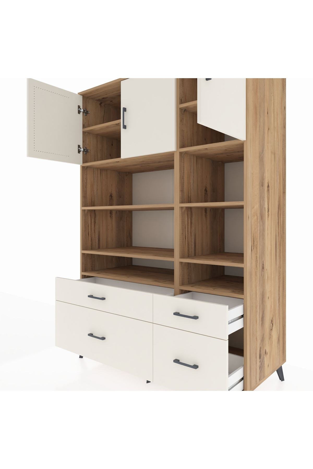 Kronos Dolap 10 Raflı 4 Çekmeceli 3 Kapaklı 132x59x195 Çam-Aytaşı/Aytaşı
