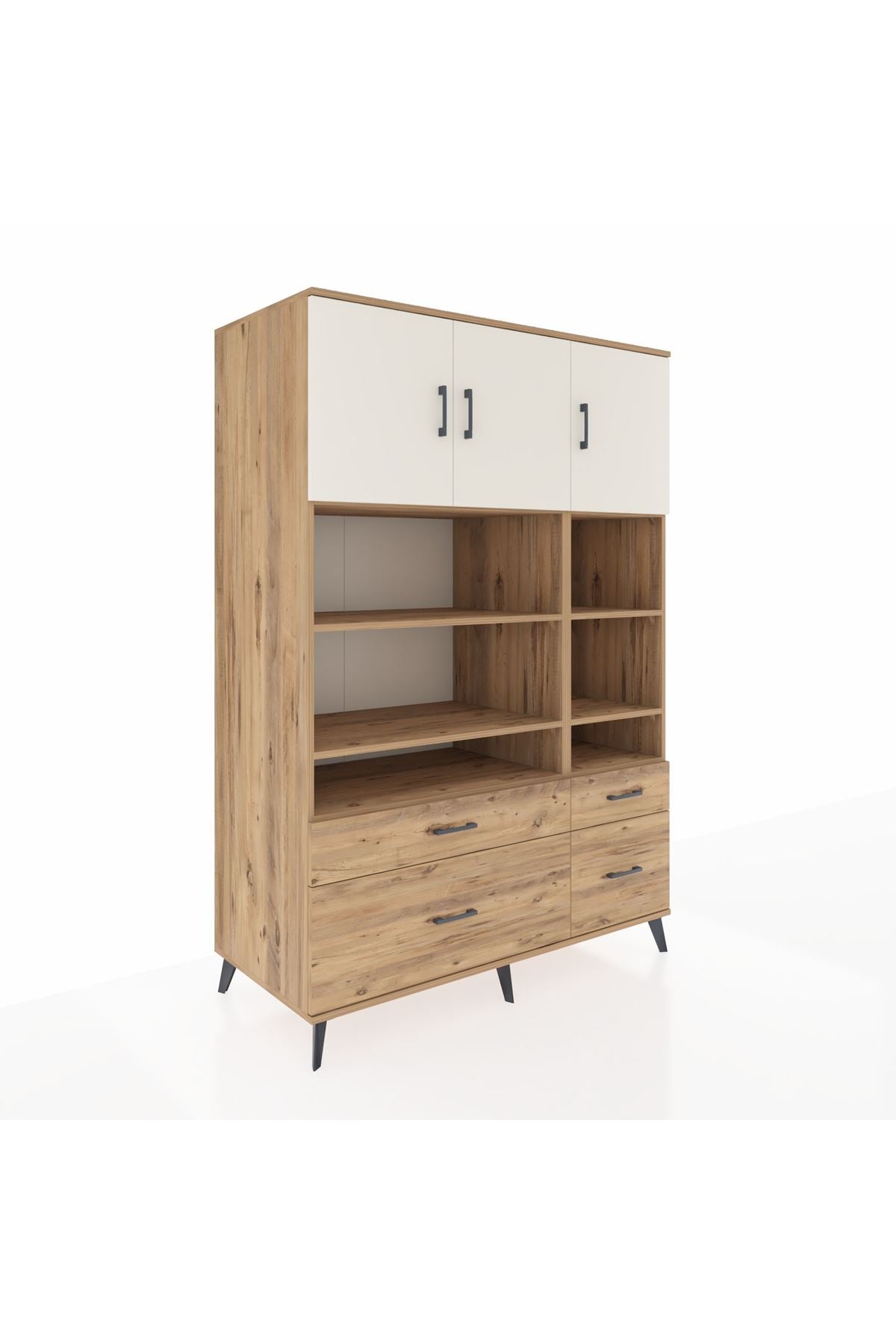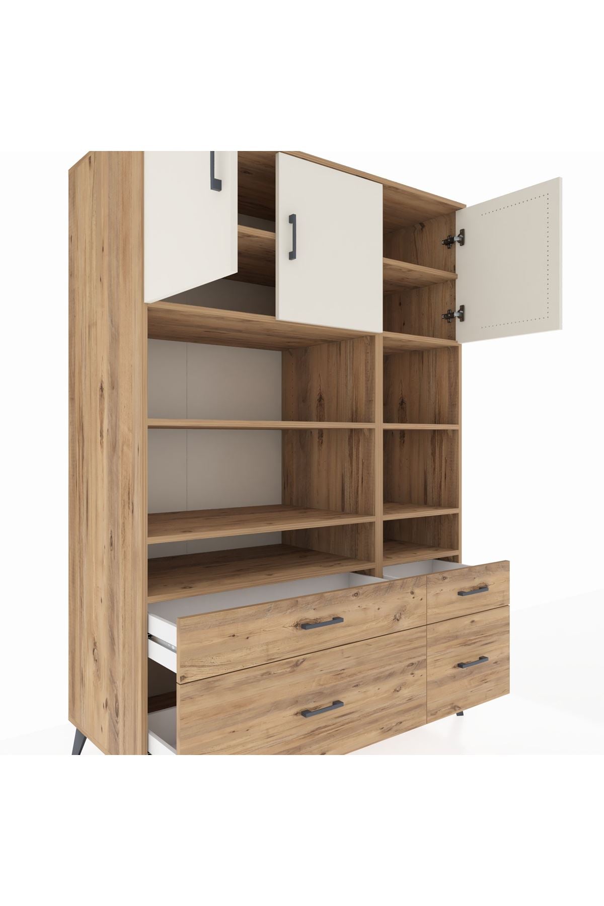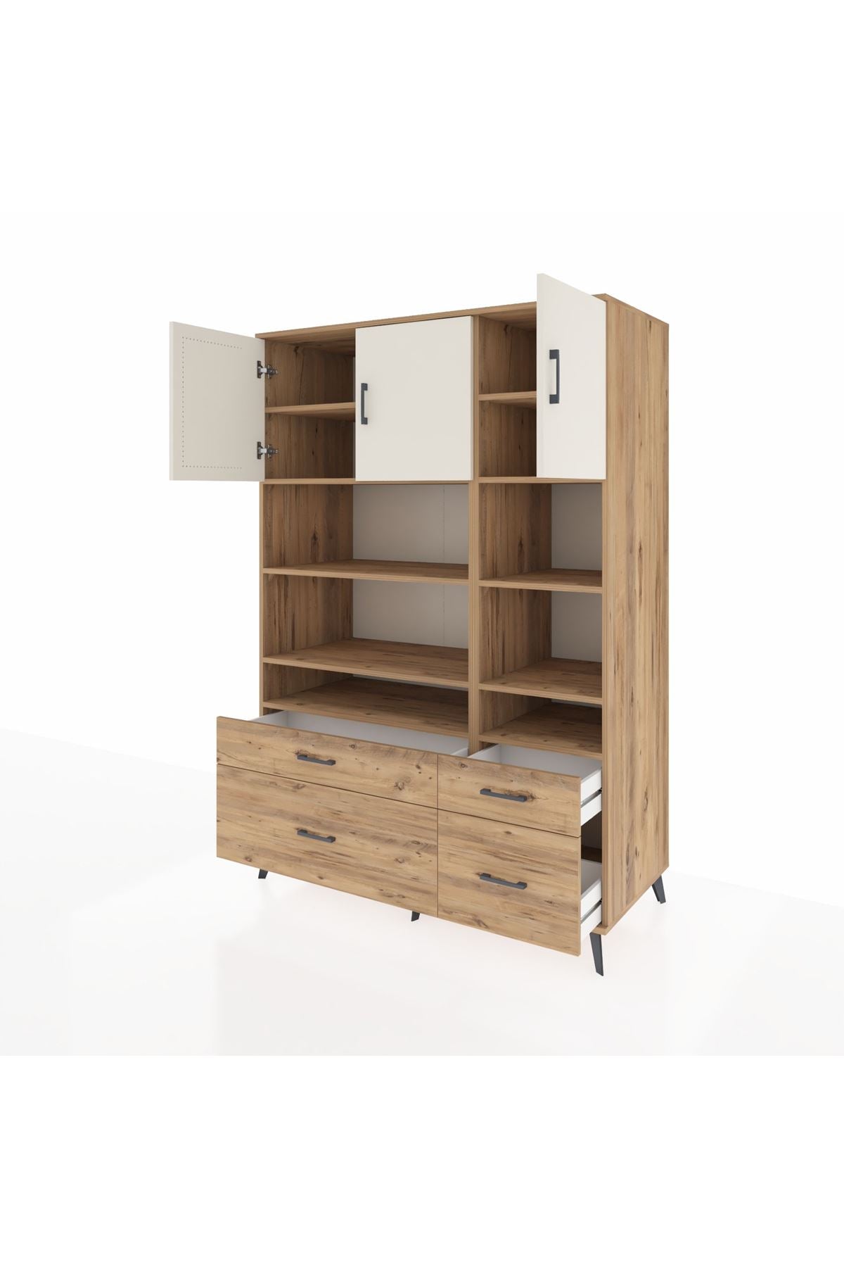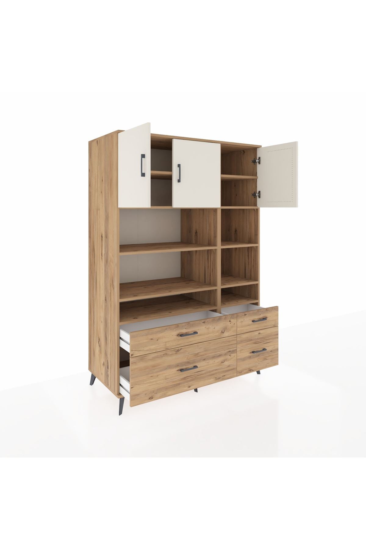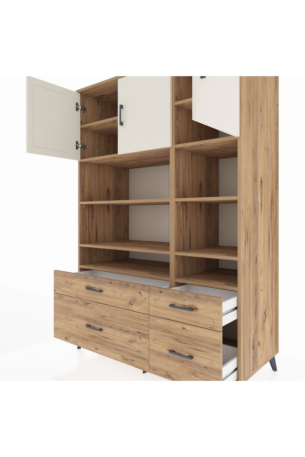 Kronos Dolap 10 Raflı 4 Çekmeceli 3 Kapaklı 132x59x195 Çam-Aytaşı/Çam