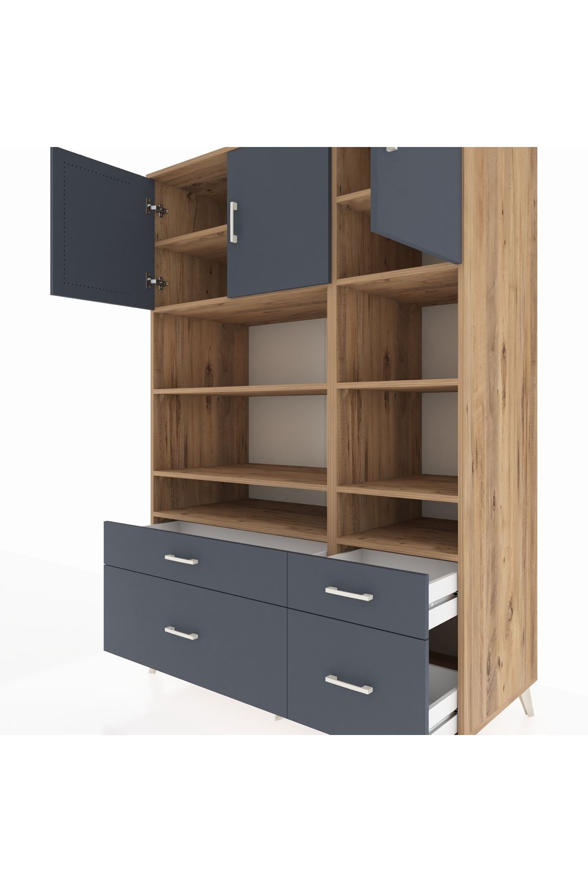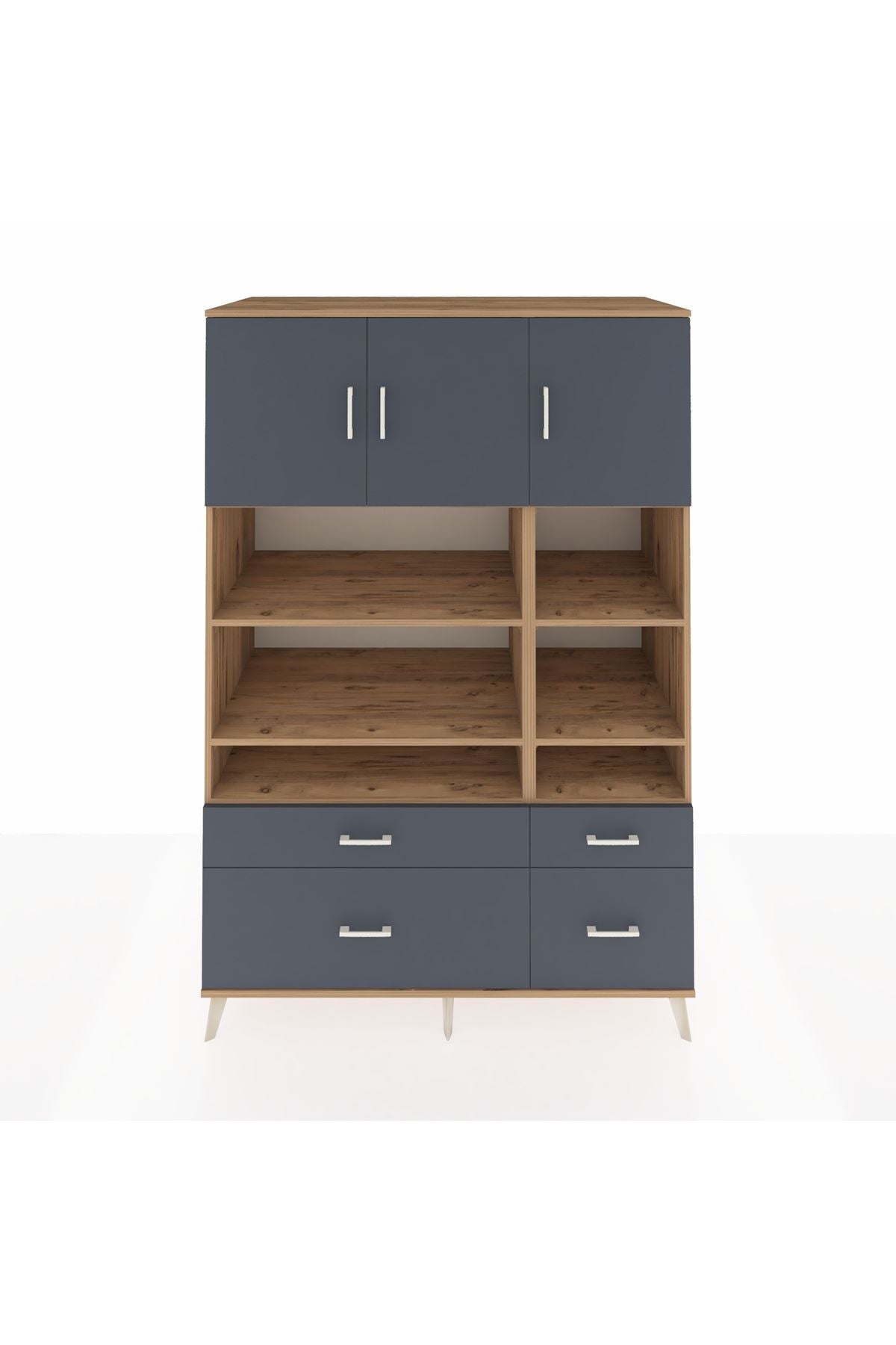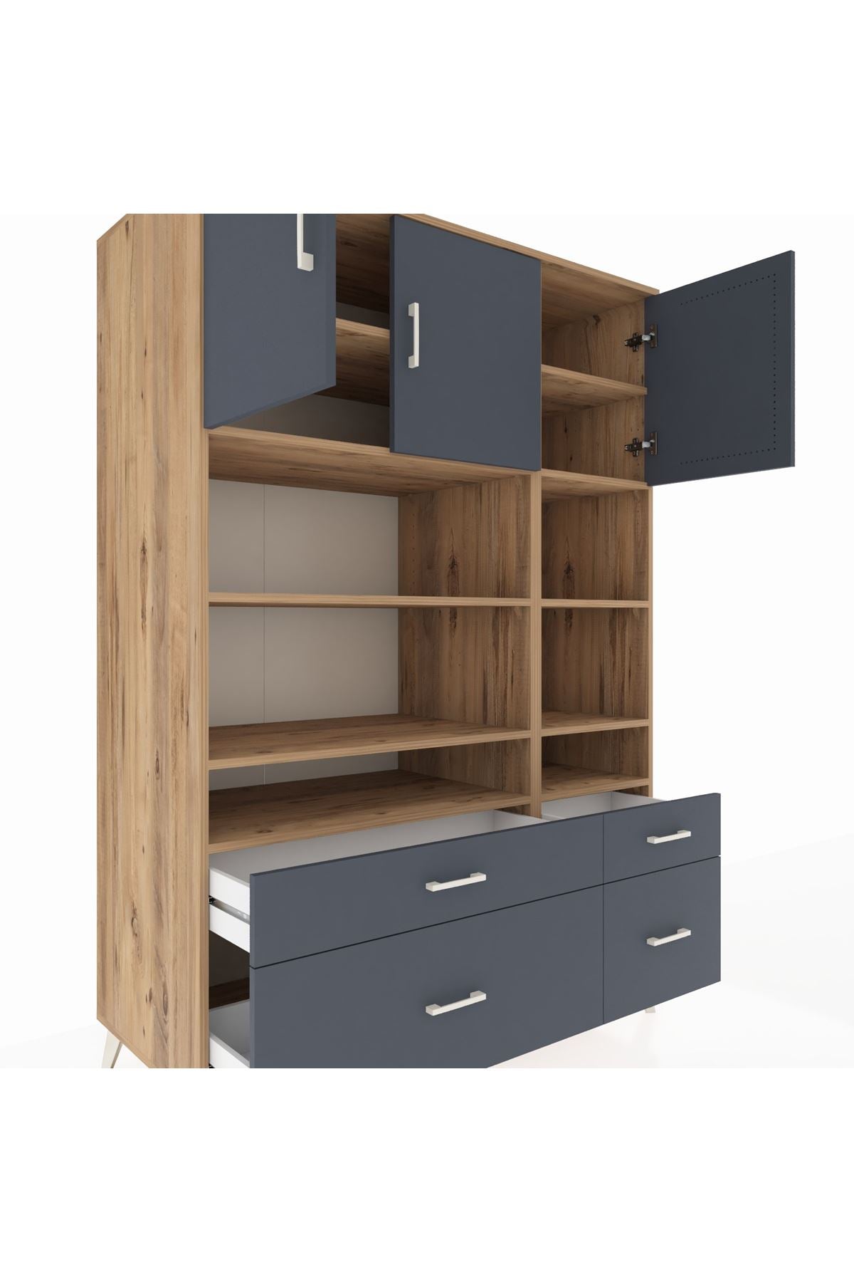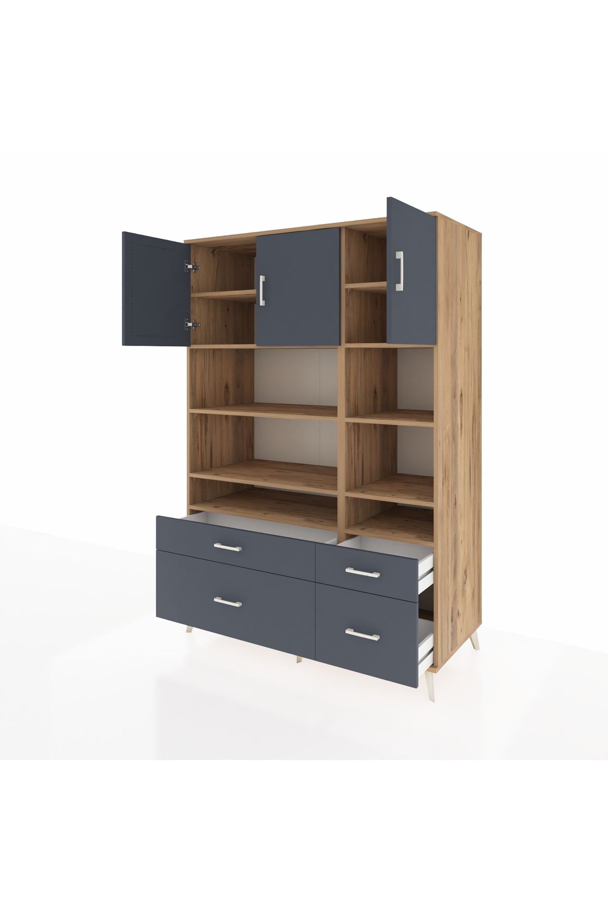 Kronos Dolap 10 Raflı 4 Çekmeceli 3 Kapaklı 132x59x195 Çam-Antrasit/Antrasit