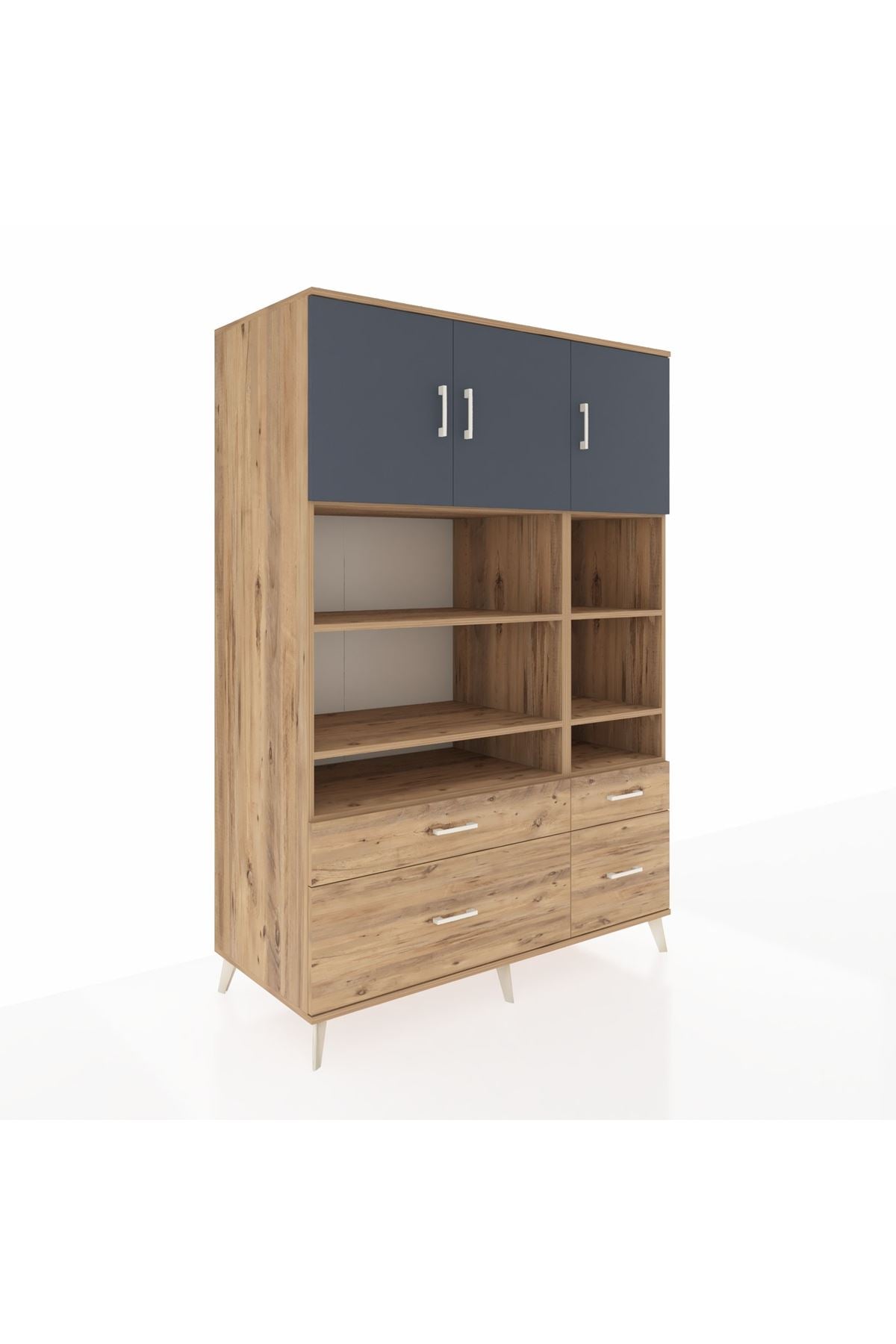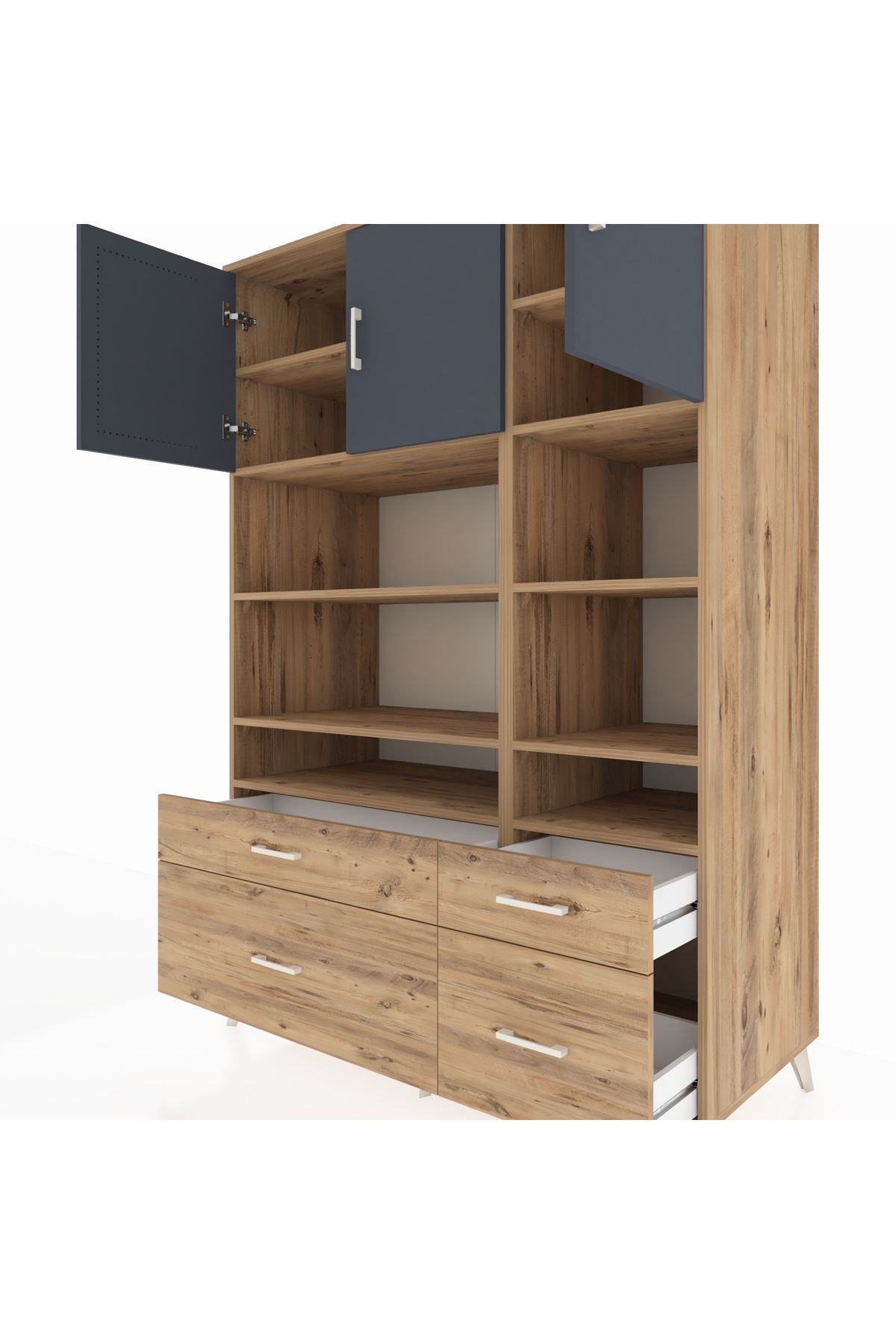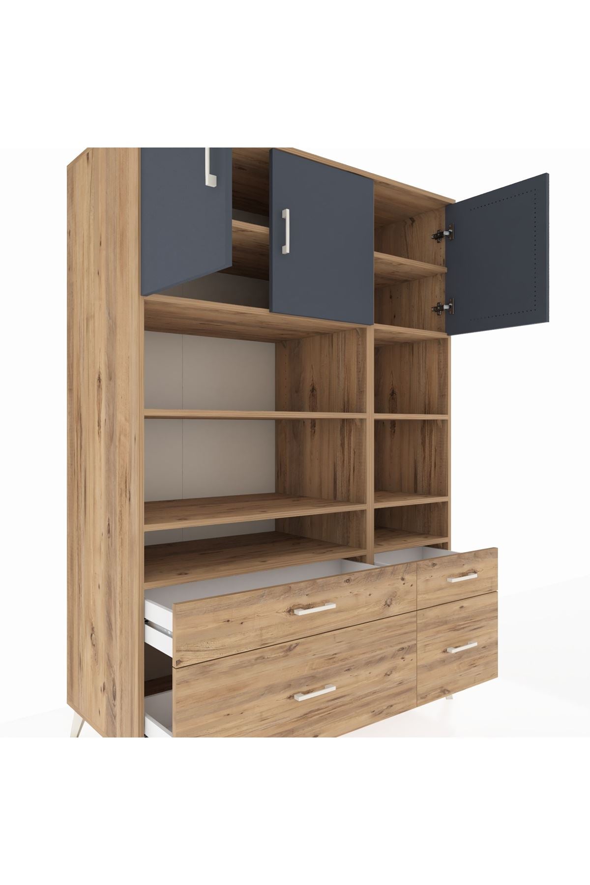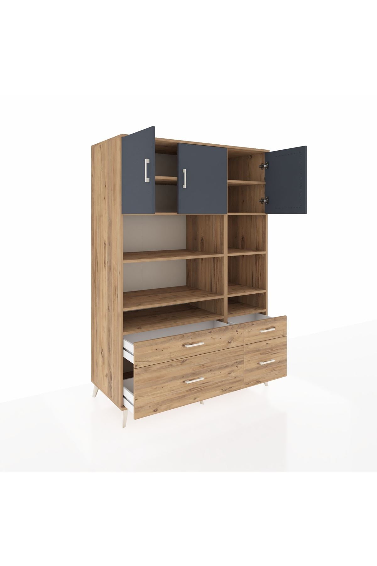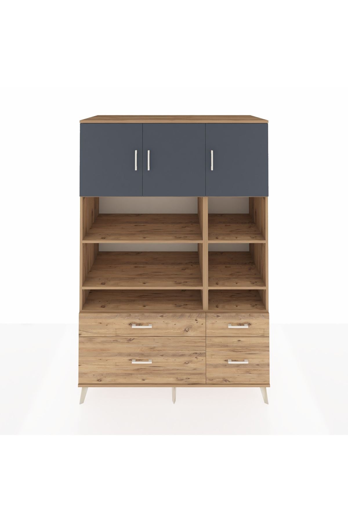Kronos Dolap 10 Raflı 4 Çekmeceli 3 Kapaklı 132x59x195 Çam-Antrasit/Çam