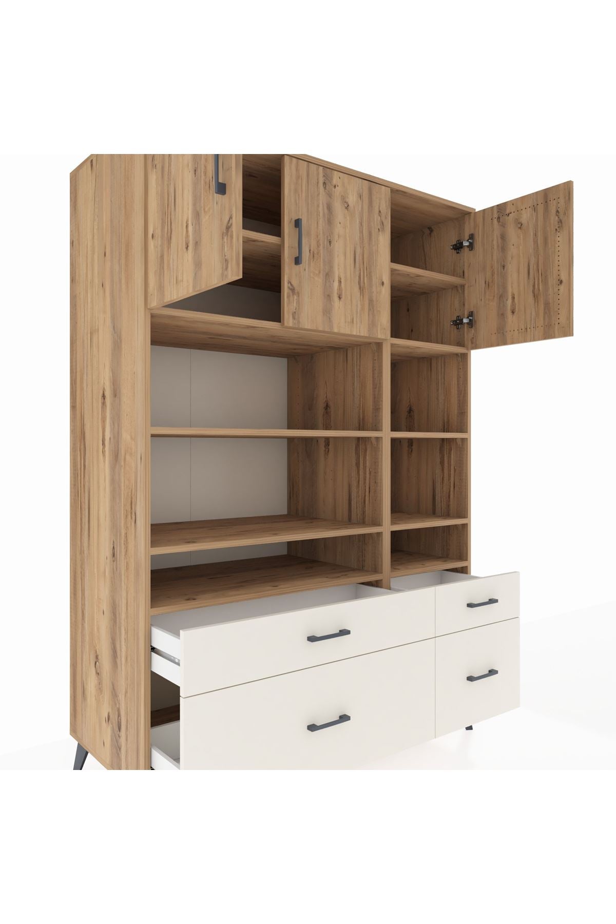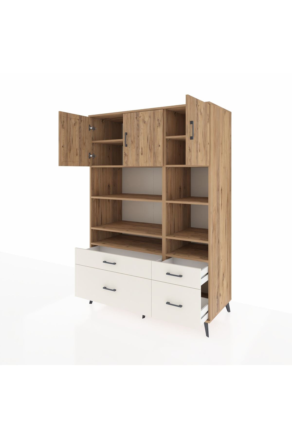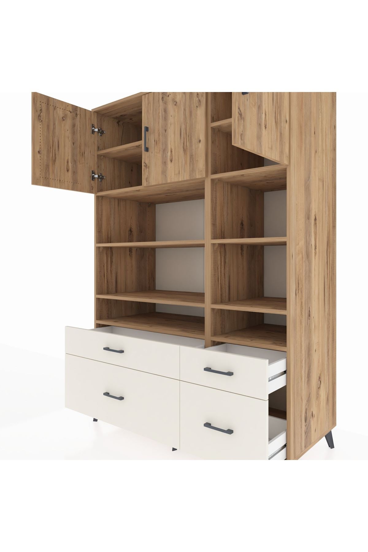 Kronos Dolap 10 Raflı 4 Çekmeceli 3 Kapaklı 132x59x195 Çam-Çam/Aytaşı
