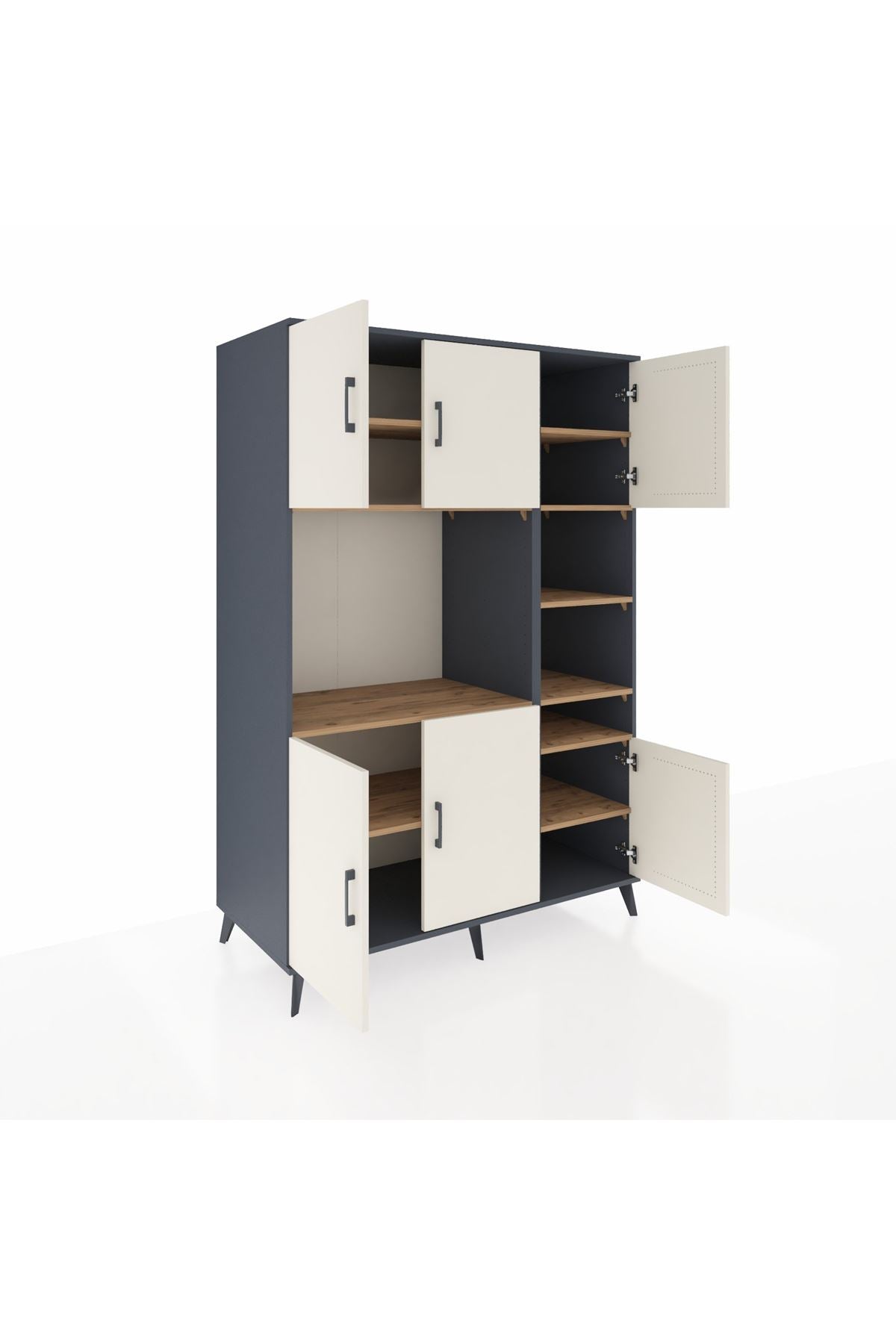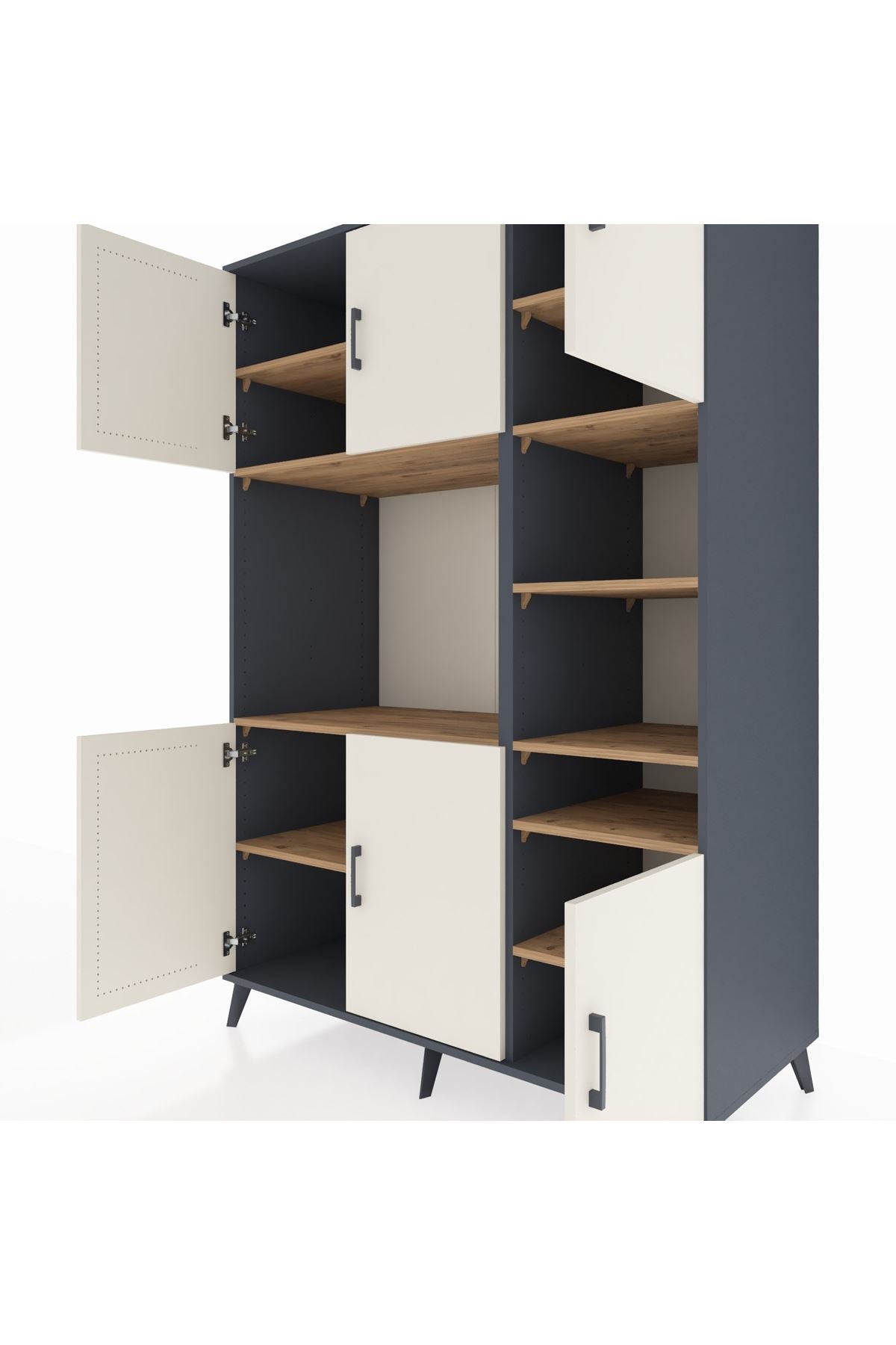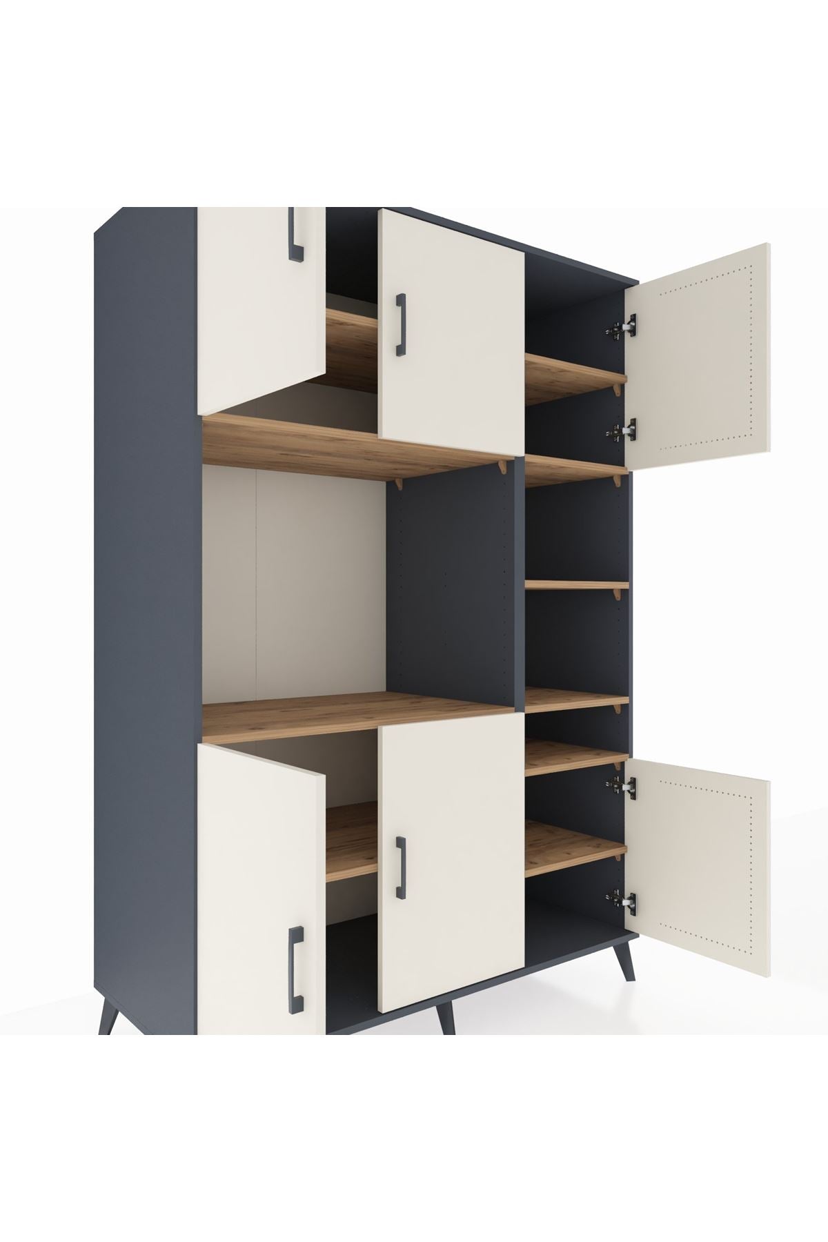 Kronos Dolap 10 Raflı 6 Kapaklı 132x59x195 Antrasit-Aytaşı/Çam